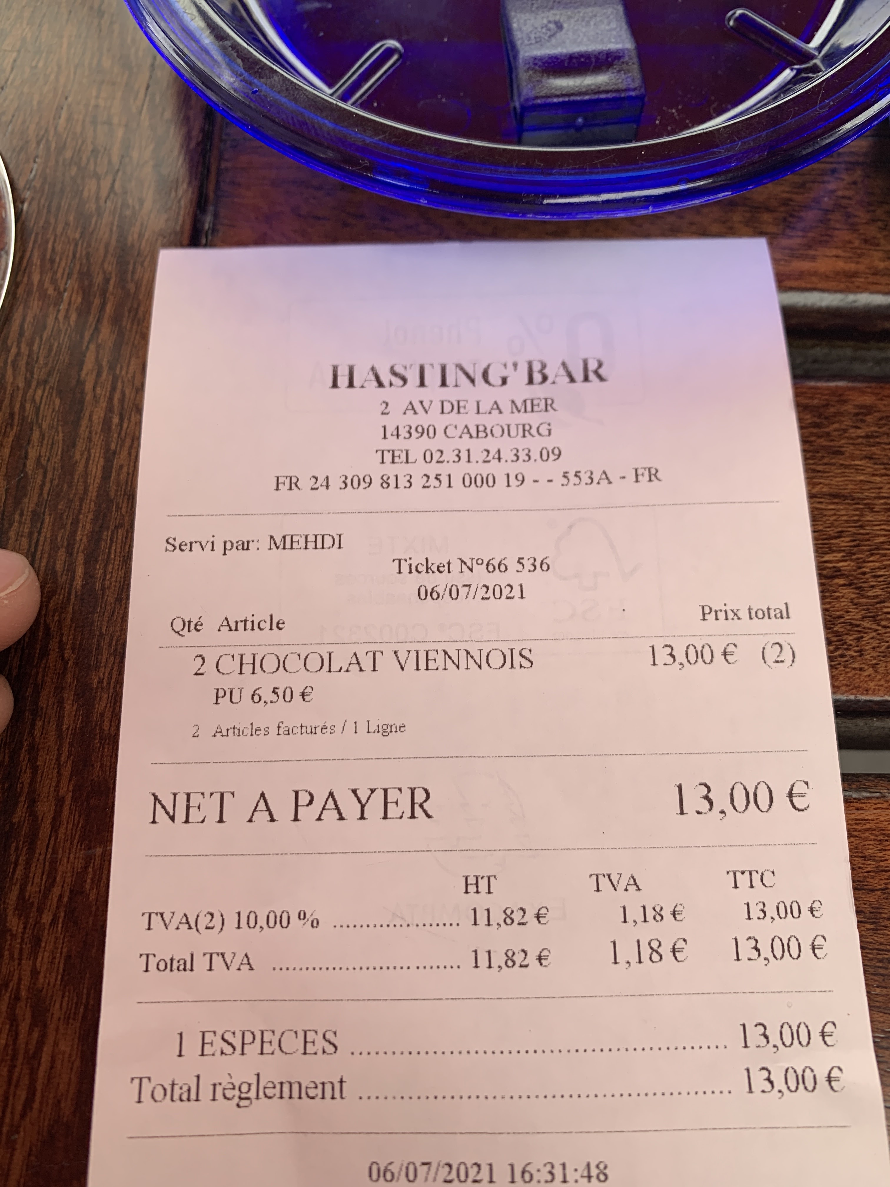 Arrivés par hasard au Hasting's lors d un passage à Cabourg, nous avons été tres bien accueilli et servis par un jeune homme tres sympathique. En plus d avoir tres bien mangé (les moules par exemple étaient vraiment succulentes ainsi que mon assiette de la mer) et bu (cocktails bien réalisés) , nous avons demandé si nous pouvions avoir un plat différent que les nuggets frites pour notre bébé de 2 ans et, non seulement la cuisine nous a fait un menu spécial pour lui, mais l'écrasée de pommes de terre était tellement bonne que j'ai presque regretté de ne pas avoir choisi la même chose. Un grand MERCI.