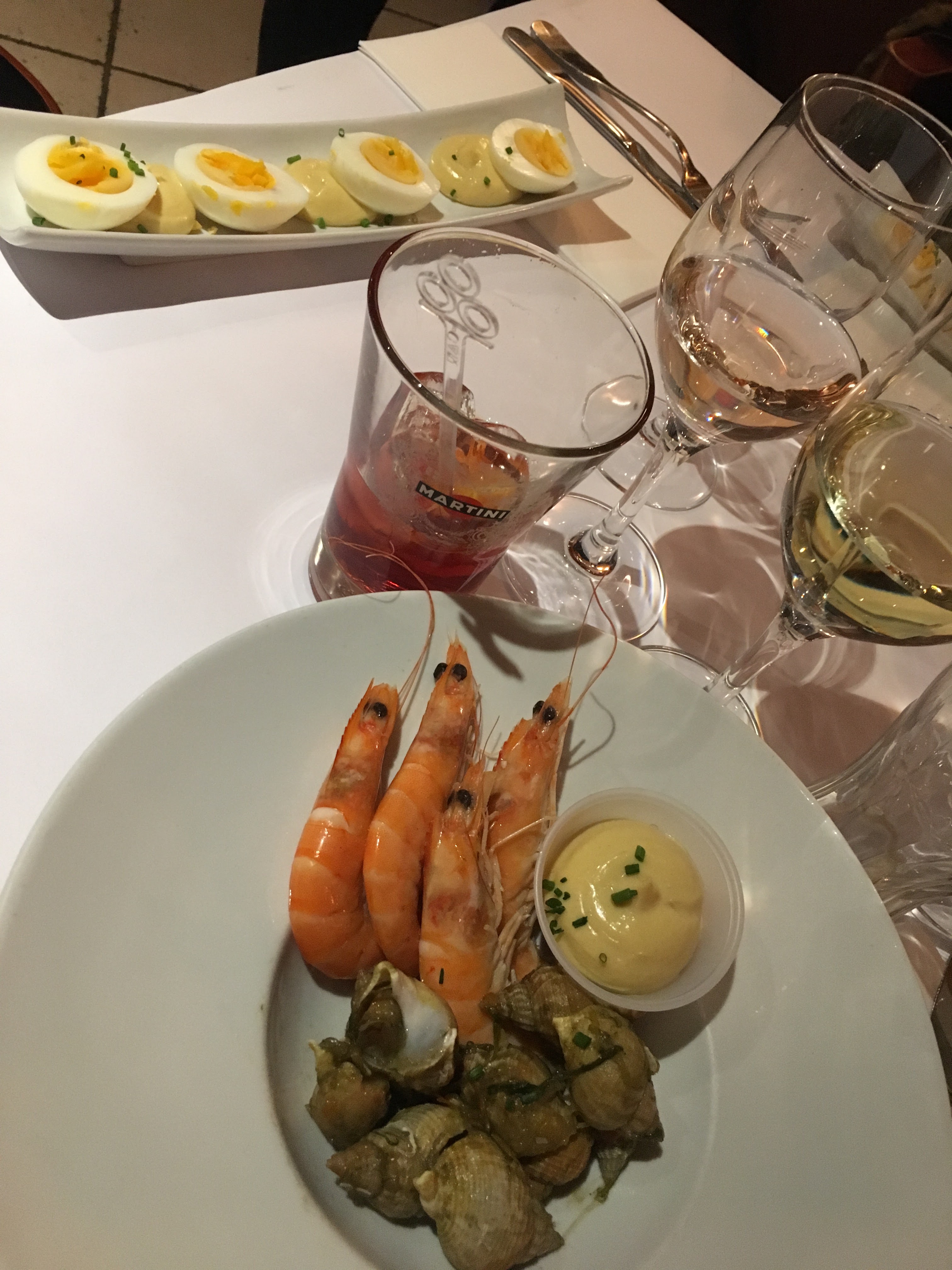 Alors 1er repas le midi rapide et efficace bulots et huîtres . produits frais et excellents.....Mme salade de chèvre chaud...copieuse et très Bonne Du coup nous y sommes retournés le soir même....mes papilles s'en remettent à peine.... Equipe très accueillante du chef au serveur...a faire et refaire.Mention spéciale au coktail Leo