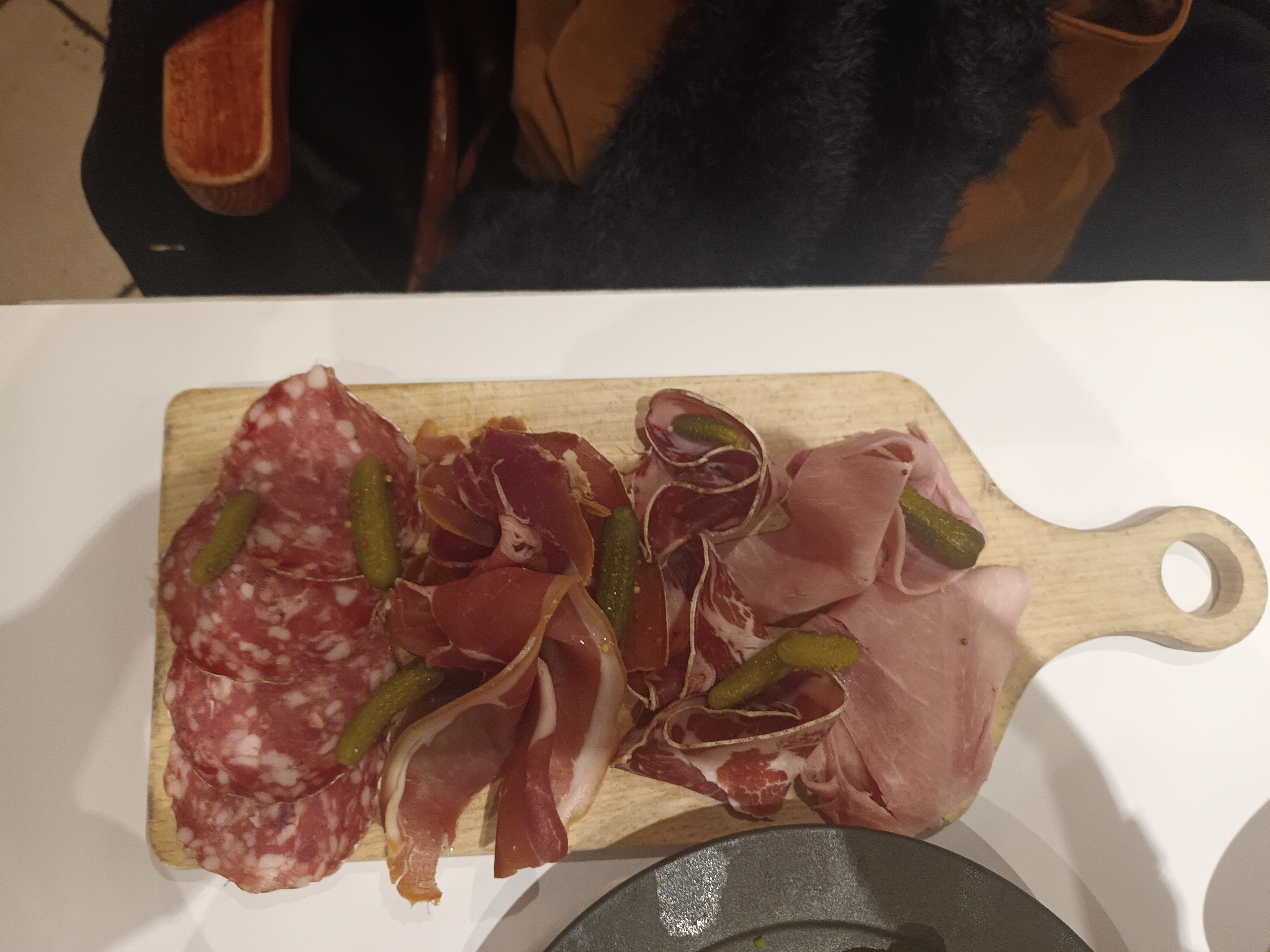 Bonjour. Nous sommes passés hier soir par votre restaurant. Nous étions installés mon mari et moi, au première étage. Le serveur était tout simplement charmant et très professionnel. Un monsieur horrible était installé à la table dernière nous et était franchement imbuvable. Et bien le serveur à su rester agréable même avec lui 😂 il a une patiente et un professionnalisme incroyable. Pour le repas, mon escalope était je dois le dire, un peu sèche, mais tout le reste était délicieux. Les entrées, oeuf cocotte/ camembert pour moi et chèvre chaud et salade pour mon mari , étaient vraiment très très bonnes. Merci beaucoup.