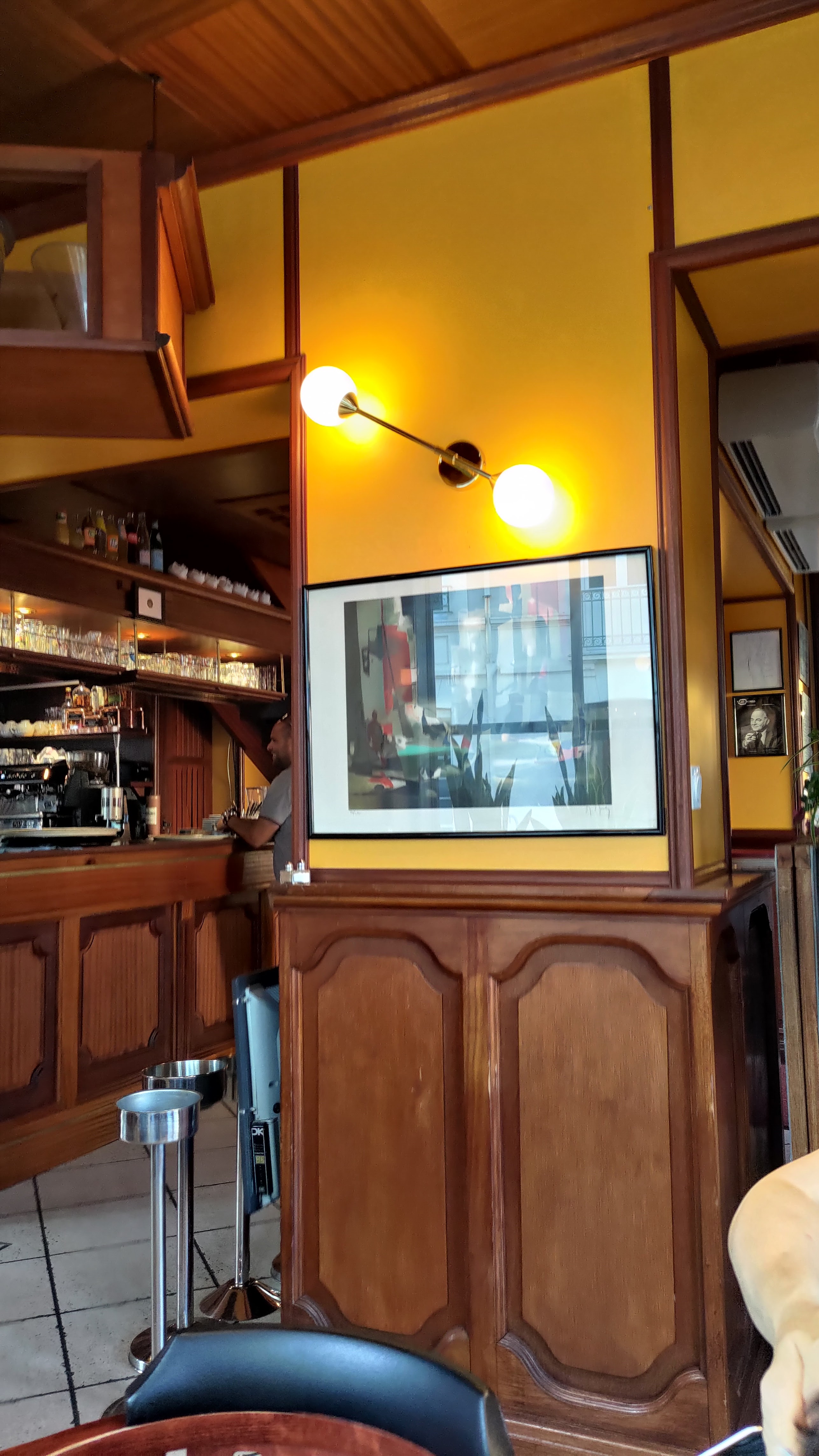 Arrêt en terrasse pour un petit café Le serveur est un peu froid au premier abords mais sympathique avec notre chien une petite gamelle d'eau sans qu'on lui demande
