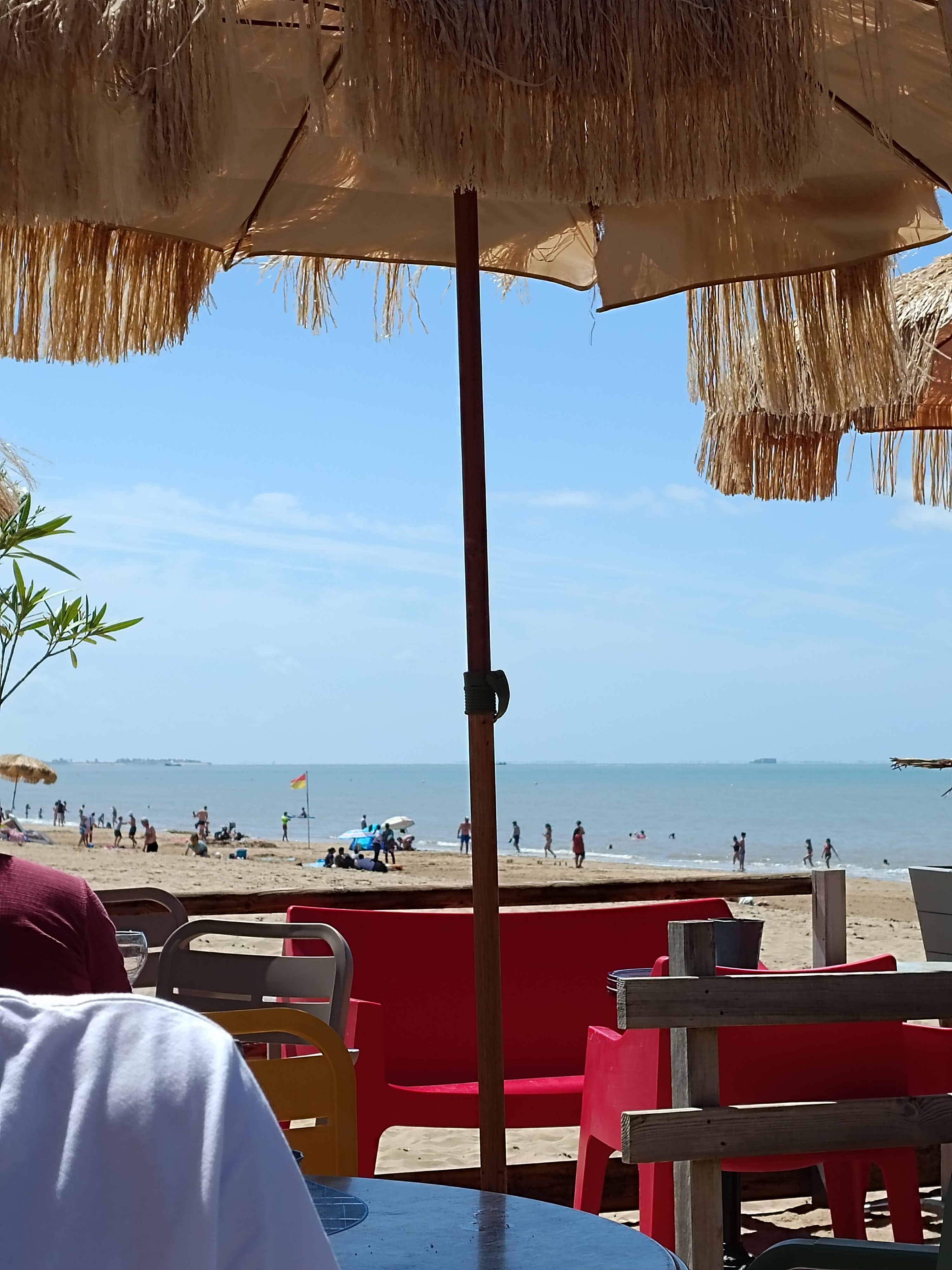 Grande tente sur la plage. Il y avait 1 membre du personnel en service et 1 travaillant derrière le bar. Le membre du personnel en service a couru comme un fou pour aider tout le monde en temps opportun. Il est également resté joyeux à ce sujet. J'ai commandé une collation (tapenades espagnoles) avec la boisson. C'étaient délicieux. Bel endroit sur la plage. Hautement recommandé.