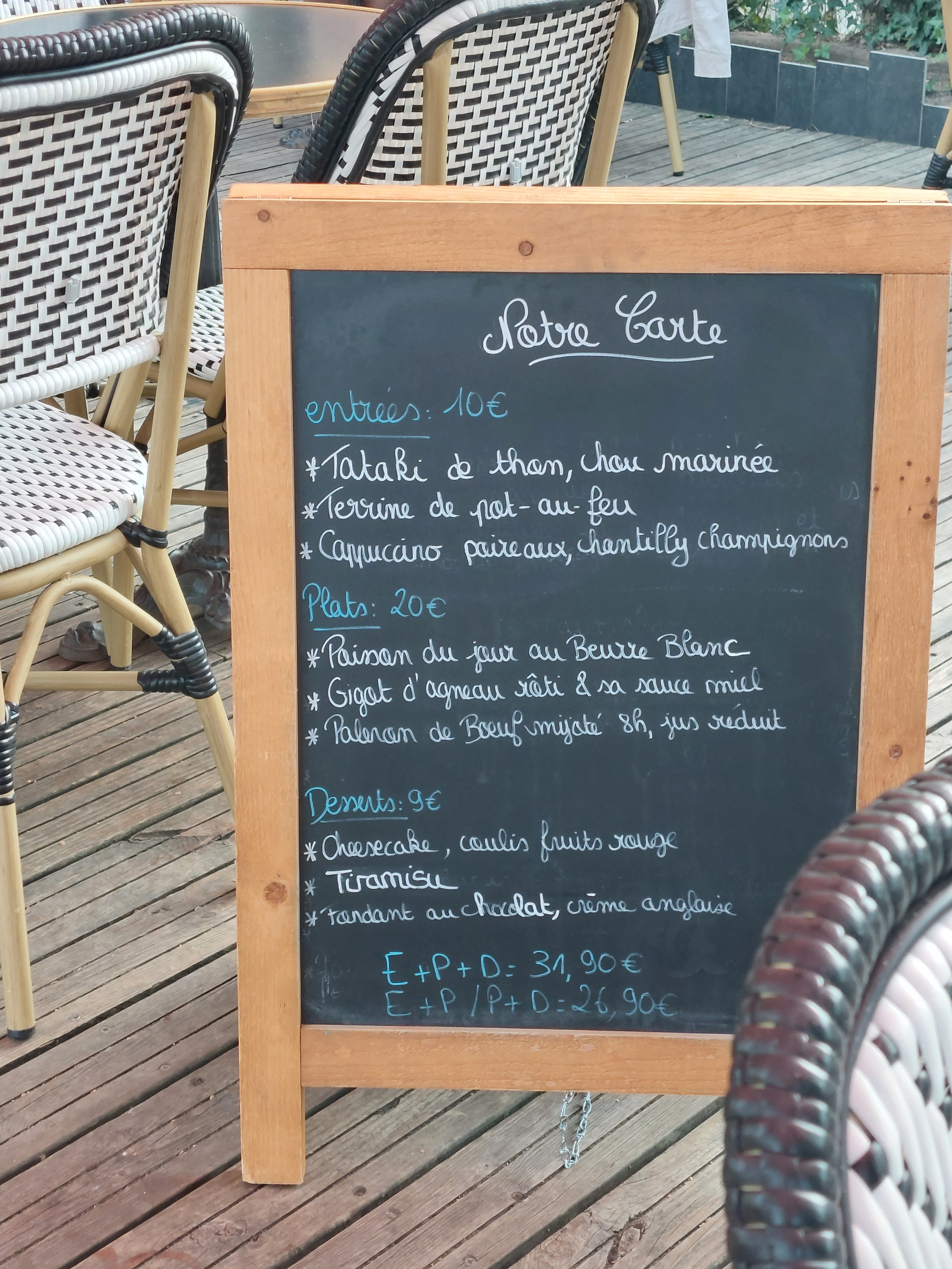 Déçue du menu, j y suis allée fin août, 2021, excellent peut être à t il eu un nouveau cuisinier depuis ? Repas à peine chaud, dessert tiède, et nous proposer un quart de rosé, en pichet, pratiquement pas frais, à un prix exorbitant, et cerise sur le gâteau, en terrasse, pendant tout le repas le bruit lancinant d une hotte !