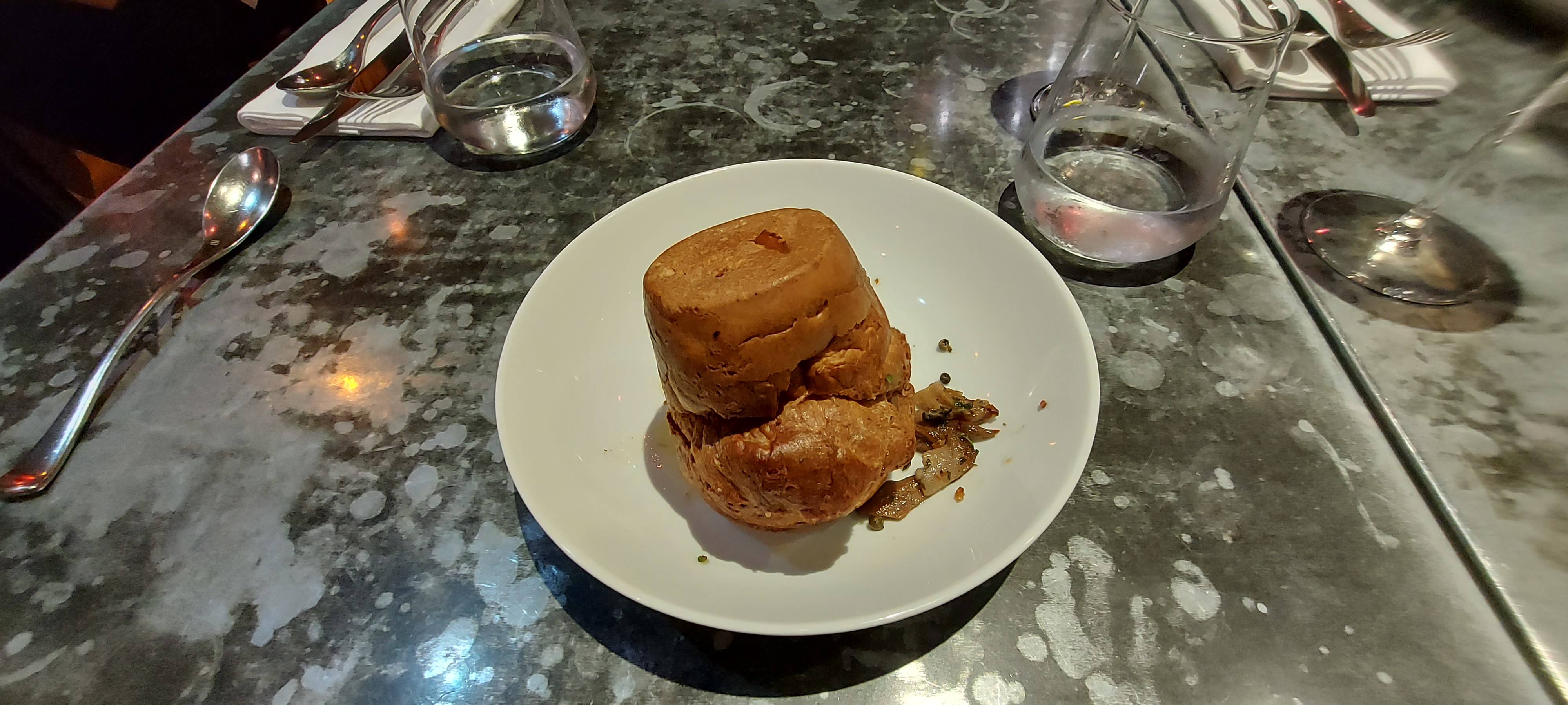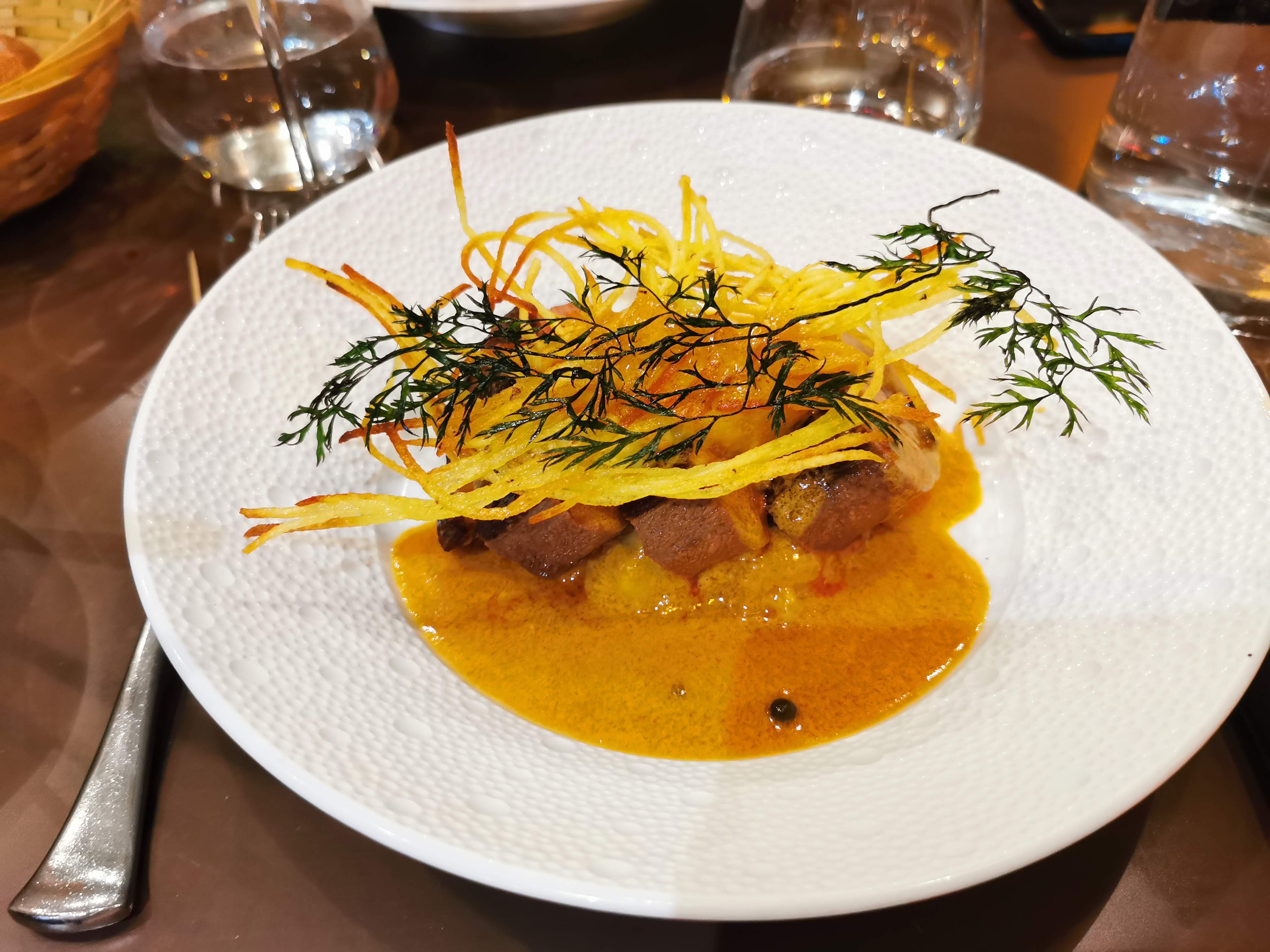 Je n'ai trouvé aucun défaut à ce restaurant. Ce n'est pas donné mais ça vaut le coup. La nourriture est excellente et le personnel est très agréable, non seulement il parle anglais, mais il m'a également été très utile en me conseillant ce que je peux et ne peux pas manger car je suis enceinte et certains de leurs produits ne sont pas pasteurisés. Les raviolis ouverts aux écrevisses sont une entrée étonnante et bien équilibrée, tout comme le foie de lapin que mon mari adorait. Mon mari a vraiment apprécié le veau avec une sauce type moutarde et le canard était parfaitement cuit avec une belle sauce. La purée achetée à partager était également délicieuse. Le pain a été réapprovisionné Fréquemment et généreusement. La meringue était si joliment cuite et bien qu'il s'agisse d'un plat simple à regarder, les saveurs sont si honnêtes et parfaites.