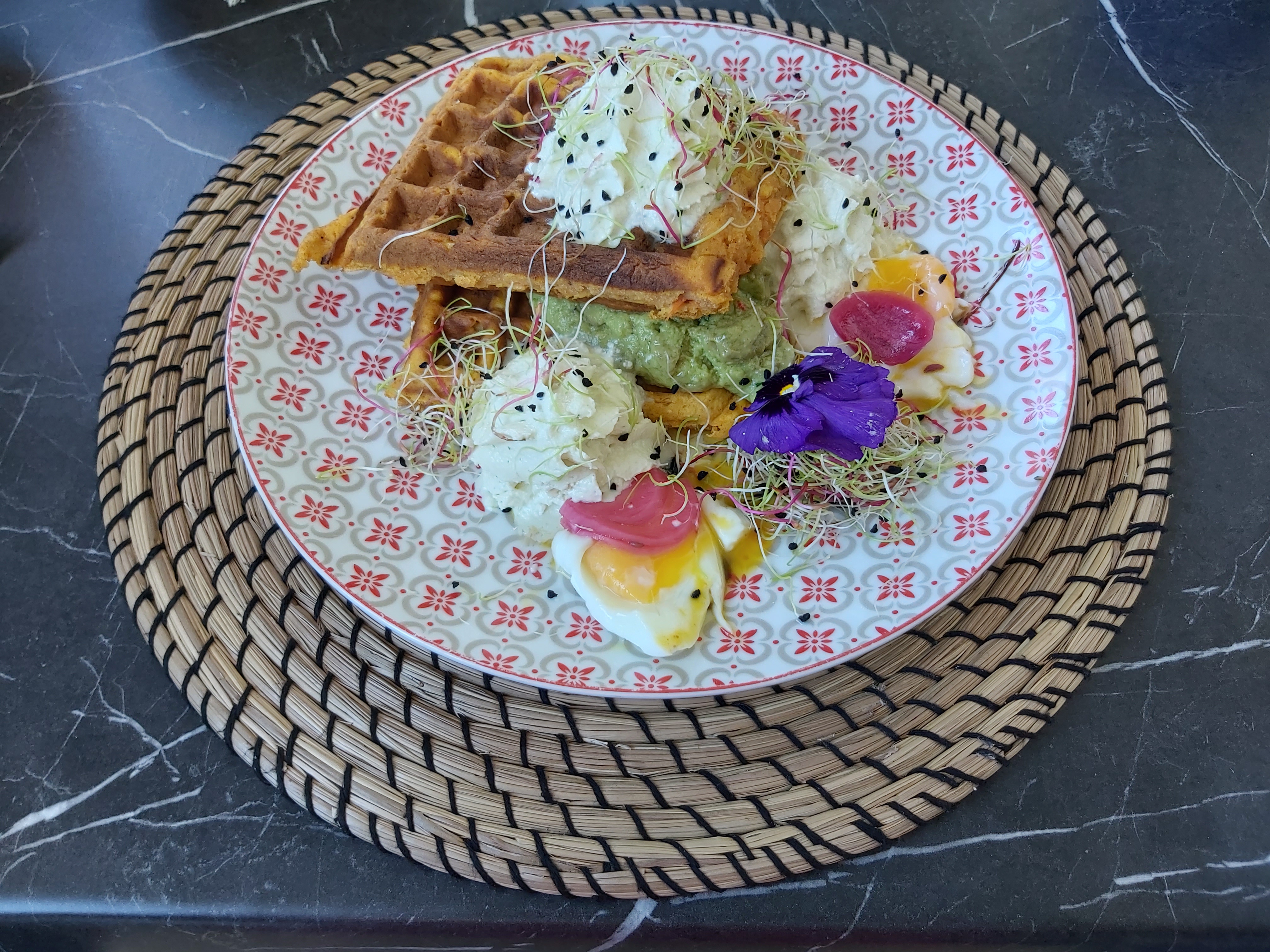 J'ai pris les gaufres de patate douce : très très bonnes! Les plats sont très colorés, belle décoration c'est un super restaurant!