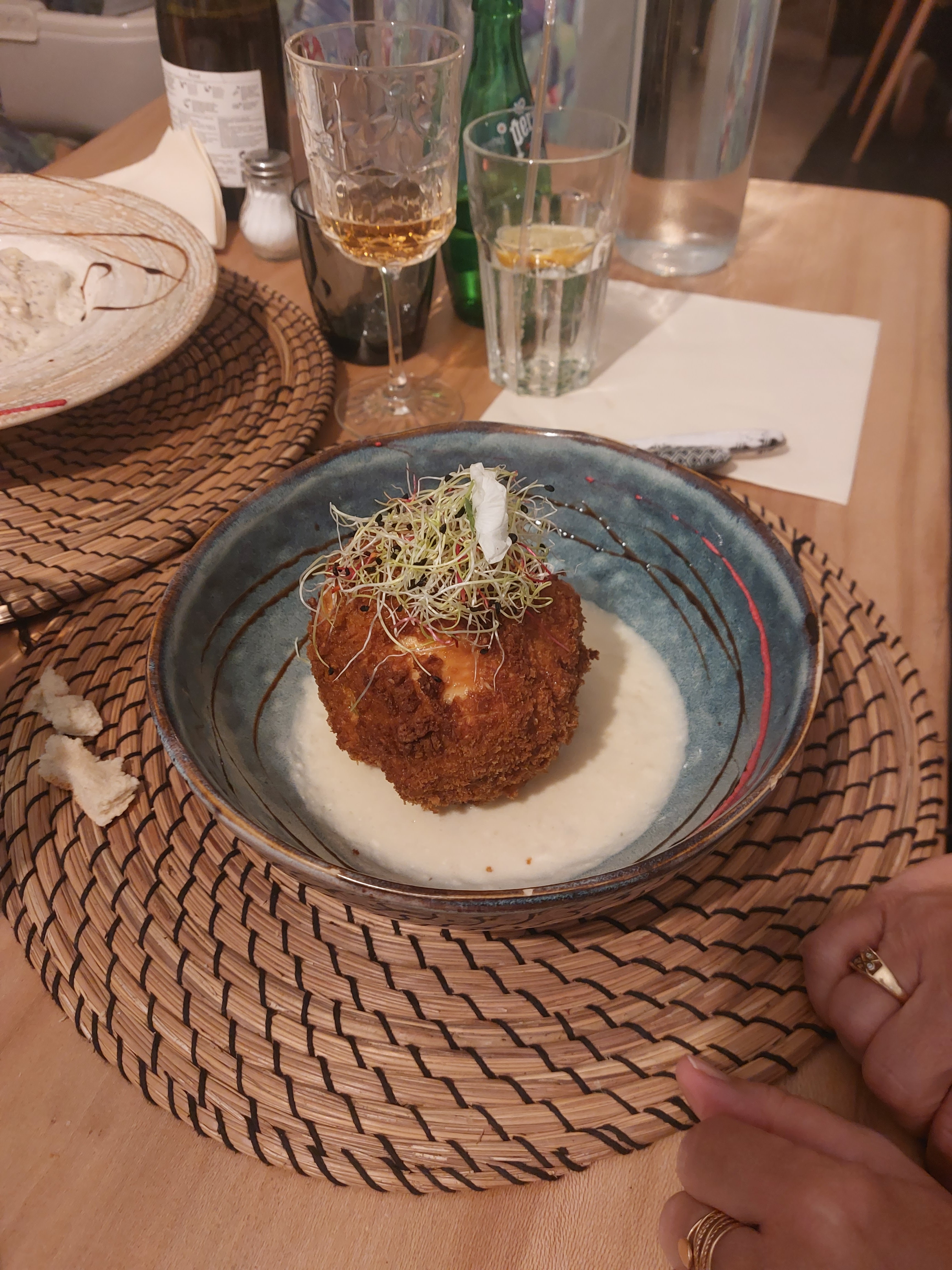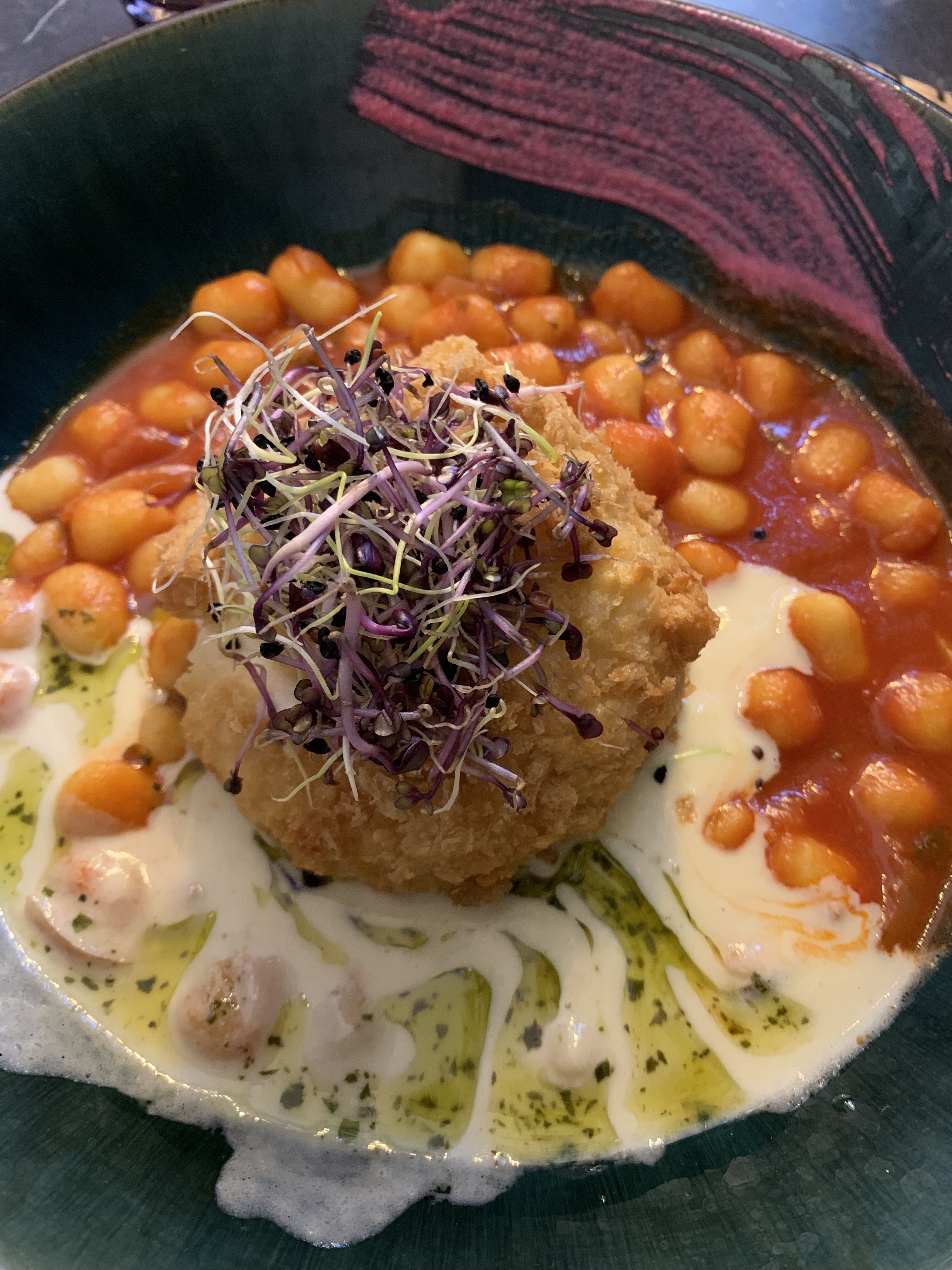 Alors j’y suis allée grâce à tiktok ! Parfois on est déçue car c’est joli mais pas bon mais là en plus de la présentation ( voir photo) c’est copieux ( génial on n'a pas faim on sort) Le goût est merveilleux le mélange des saveurs recherché. J’espère de tout que vous n’allez pas changer de qualité car vraiment je vais le conseiller. Merci pour cet accueil ( serveuses et un serveur super agréable). Et merci l’équipe de cuisine. Ps : la décoration est originale ! A bientôt