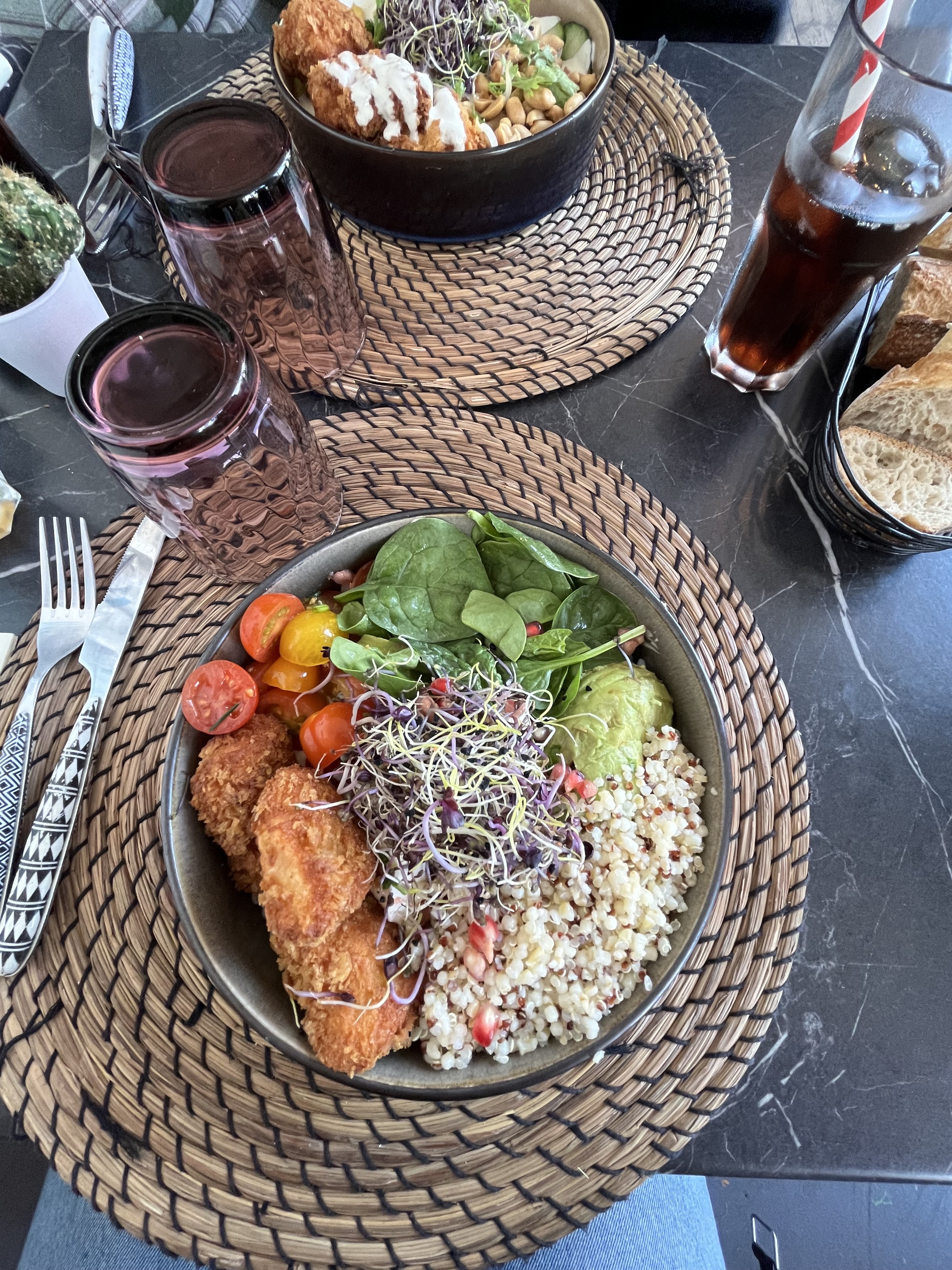Nous avons pris un bol à composer (façon poke bowl) c’était vraiment succulent, ainsi que le café gourmand très copieux ! prix très raisonnables et serveuses et serveurs super gentils