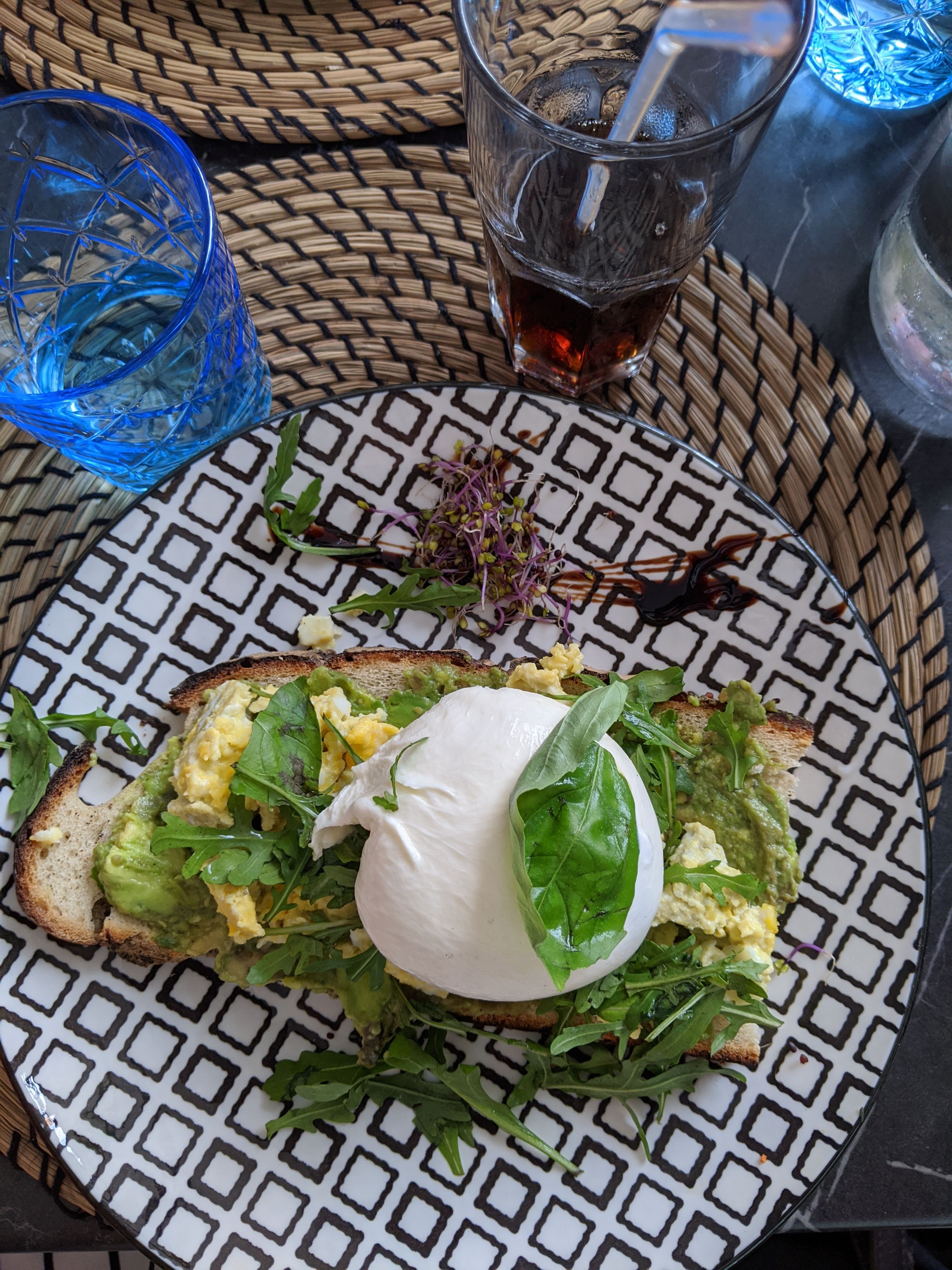 Venir avec une réservation le service dedans et dehors n'est absolument pas le même... service médiocre ! une attente interminable 1h exactement pour la 1ere commande mes plats : des eggs benedict et une tartine d'avocat ...évidemment encore de l'attente pour les desserts ....(30min) Le temps d'attente va varier du lieu entre dehors et dedans C'est dommage car le lieu est sympathique et une belle décoration mais juste pour découvrir....car le service gâche absolument tout. Total.: 45e pour deux 2plats 2desserts le prix est largement bien Dimanche 27