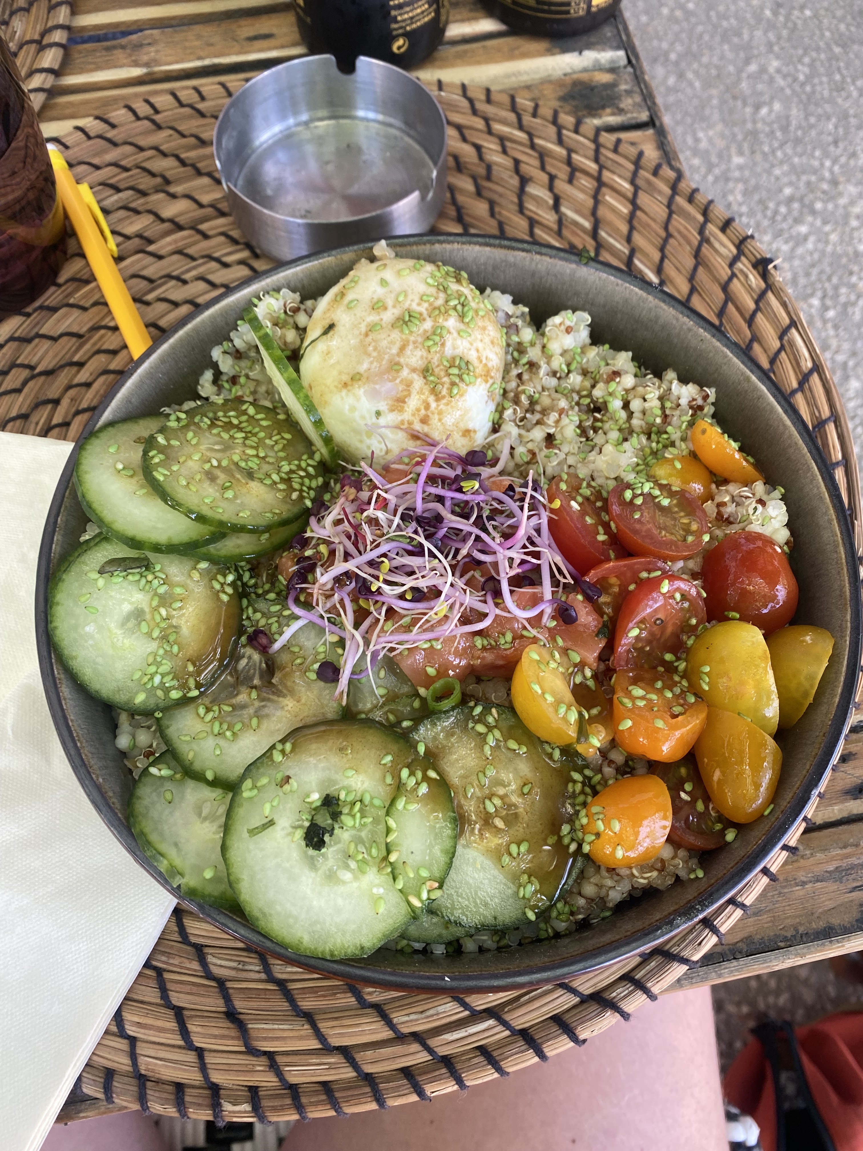 Déco très sympa. La table est bonne même si un peu cher le midi. Je recommande les bowls qui sont très conséquents et le meilleur rapport qualité prix. Pour le service c’est assez variés, je suis venue pas mal de fois: soit ils sont charmants soit particulièrement désagréables.