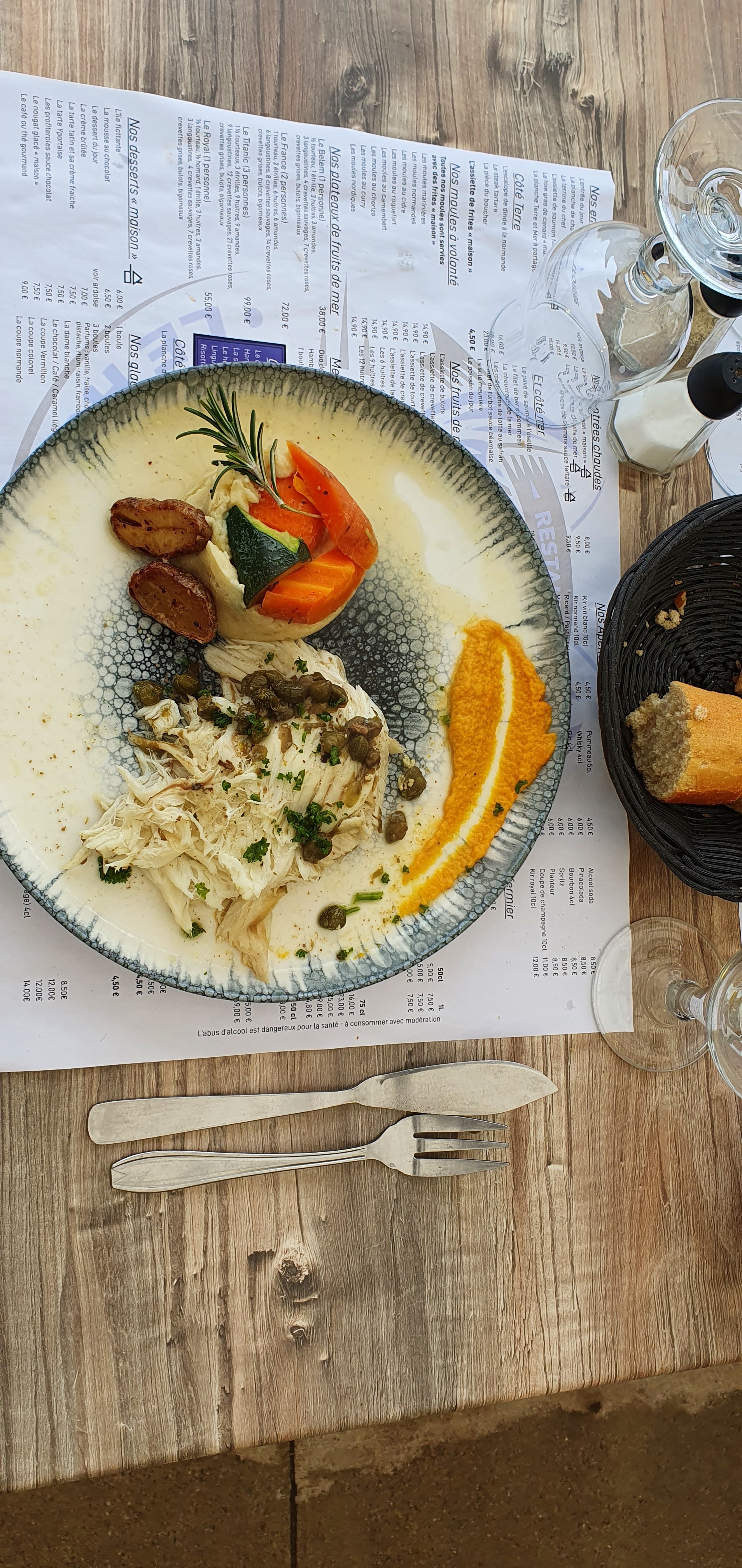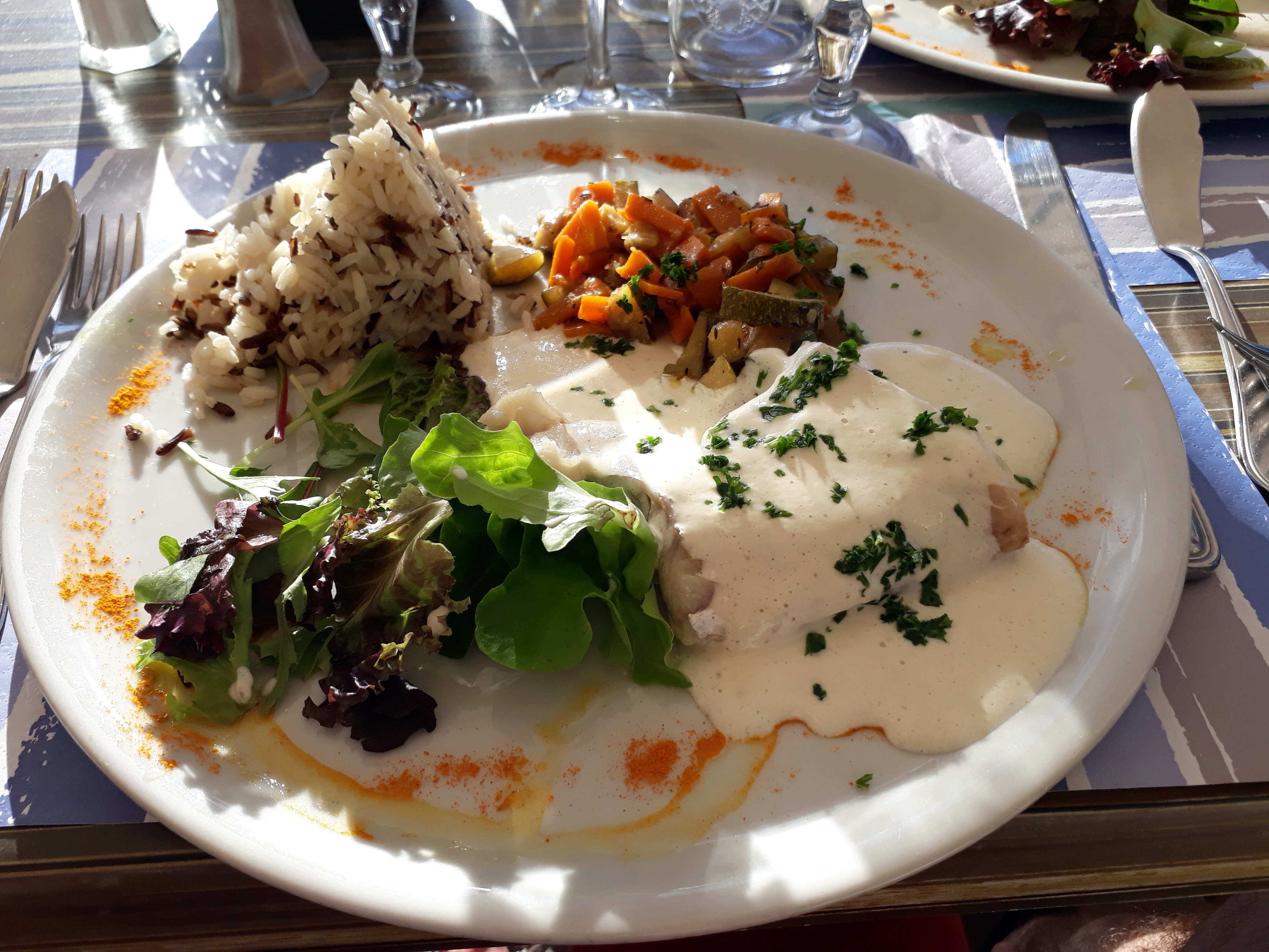 Repas avec spécialités poissons. Les prix sont donc un peu plus chers mais ils restent dans un budget classique de ce genre de restos. Resto au bout de la digue avec si vous avez de la chance depuis la partie véranda, vue sur les falaises. Nous avons eu la chance d'y être malgré le monde. La partie du resto intérieure était beaucoup plus bruyante et entassée par contre. La partie véranda est plus calme et lumineuse. Rien à redire côté service et petites attentions. Par contre grosse attente aux WC !