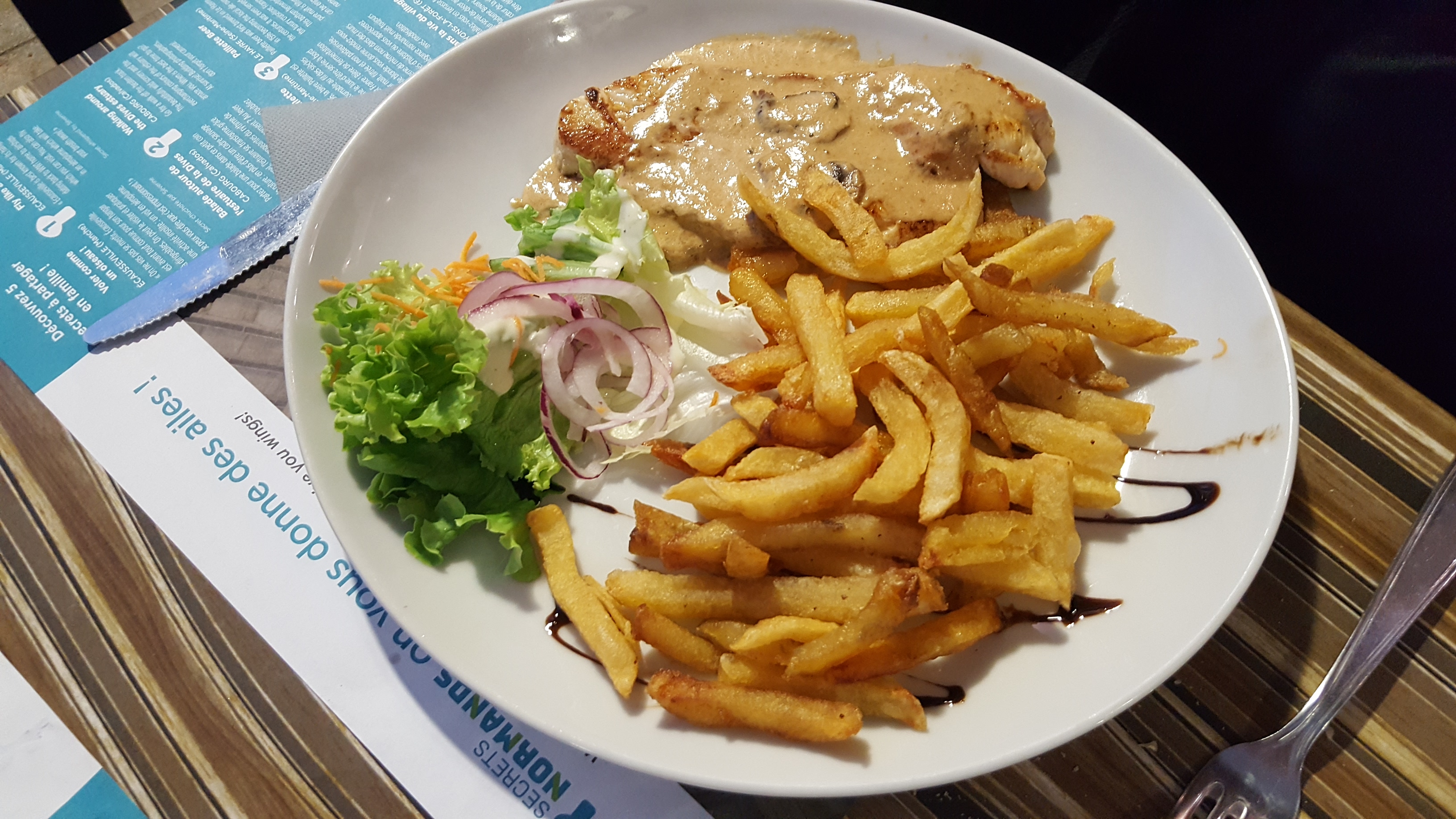 Resturant du 21 mai: Je déconseille vivement le pavé de saumon affiché à 18€ avec un accompagnement vraiment trop léger (une pauvre pomme de terre abandonnée dans l'assiette). Ce qui pousse à la commande d'une assiette de frites à 4€. Ceci donne l'impression que le restaurant souhaite faire des économies sur des frites ?!? Pourquoi ne pas ajouter une poignée de frites ou plus de légumes (pas de salade verte) pour le même prix du plat? Etant présent avec 6 personnes, l'escalope de dinde commandée par une personne était mieux accompagnée. Sur une table voisine, deux personnes avaient aussi commandé une assiette de frites en complément. Cependant, le pavé de saumon à l'oseille était très bon. Je tiens à préciser avoir demandé au serveur lors du repas s'il était normal d'avoir si peu d'accompagnement pour ce plat. Au moment du paiement, j'ai donné à nouveau mon feedback et prévenu que je mettrai un commentaire afin que le restaurant trouve une solution pour l'accompagnement.
