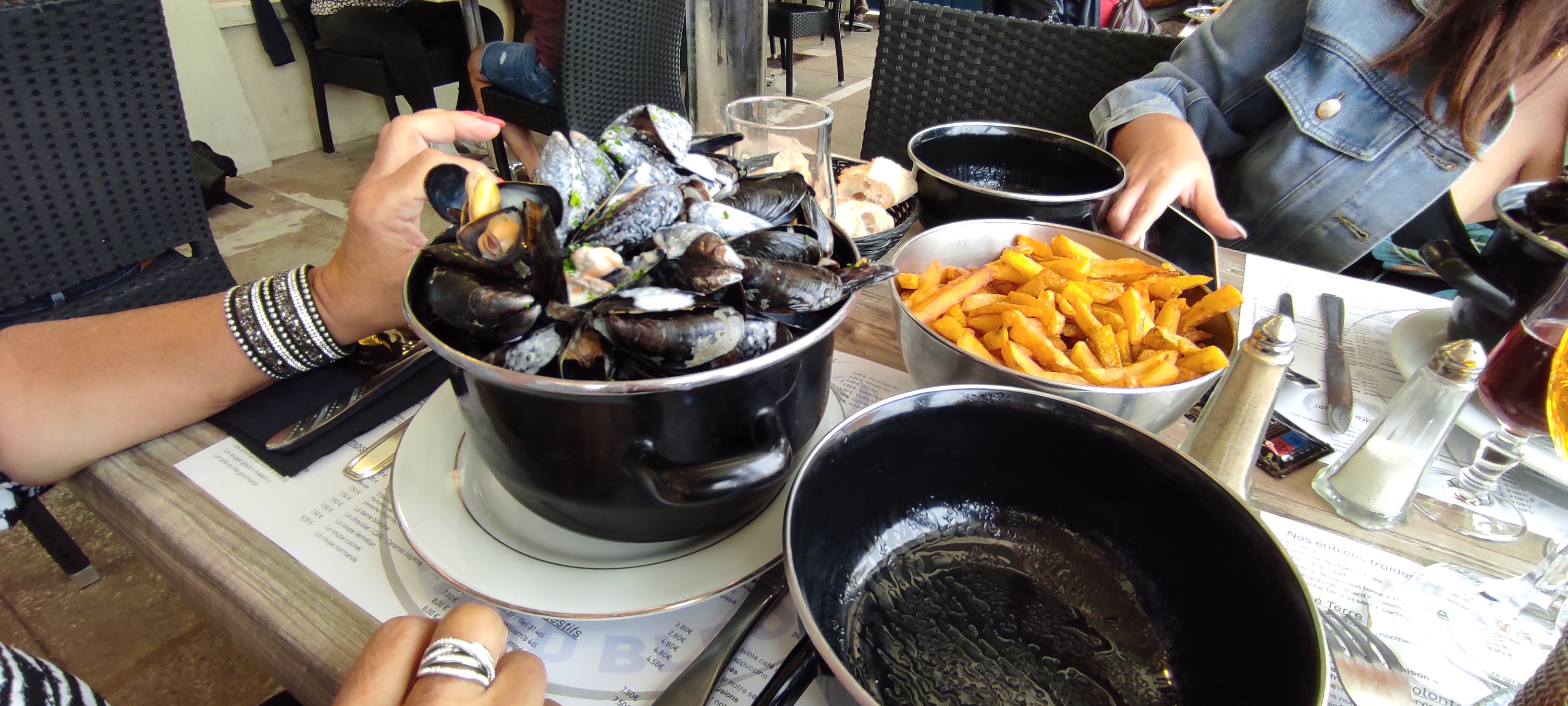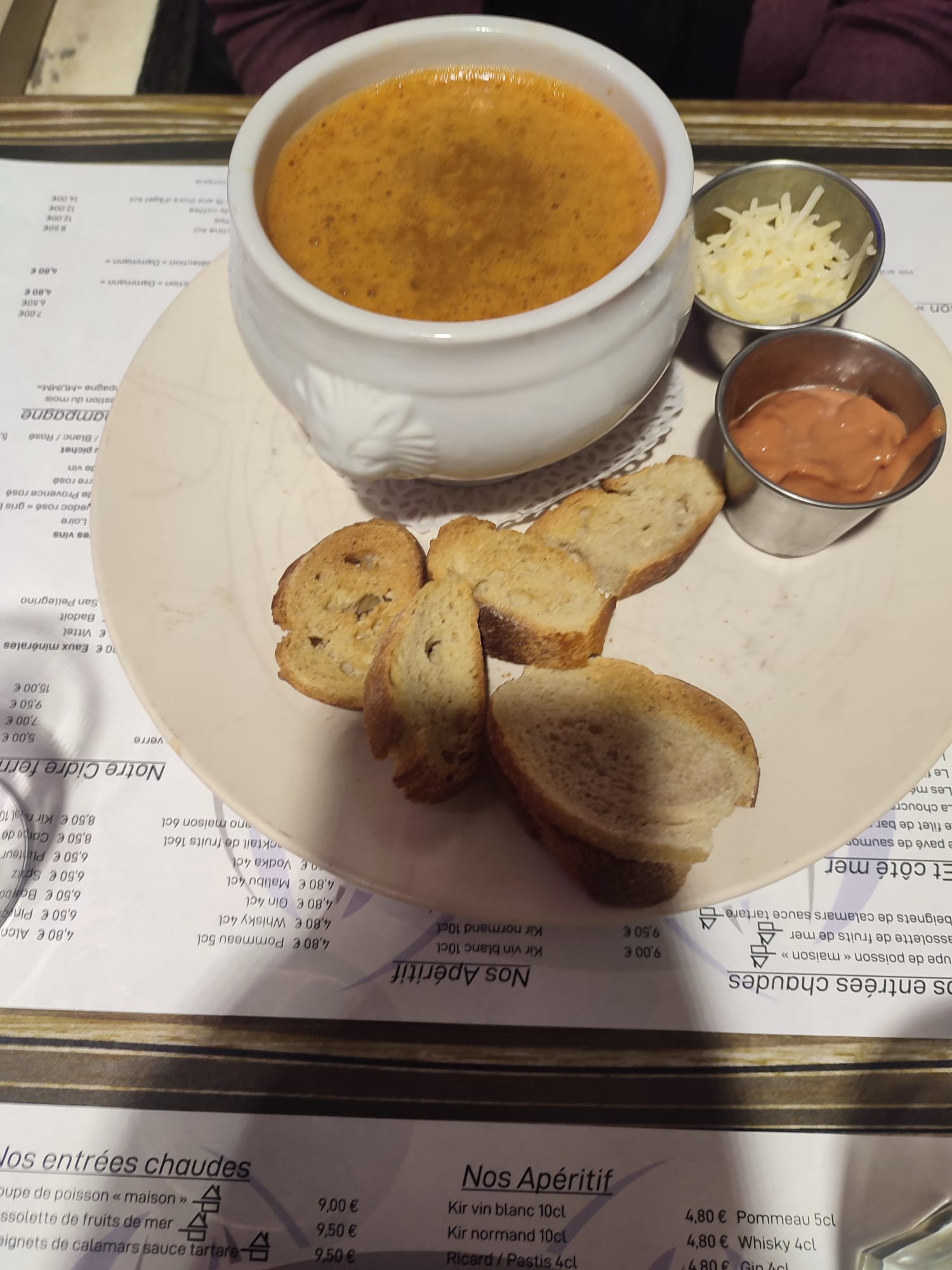 Je n’ai pas aimé les moules, même si elles étaient très grosses et miniatures. Je ne pouvais pas manger de soupe de poisson. Les profiteroles ne sont PAS savoureuses.