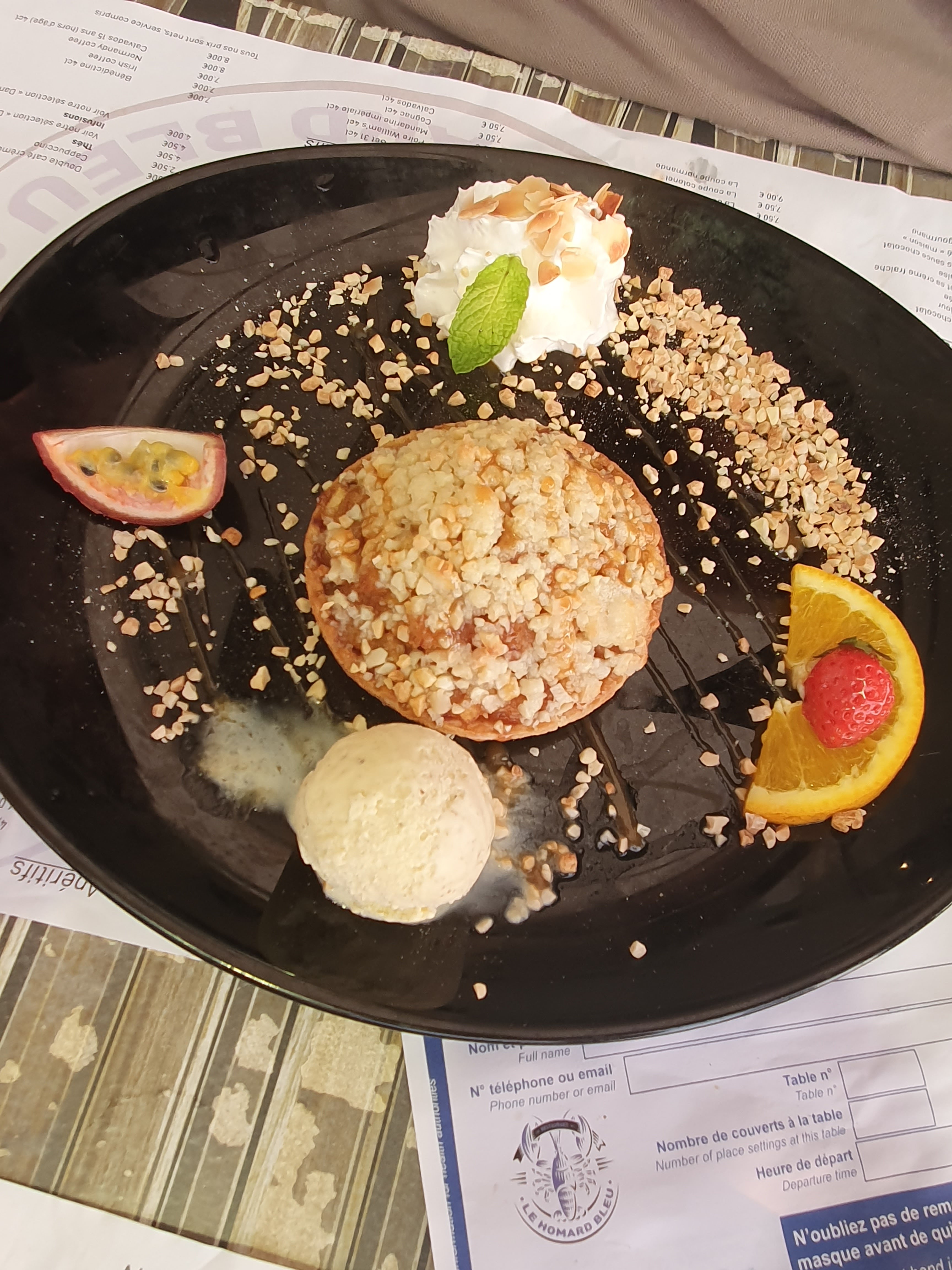 Super restaurant spécialisé dans les fruits de mer .très bon service et repas délicieux . Bravo au pâtissier pour ça pomme en trompe l'oeil