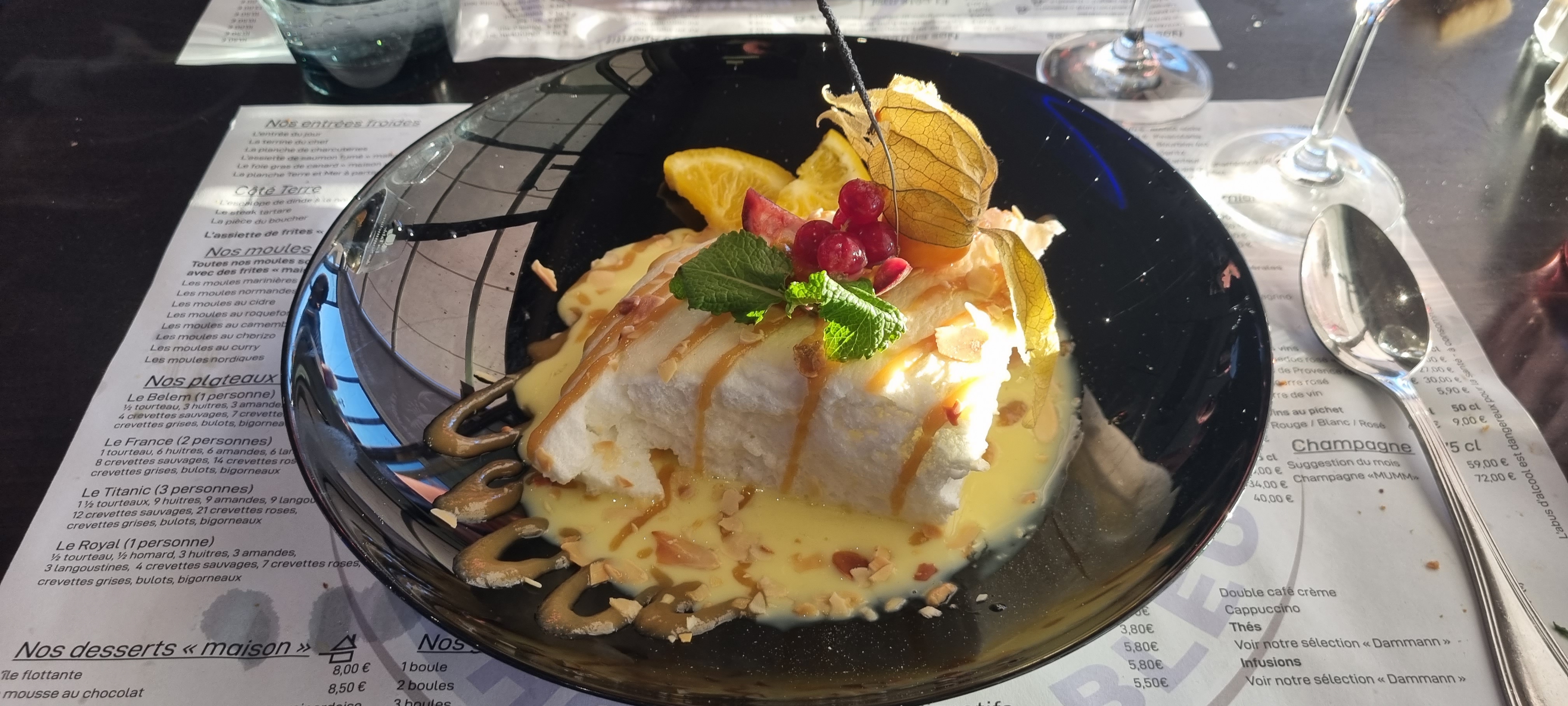 Top ! Service réactif et sympa. Nous avons pris un plateau de fruits de mer, des moules normandes, une tarte tatin, des profiteroles et c'était très bon.