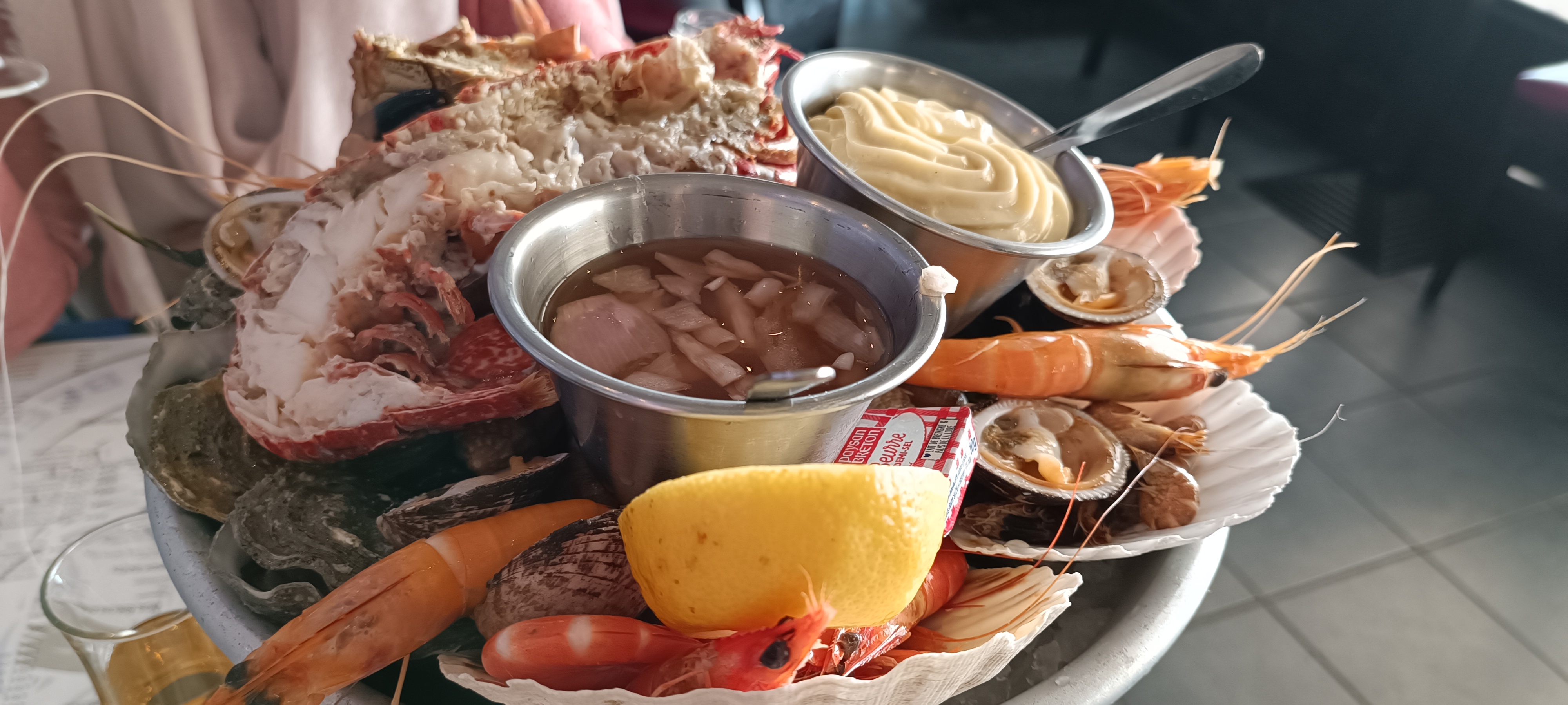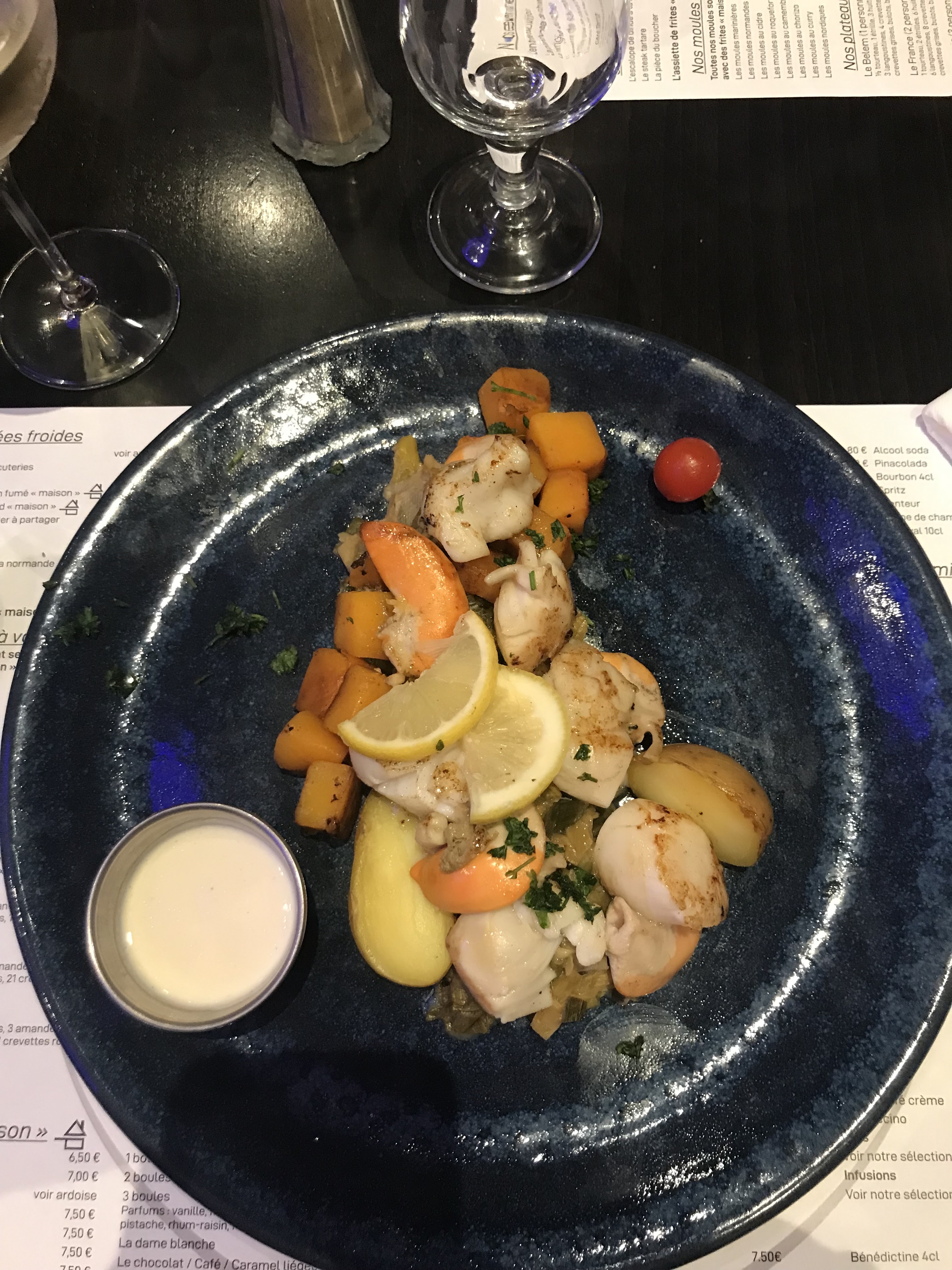 Plat copieux le toi très bon et service agréable, petit bémol les moules était vite froide et wc pas au top. Dommage ! Les assiettes de fruits de mer sont très belles.