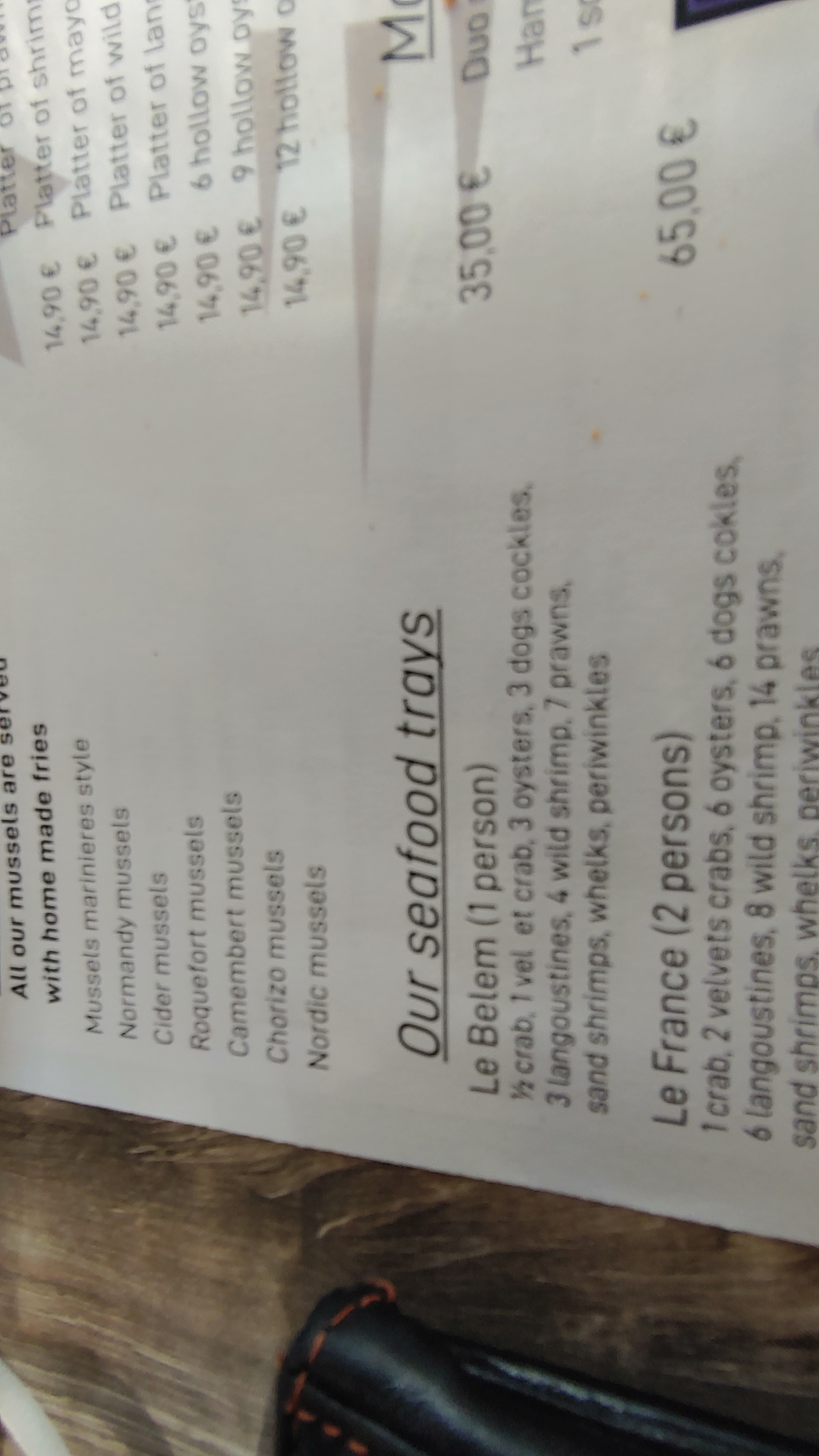 Malgré la déco un peu vieillotte, le service est de qualité et les plats servis très bons. Nous avons pris le plateau Titanic et des moules à volonté, sans regret.