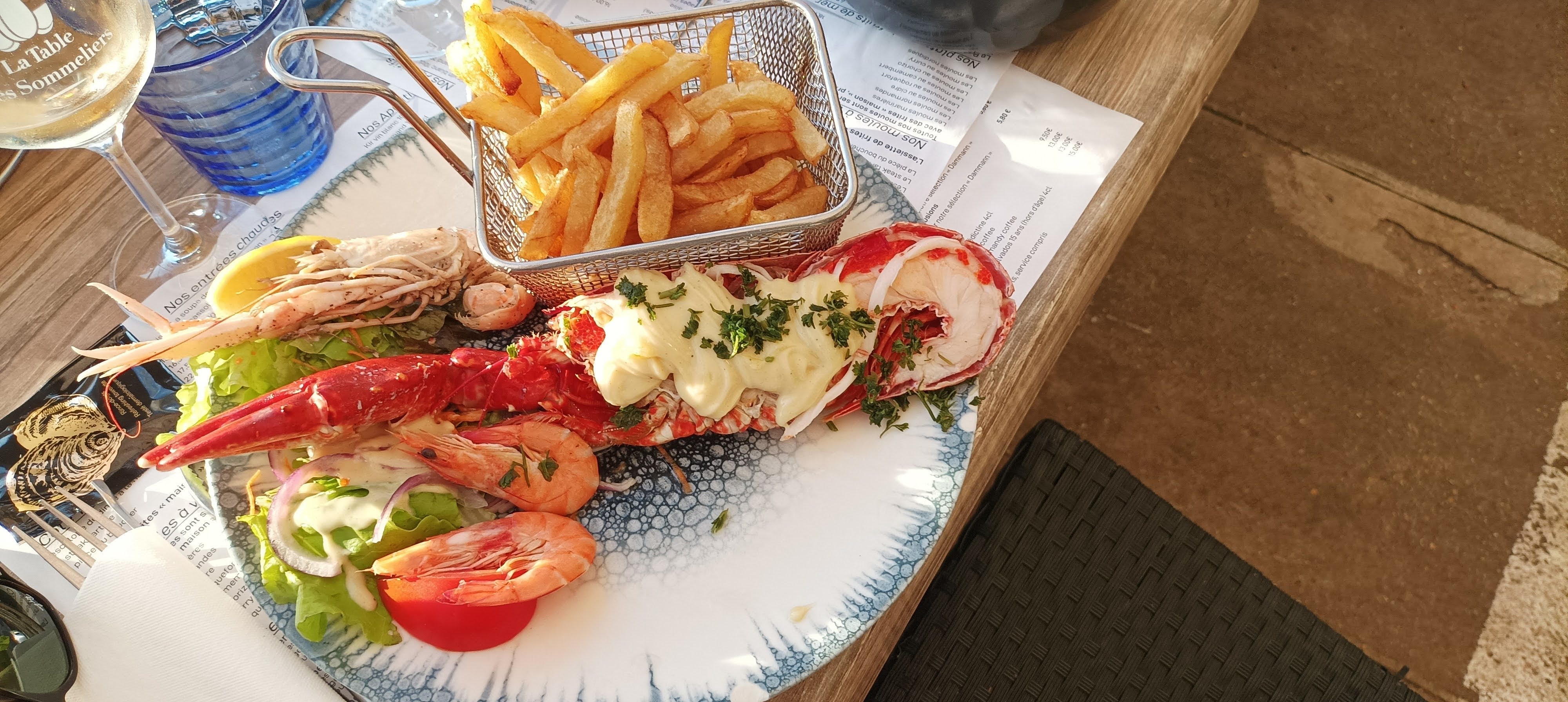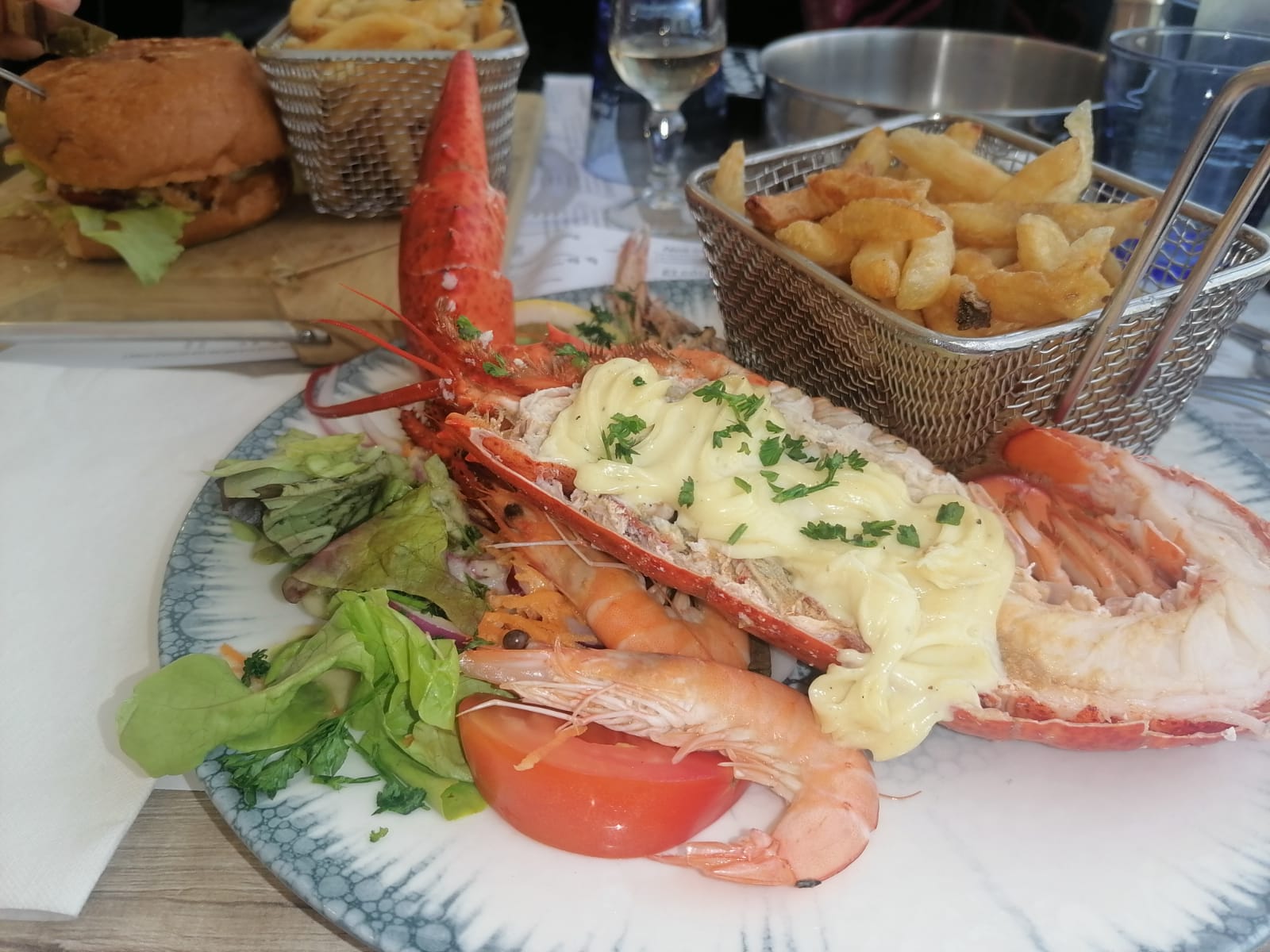 Nous avons passé un très bon moment. Le homard bleu, grillé, était délicieux et bien en chair (Très sympa de pouvoir le choisir dans le vivier). Frites et sauce maison, un régal. Équipe réactive et aimable, la serveuse a été très agréable et de très bon conseil. Top !