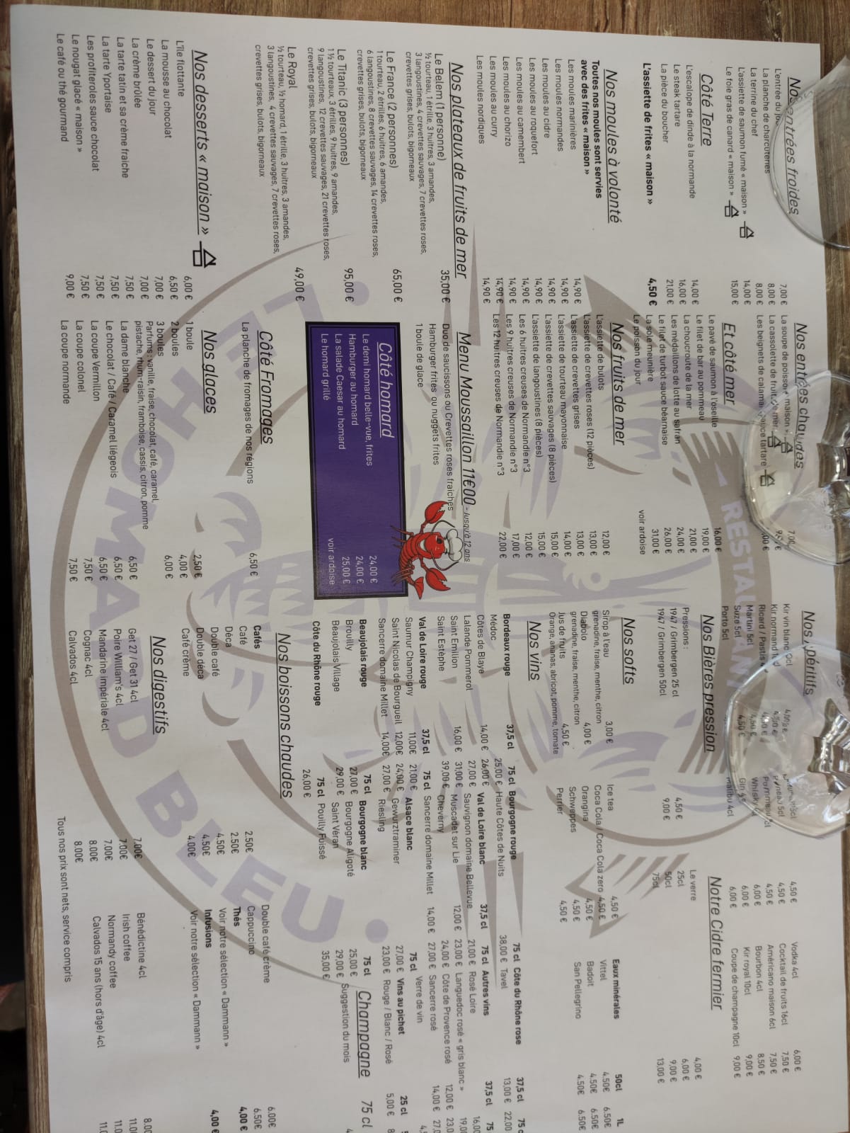 Nous avons passé un très bon moment au homard bleu Étretat . Nous recommandons le homard grillé avec ses frites maison . Le plateau de fromage à partager super et la cerise sur le gâteau le dessert les profiteroles et la tarte tatin ... L accueil super et les serveuses dynamiques et soucieuses du bien être de leurs clients et du Petit détail.... Nous reviendrons.