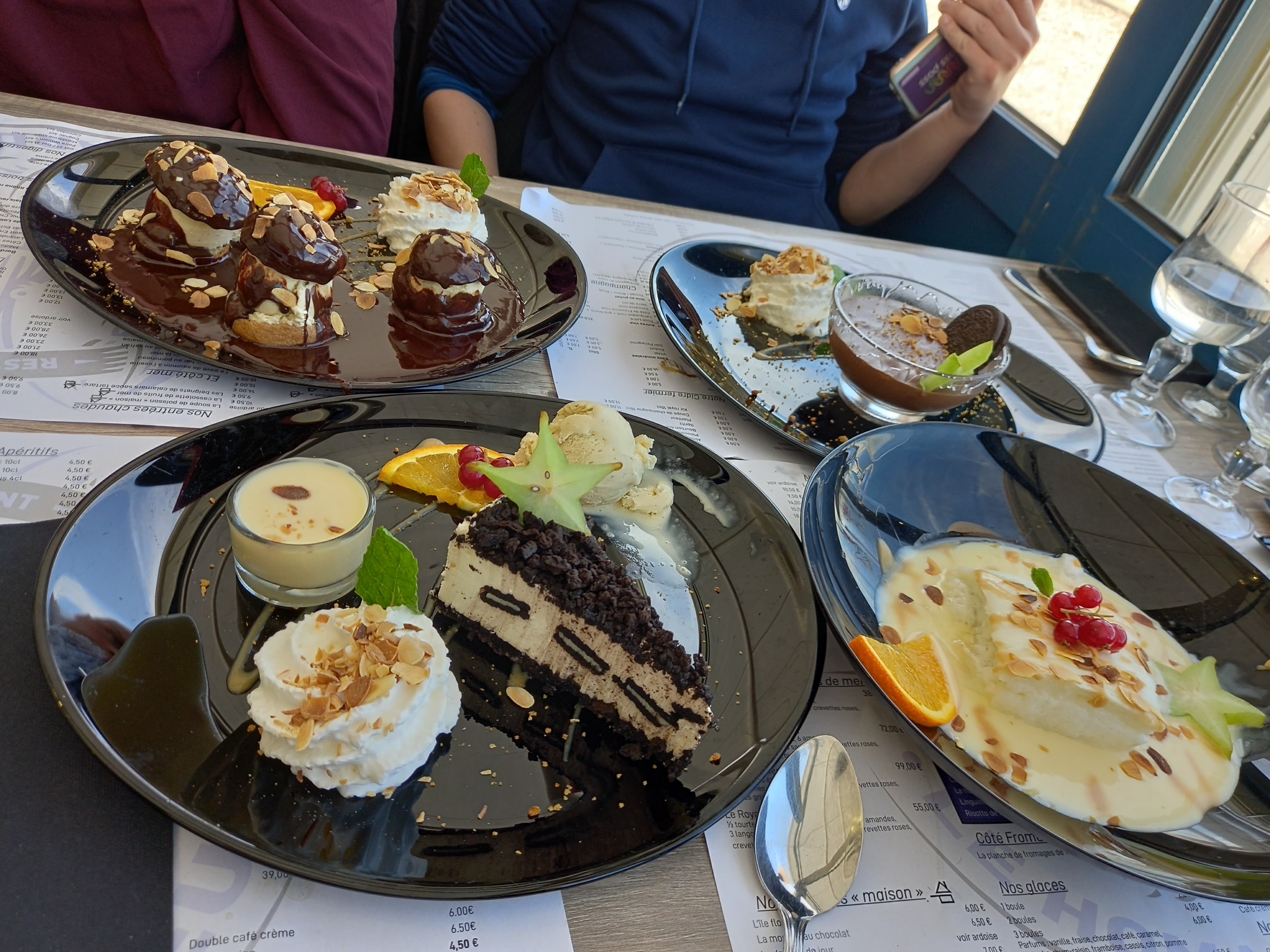Les moules de bouchot à volonté étaient un peu trop cuites mais rien de bien méchant, nous sommes arrivés en fin de service.. Nous avons bien mangés quan même. Le vin était bon et les desserts excellents !! Je recommande