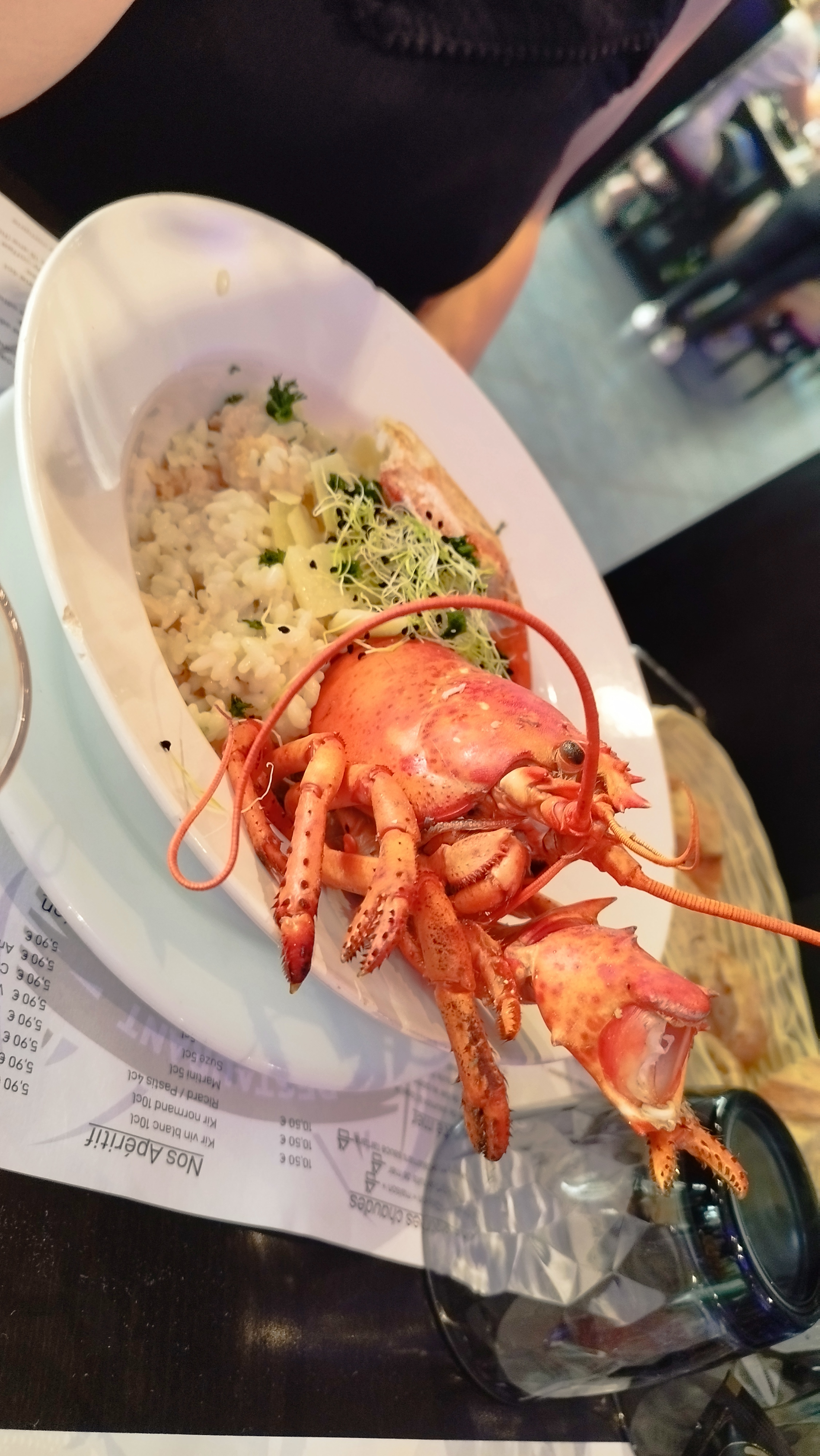 Risotto au homard ! Prix correcte, plat excellent, généreux en homard et vue superbe.