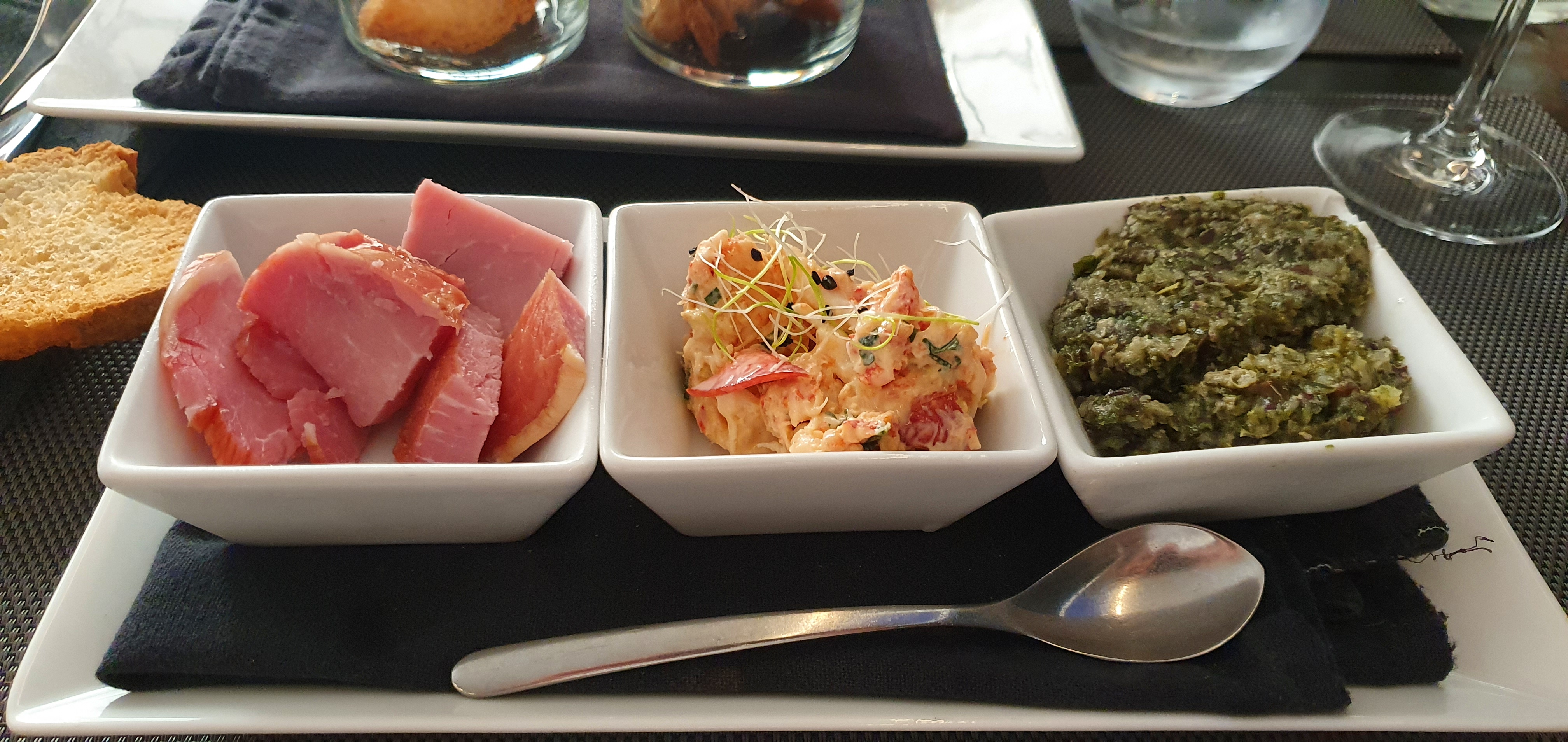 Entrée, rien n'est conçu sur site. Morceau de plastique avec le jambon servi. Aucun geste commercial. Caviar d'algues importé d'une entreprise de Finistère juste dressé. Vin blanc servi chaud. Frites légèrement rassis. Ventilateur dans le dos. Pas de rince doigts. Homard servi avec une sauce corail insipide. Prix exorbitant. N'y allez pas.