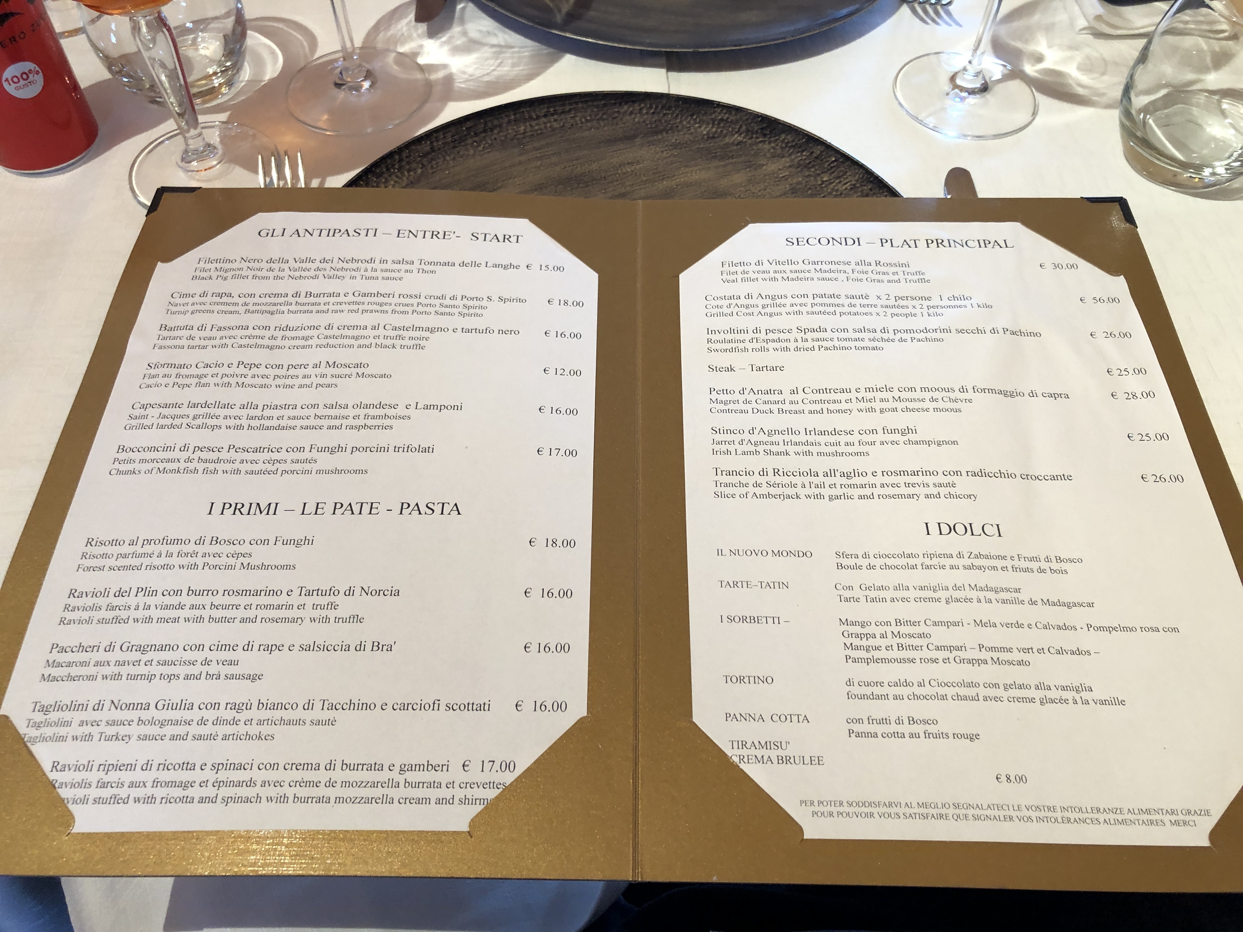 Très bon restaurant italien, cuisine raffinée et belle offre de vins du Piémont voisin ainsi que de la Toscane et d'autres régions d'Italie, à des prix très raisonnables. N'y allez pas si vous recherchez des pizzas et des spaghettis napoli, c'est une cuisine italienne moderne de haut niveau.