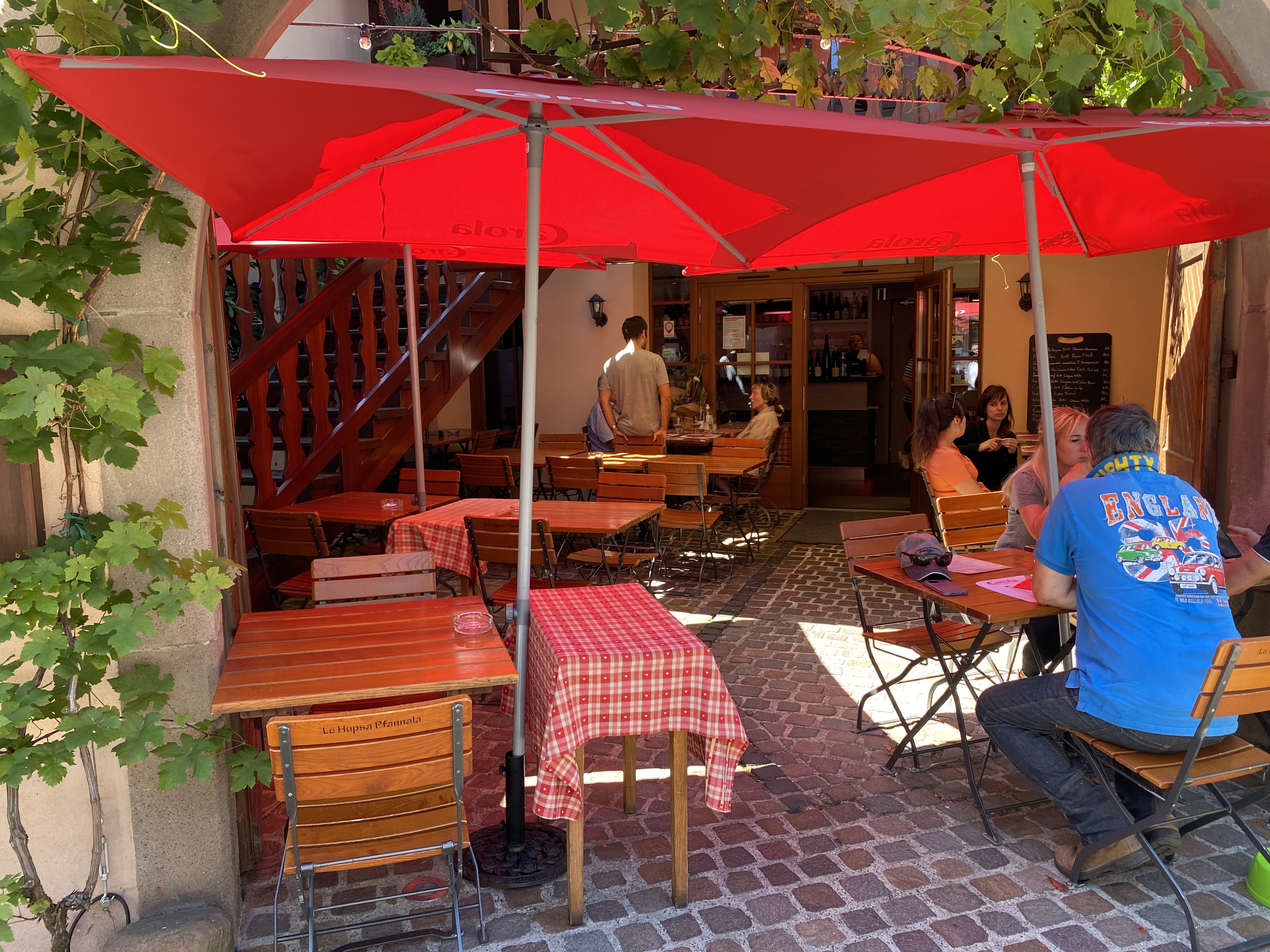 découvert par hasard en revenant du Haut Koenigsbourg et immédiatement conquis! Nous étions confortablement installés à la table au-dessus du puits, à l'intérieur, le personnel était aux petits soins, et les plats copieux et délicieux! Je recommande d'y aller de bonne heure (comme au château d'ailleurs) car le restaurant se remplit très vite.