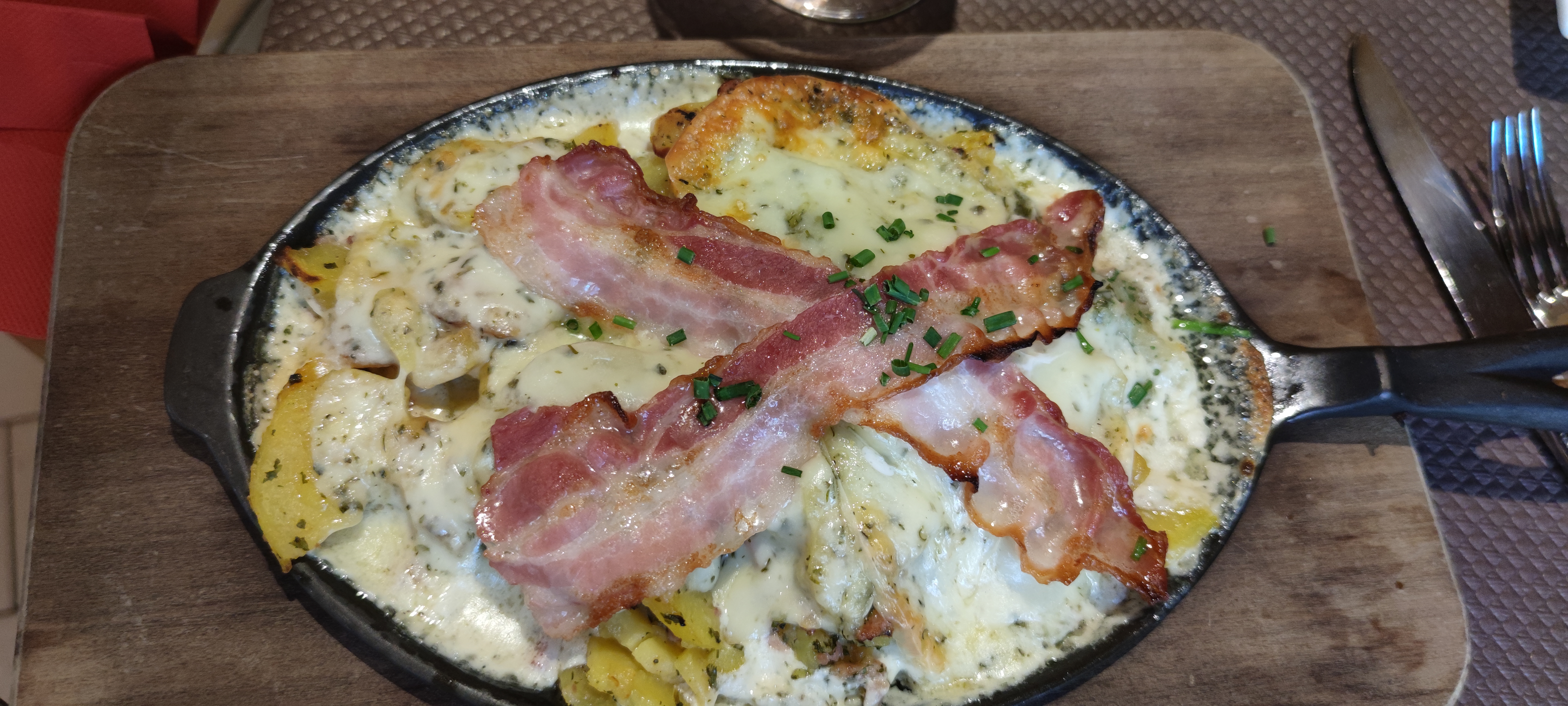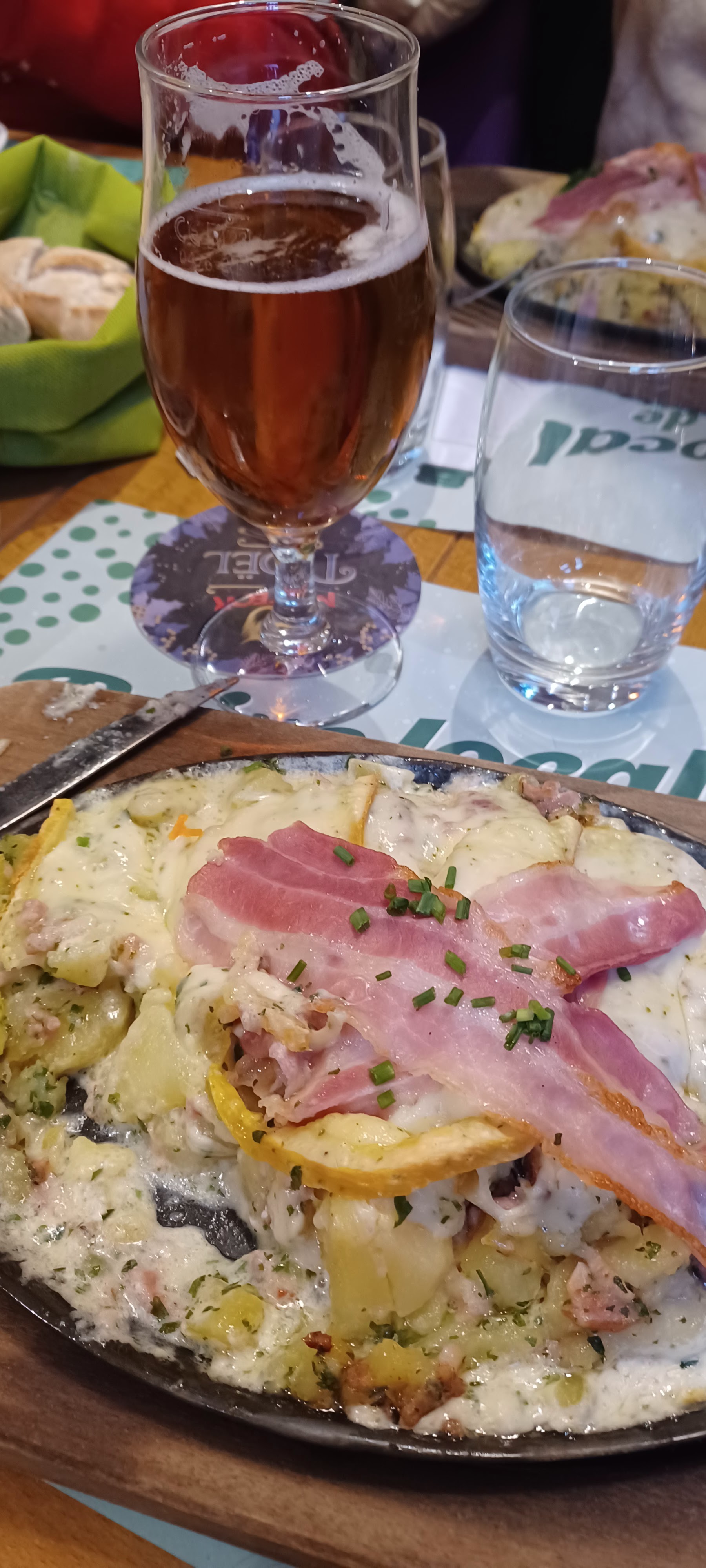 Très joli , très bon mais très cher pour des patates et du fromage ! J ai encore en travers la bouteille d eau à 6,60 € Bref sachez qu on mange aussi bien partout en Alsace pour beaucoup moins cher
