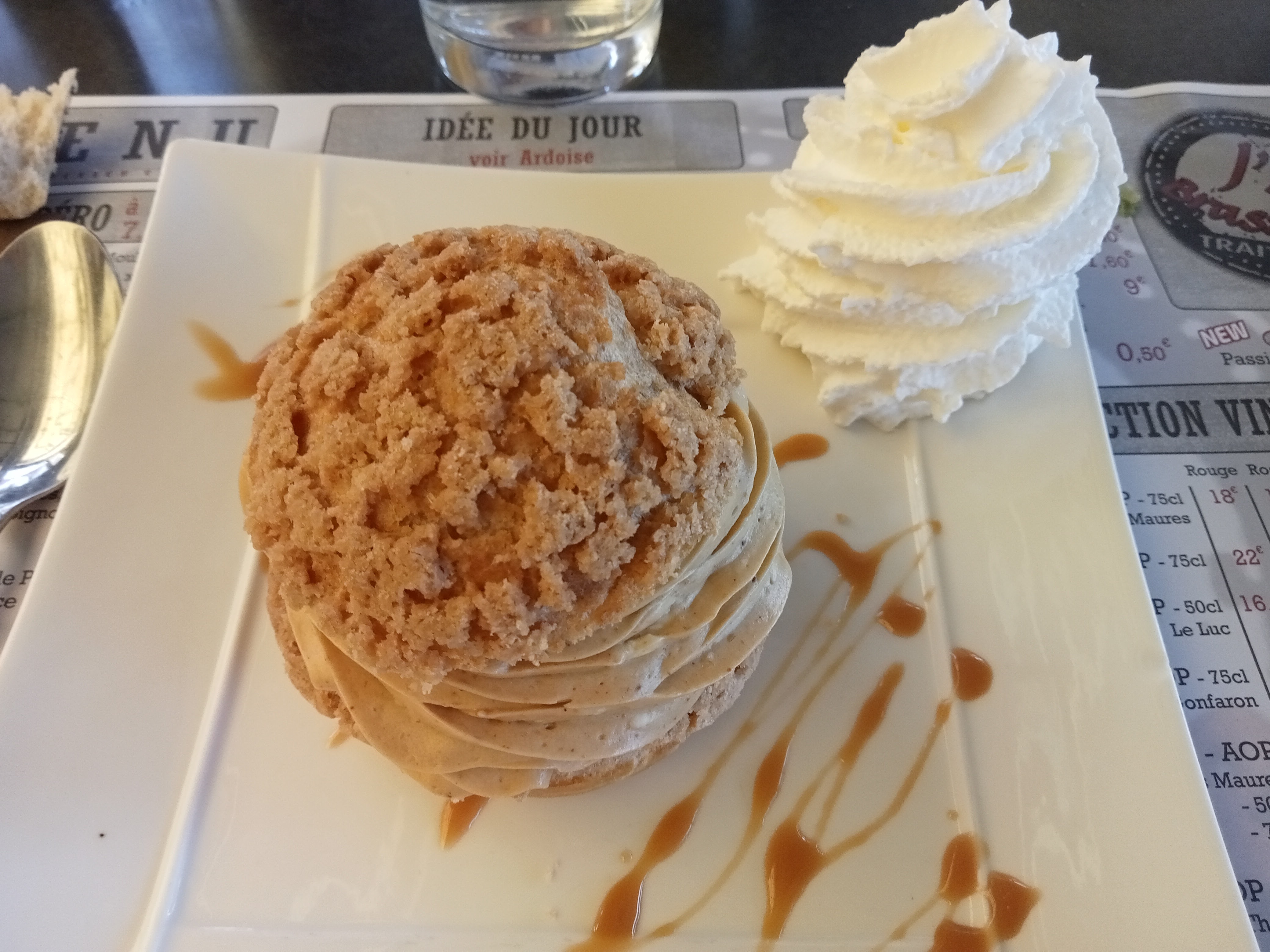 Un tartare basque du jour excellent et un Paris-Brest à tomber pour un très bon repas dans le Var.