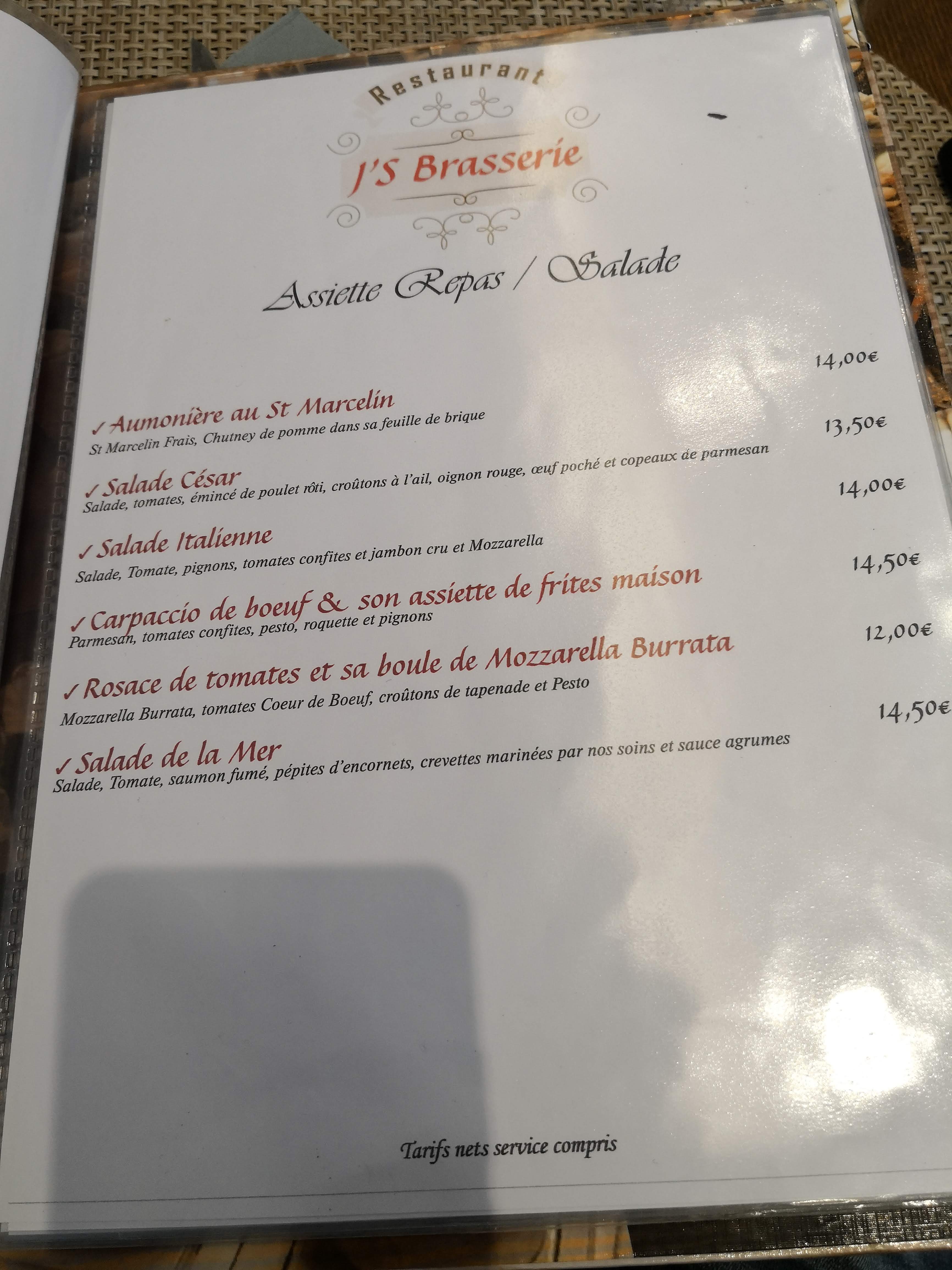 Pour la 2eme année consécutive repas de groupe au j s brasserie. Gentillesse du personnel rapidité du service prix abordables et surtout qualité des plats sont au rdv.merci