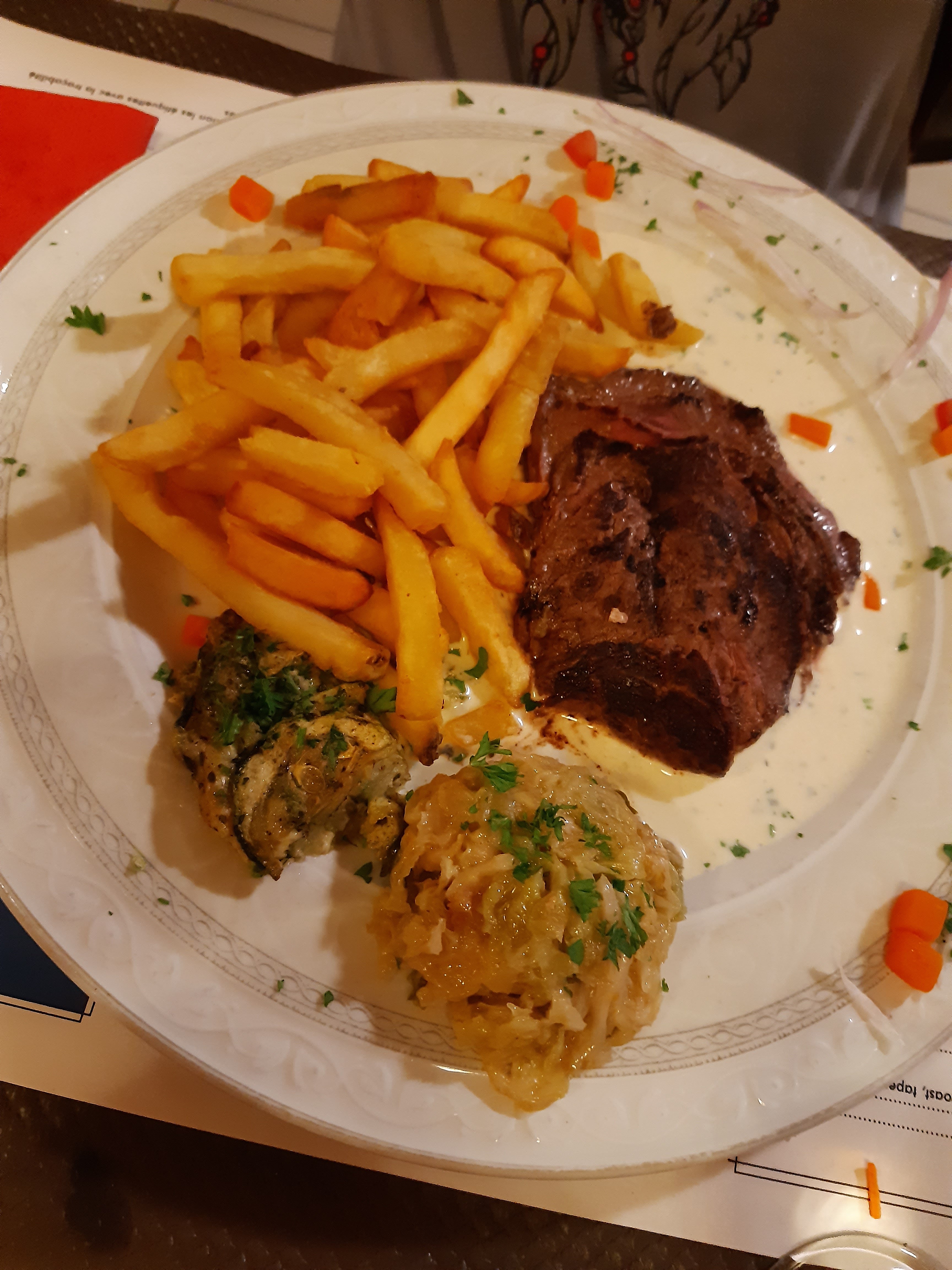 Rien a dire assiette copieuse et bonne de l entrée jusqu au dessert pour un menu a 23 euros. Moi qui suis gros mangeur j ai l estomac sur les talons n'hésitez surtout pas. très bien accueilli