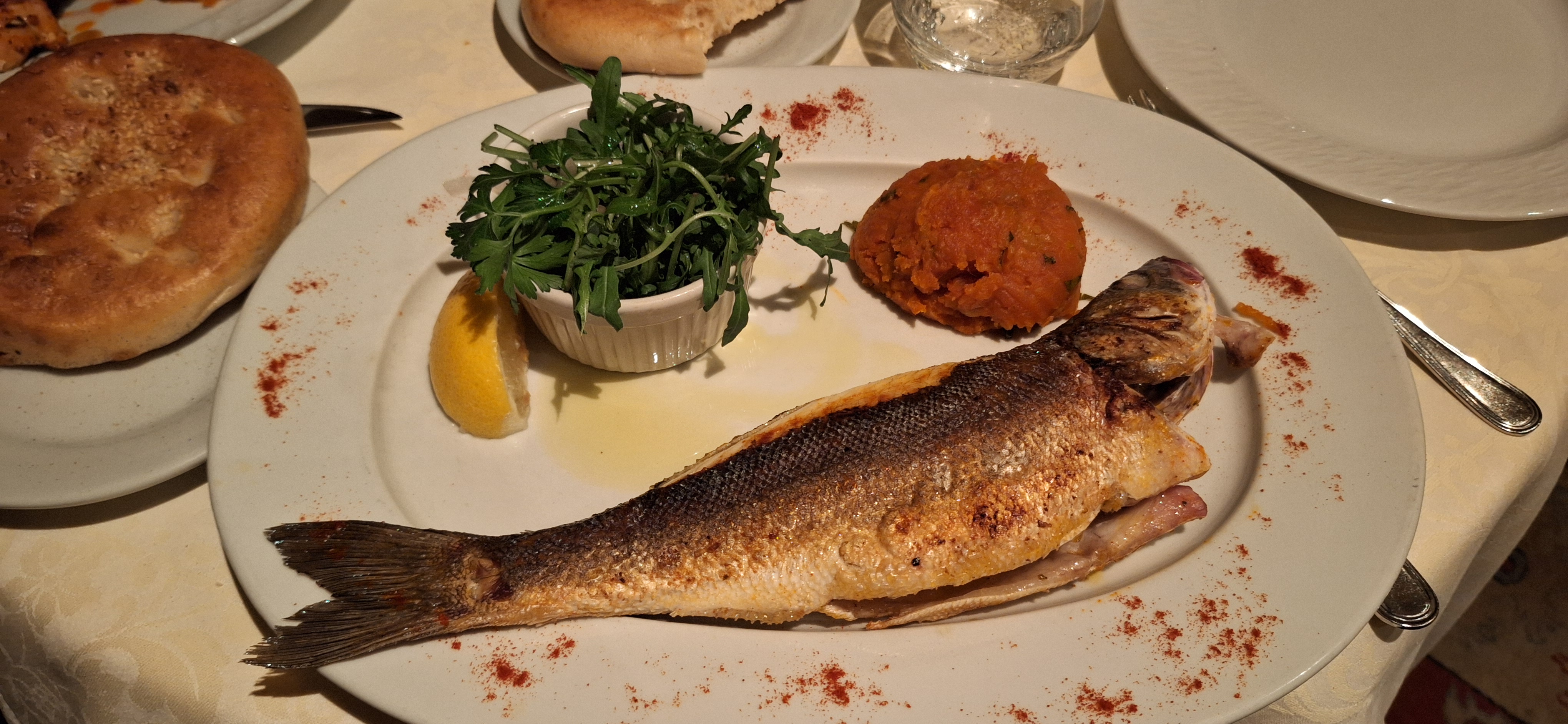 Délicieux ! Du tarama maison comme je n'en avais jamais mangé. Il est présenté comme une entrée et non comme un simple dip. Le menu était vraiment abordable pour la qualité des plats!