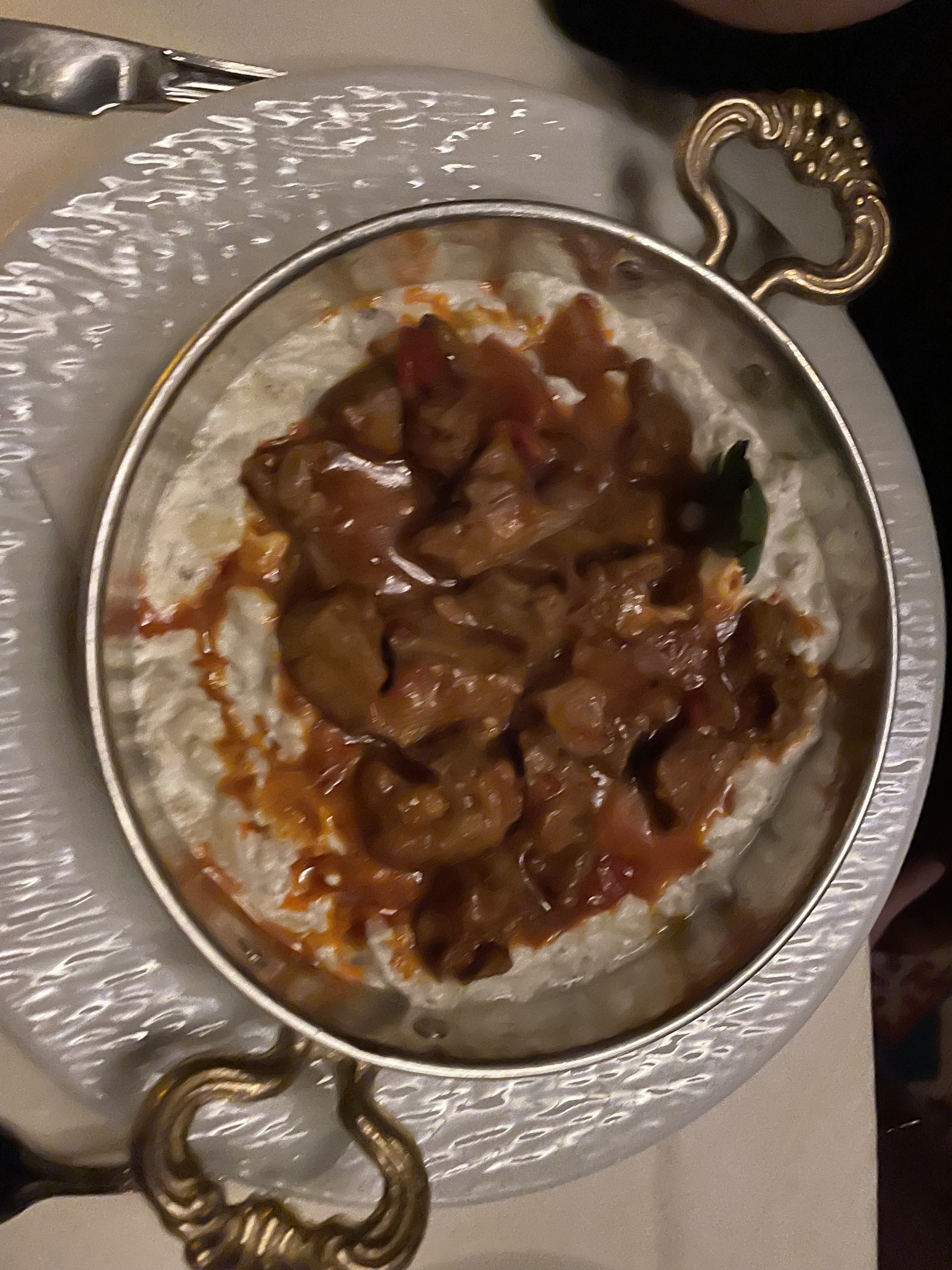 Gastronomie turque, la viande est arrivée avec plein de gras et pas facile à manger. Le service en revanche est très bien, courtoisie et amabilité sont au rdv