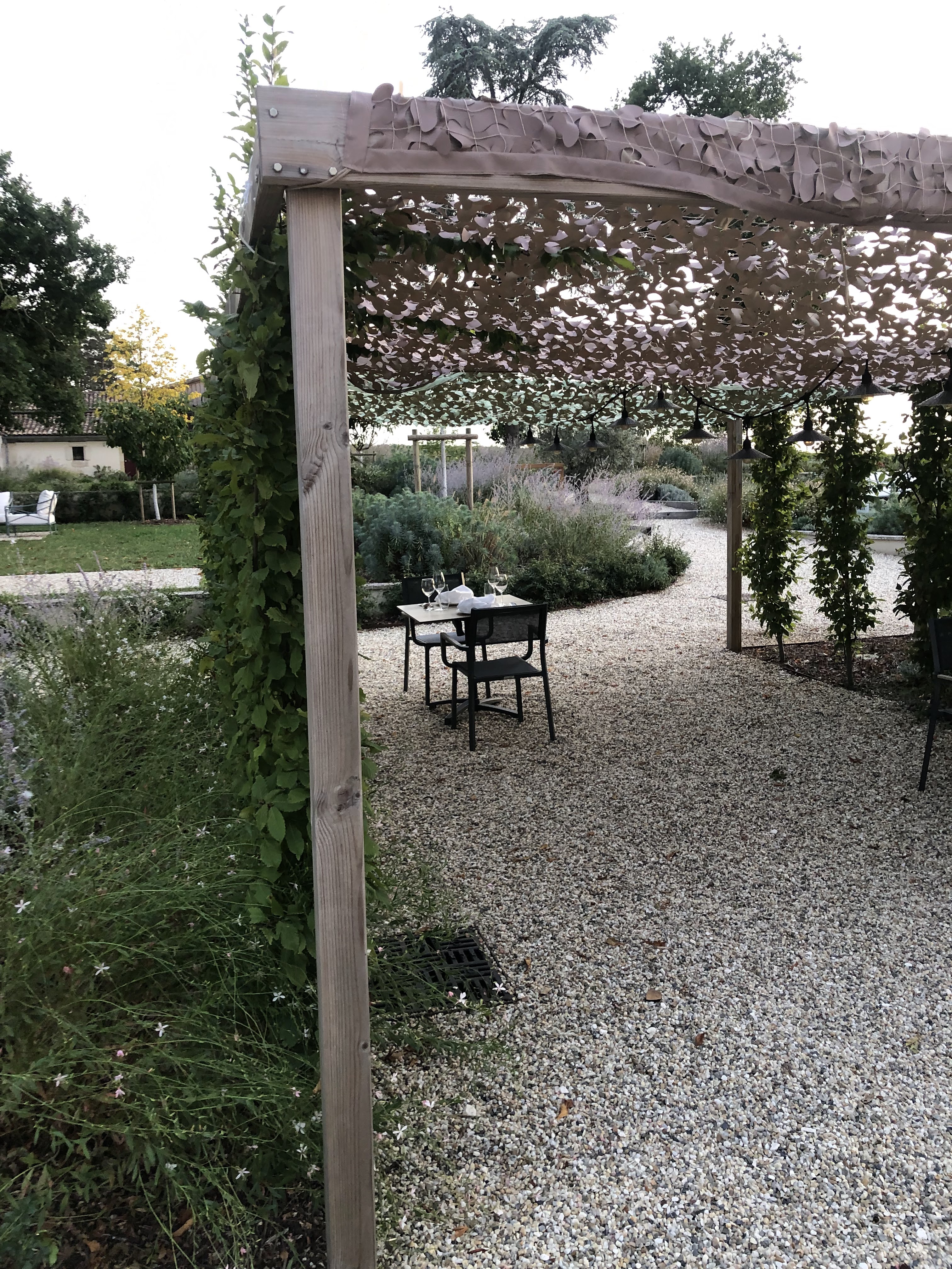 Sublime cadre . Entouré d un jardin magnifique et vue sur les vignes qui l entourent. Restaurant avec une équipe jeune et dynamique à l écoute du client . Cuisine formidable et savoureuse.
