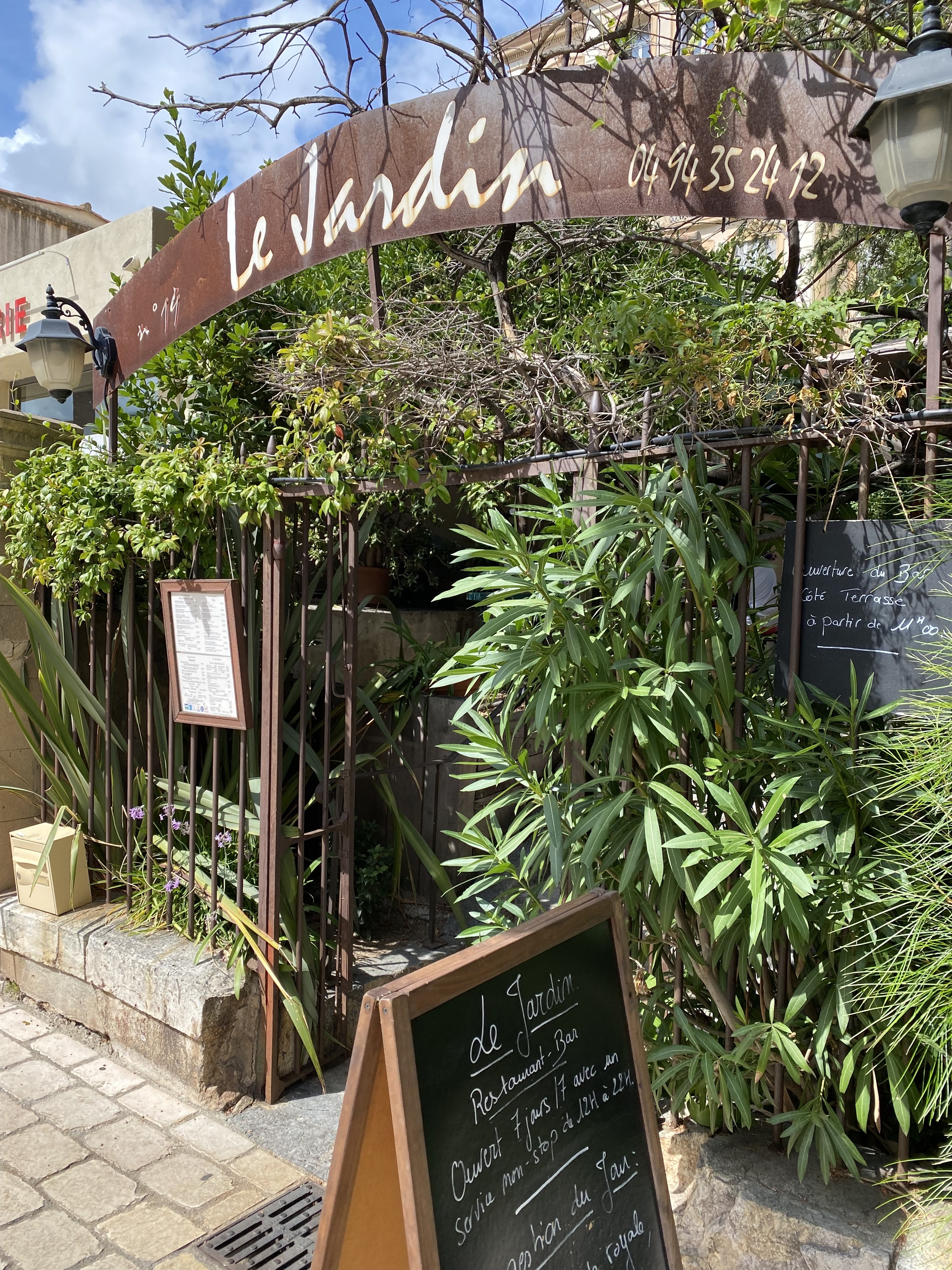 Un lieu très charmant en plein cœur de la ville. Le restaurant porte très bien son nom ! Quel plaisir de trouver un petit écrin de verdure dans lequel se restaurer paisiblement. Nous avons là une cuisine très raffinée, entièrement maison, et créative. C'est un établissement maître restaurateur, gage d'une cuisine de qualité. Les plats proposés sont excellents, typiques, et extrêmement savoureux. Il y en a pour tous les goûts, y compris pour les végétariens. Clairement, personne ne sera déçu. Nous nous sommes régalés de l'entrée au dessert. De plus, le personnel est vraiment très chaleureux, avenant, et commerçant. Les prix pratiqués ne sont clairement pas excessifs pour la qualité proposée. C'est un lieu à ajouter à son carnet d'adresses sur Hyères. Nous y reviendrons sans hésitation !