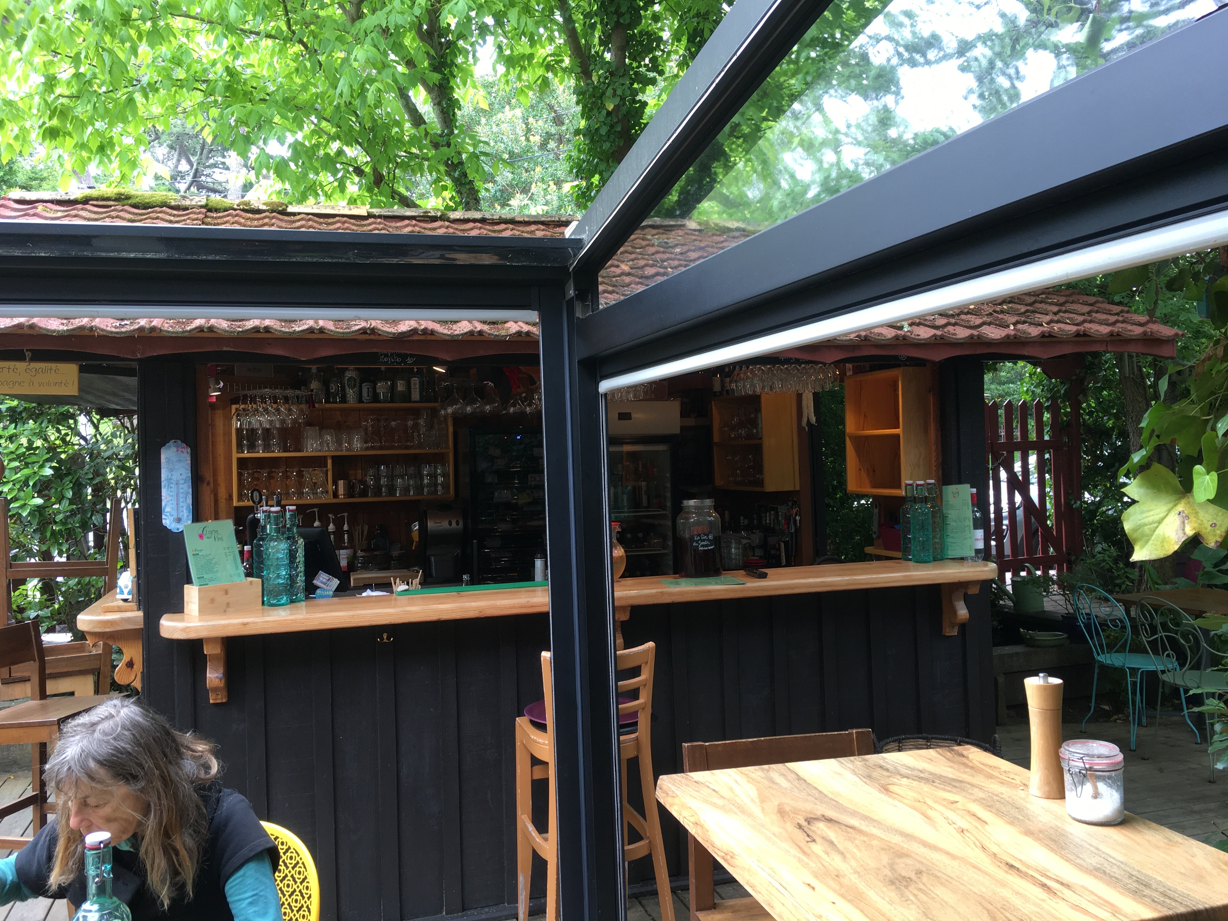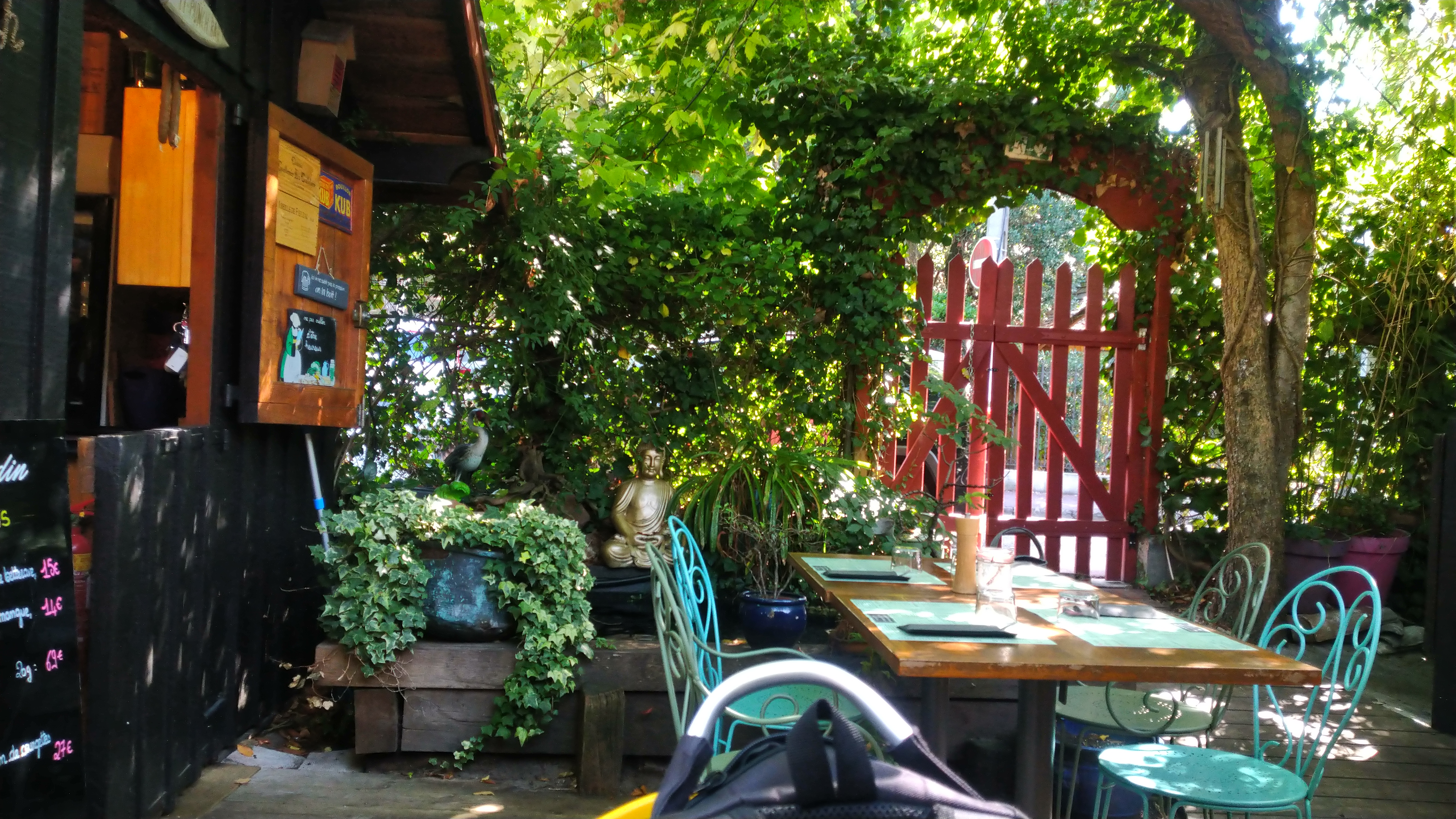 Lieu très sympa pour dîner en extérieur. Petite paillotte au milieu du jardin pour servir les boissons les tables sont disposées autour. Personnel très dispo et à l'écoute. Un grand plus pour la chaise haute et l'acceptation de notre poussette. Je recommande vivement ce lieu. Par contre pensez à réserver à l'avance!!
