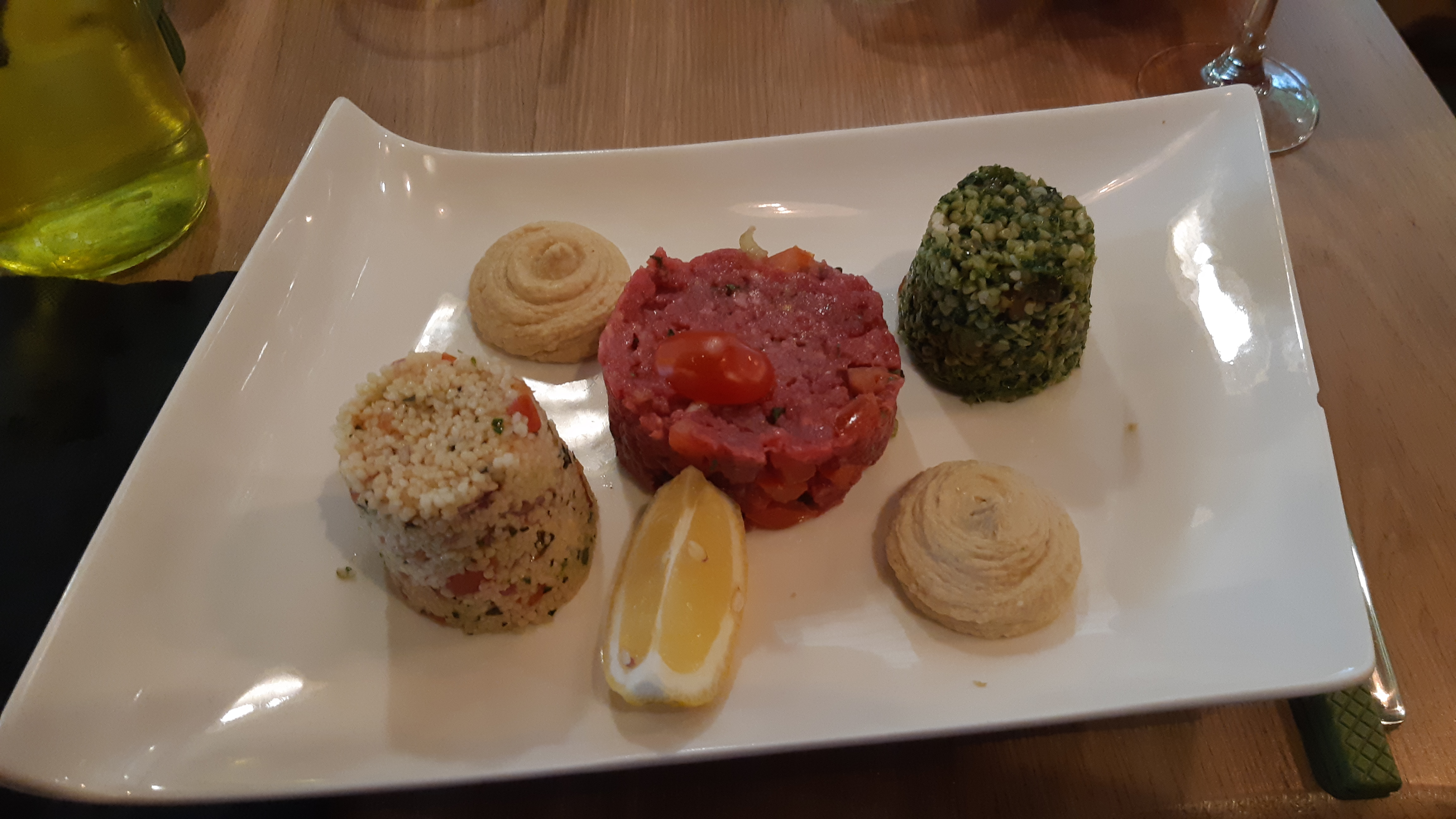 Service rapide, cadre chaleureux. Personnel souriant. J'ai adoré le tartare libanais et le reste de la carte m'invite à renouveler l'expérience