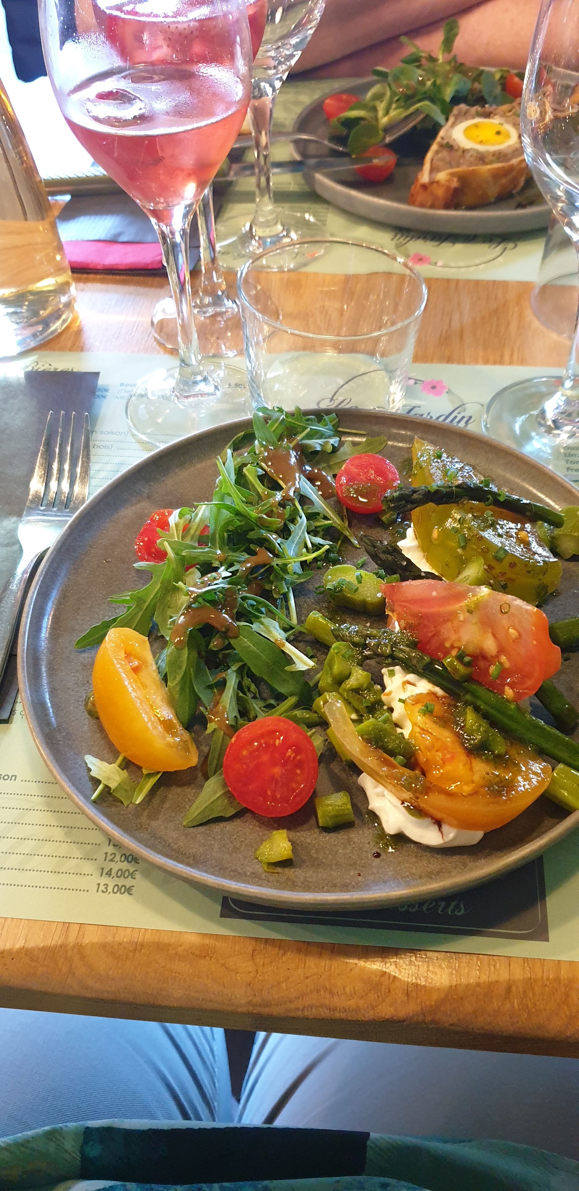 Très joli cadre, le jardin est très agréable. Bon accueil. Les plats sont assez copieux. Salade végétarienne sans grand intérêt, aucun assaisonnement, patates douces soient disant rôties mais simplement cuites, j’ai informé de ma déception mais aucun retour n’a été fait. Les nuggets du menu enfant ne sont pas faits maison. Menu à 14,90 € un peu cher pour des enfants avec uniquement un plat et une boule de glace.
