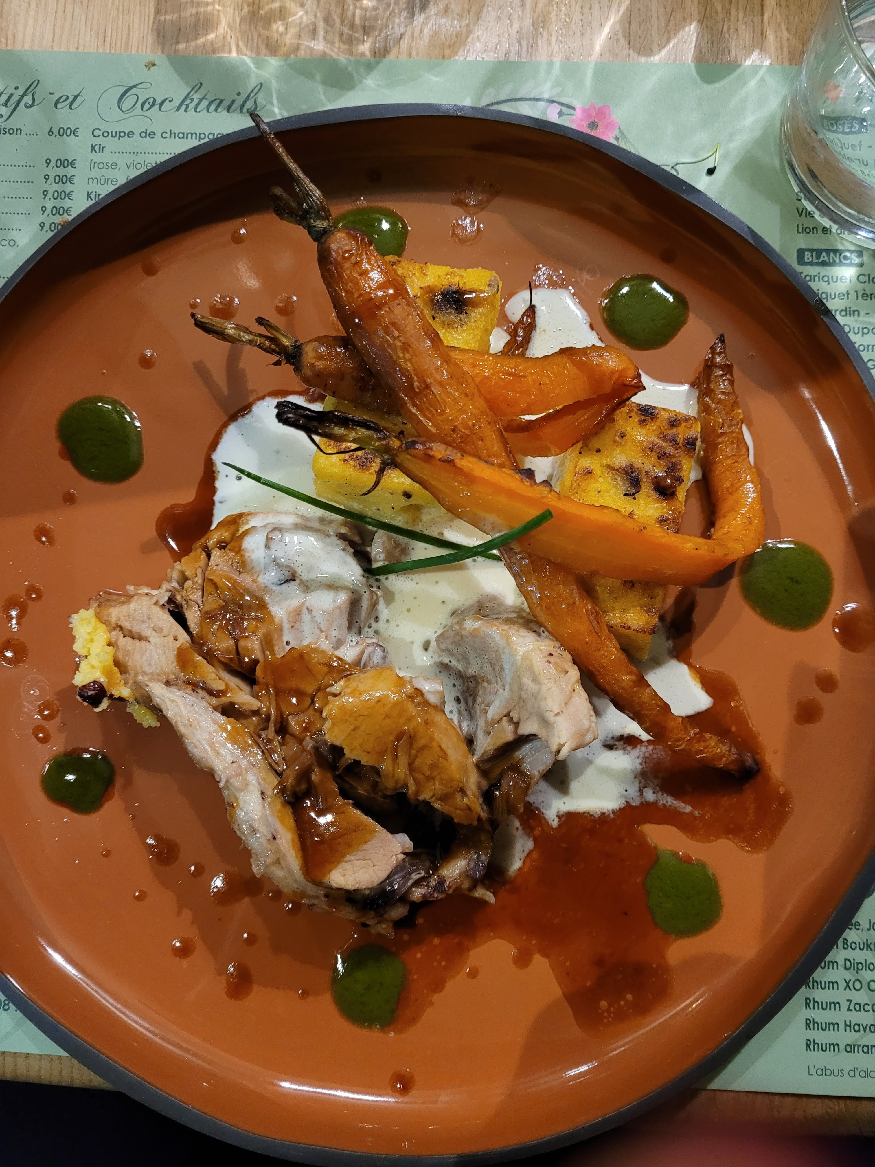 Menu de saison très appétissant, cadre joli et reposant. La tatin de fenouil en entrée était délicieuse, et la salade césar de mon ami plus que généreuse et gourmande. Nous reviendrons !