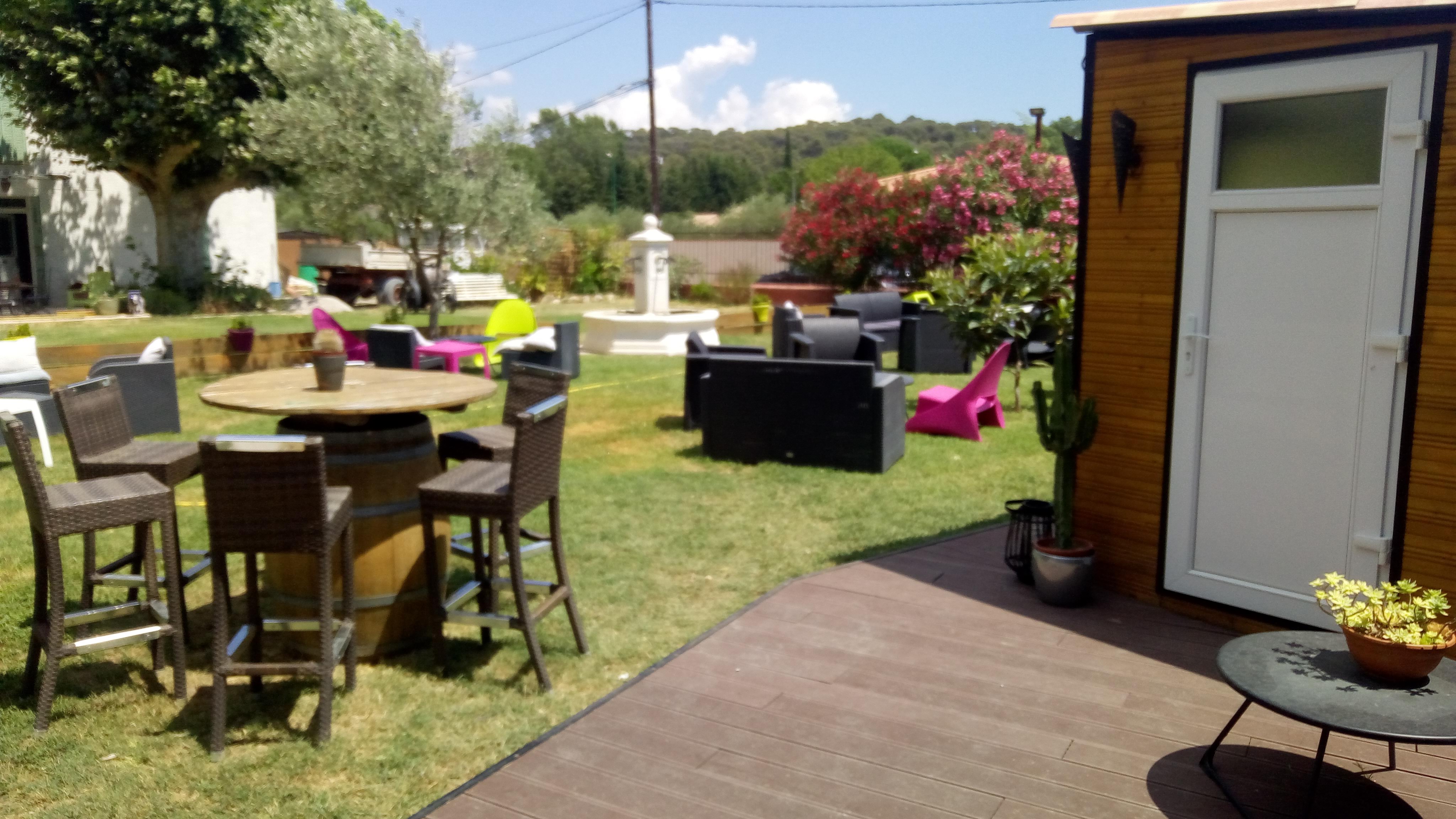 Ambiance sympathique dans le jardin, bon rapport qualité prix