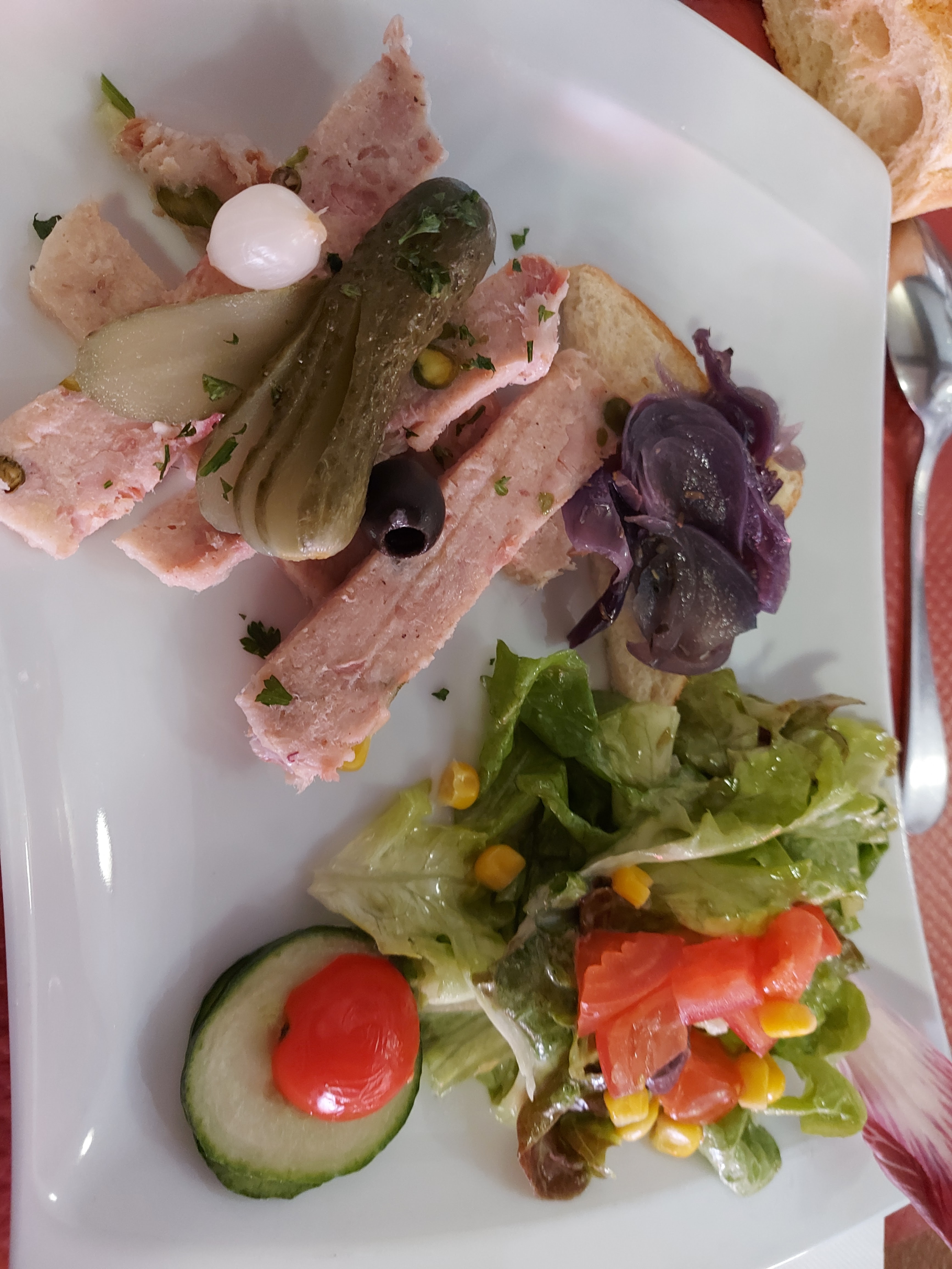 L'accueil est aimable..la déco de salle est à l'ancienne. J'ai opté pour une salade...les ingrédients sont frais c'esttrèscorrect en quantité...ma salade en format moyen était suffisante...dans la salade Thierachienne petits choux fourrés au Maroilles ... pour le reste poulet et jambon cru.
