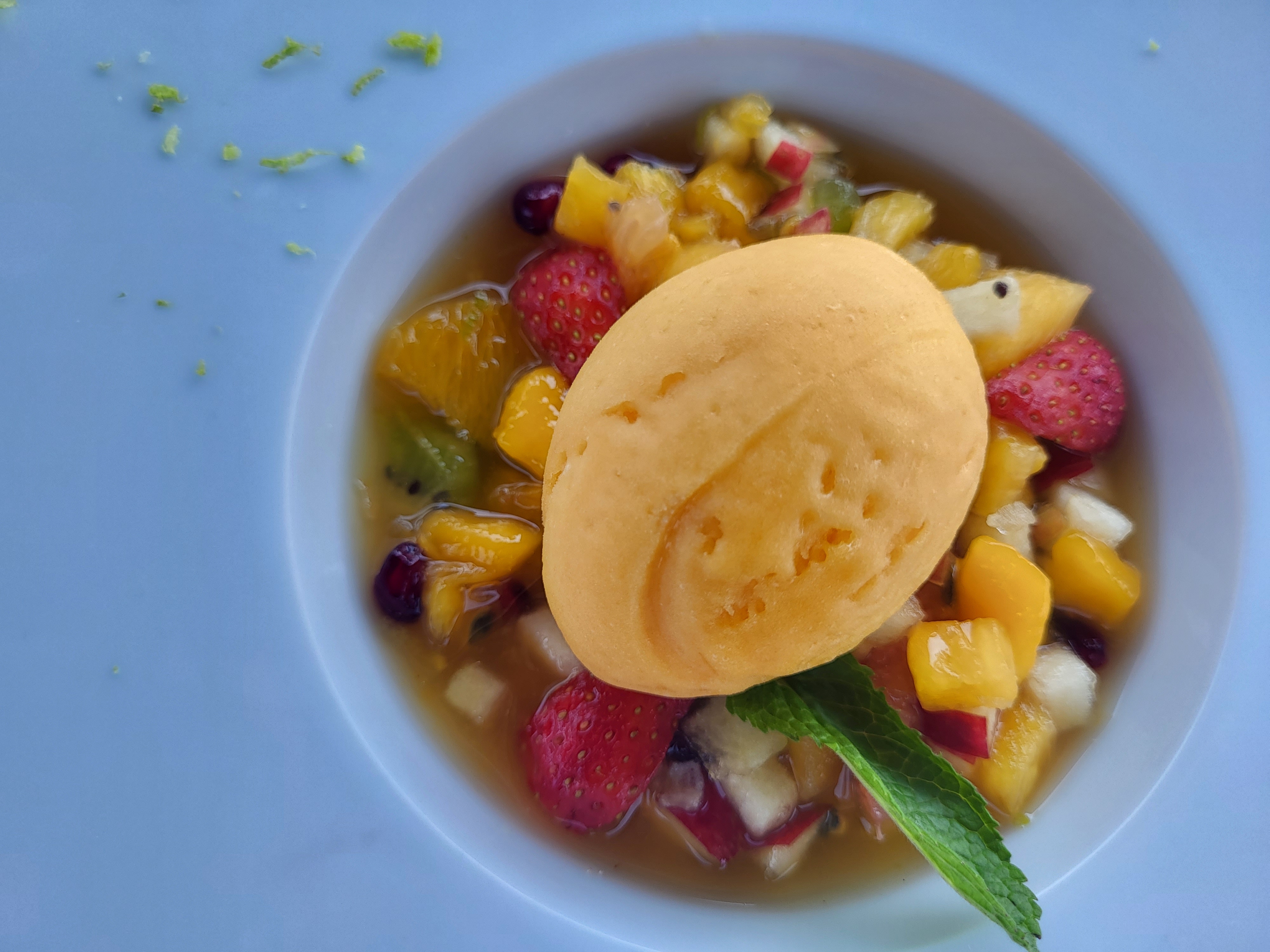 Déçue de l'entrée du menu à 56 euros.. Par contre, les desserts étaient délicieux ! Déjeuner en terrasse extérieure sur une table carrée de bistrot en pvc trop petite et sans nappe...bof...