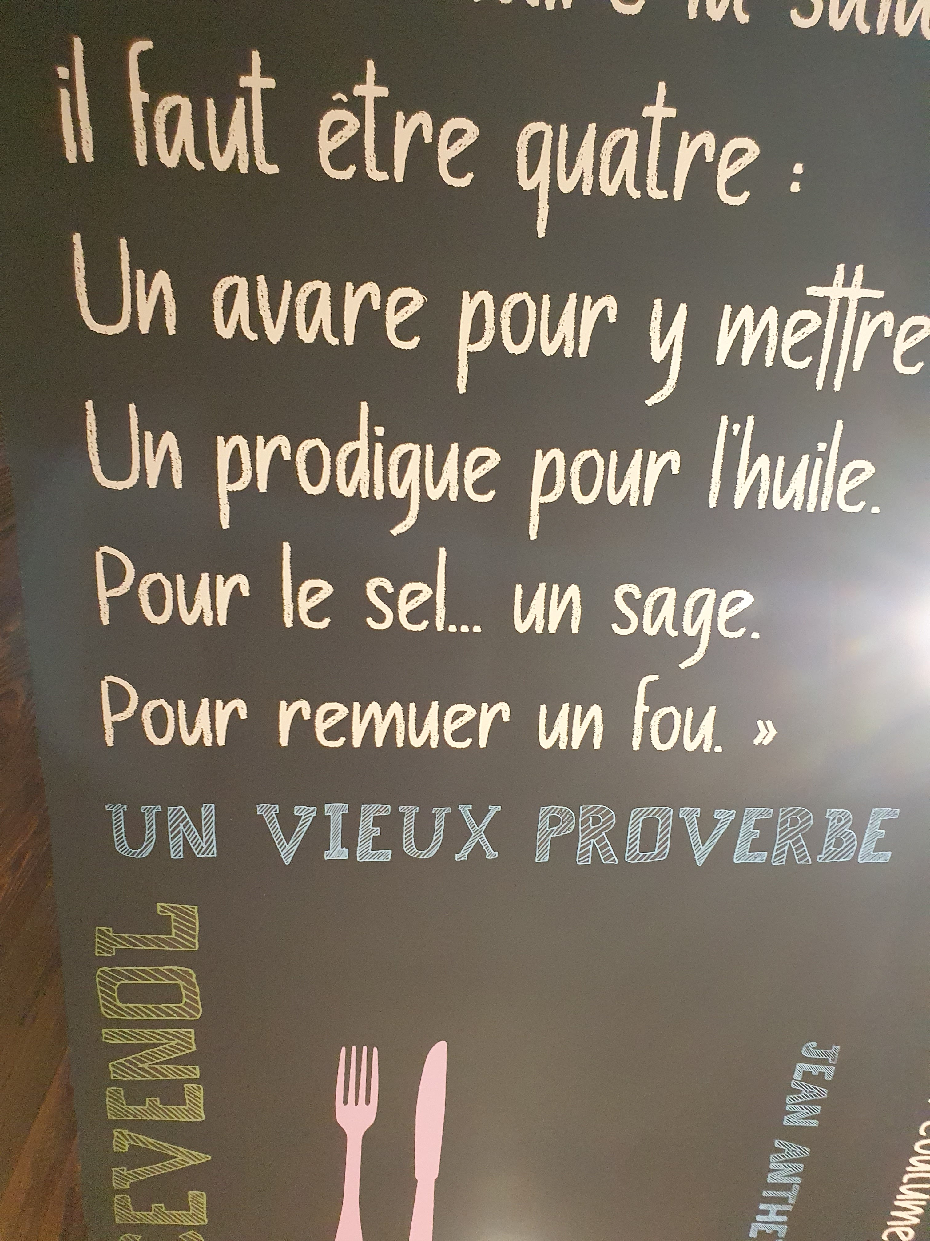 Aucun défaut trouvé ! Nous avons passé une excellente soirée en tablée de 8 - nous avions réservé la table nous attendait bien :) Repas excellent et conforme à la carte - tees bon - service professionnel - serveuse très agréable. Ambiance conviviale - Paris abordable pour à peu près 10€ la GROSSE salade. Je recommande cet établissement