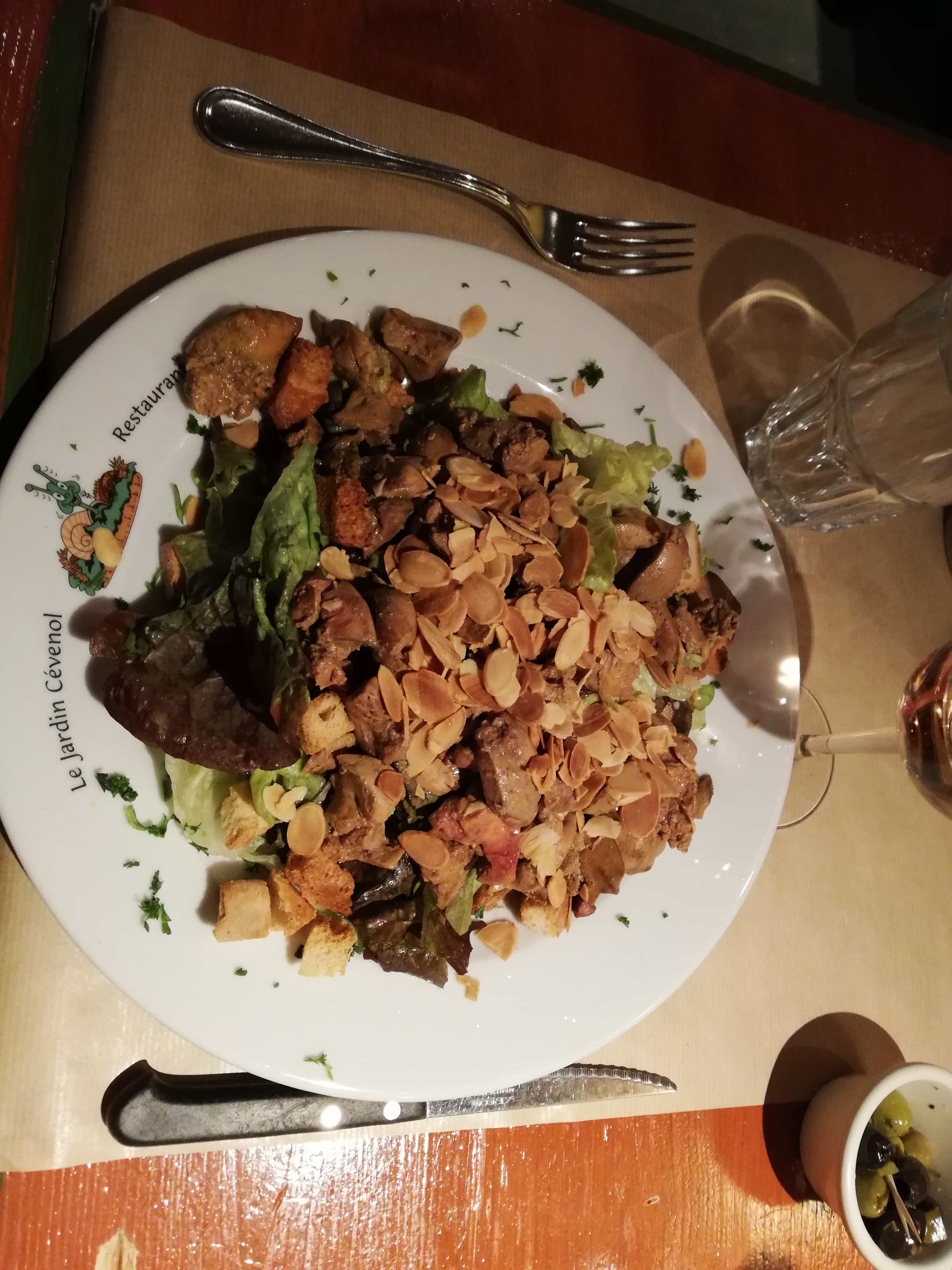 De passage à Alès, restaurant conseillé par un local, je n'ai pas du tout été déçue par la cuisine. Cadre sympa et immersif bien qu'un poil sombre à l'intérieur. Menu copieux, de bonne qualité et très bon. J'aurai mis 5 étoiles si je n'avais pas eu une désagréable surprise dans mon sac, une fois arrivée chez moi. J'ai commandé un moelleux à la châtaigne à emporter en demandant si il contenait du lactose, on m'a confirmé que non. Parfait. On m'a aussi demandé si il fallait éviter la chantilly, j'ai confirmé. Quelle surprise arrivée à la maison avec mon moelleux imbibé de chantilly fondue (par ce que je me suis baladée pendant 2h avec mon sac par 32°)! Poubelle direct. Merci de prendre les allergies et intolérances au sérieux, ça peut finir à l'hôpital (et pire au tribunal) ce genre d'oubli!