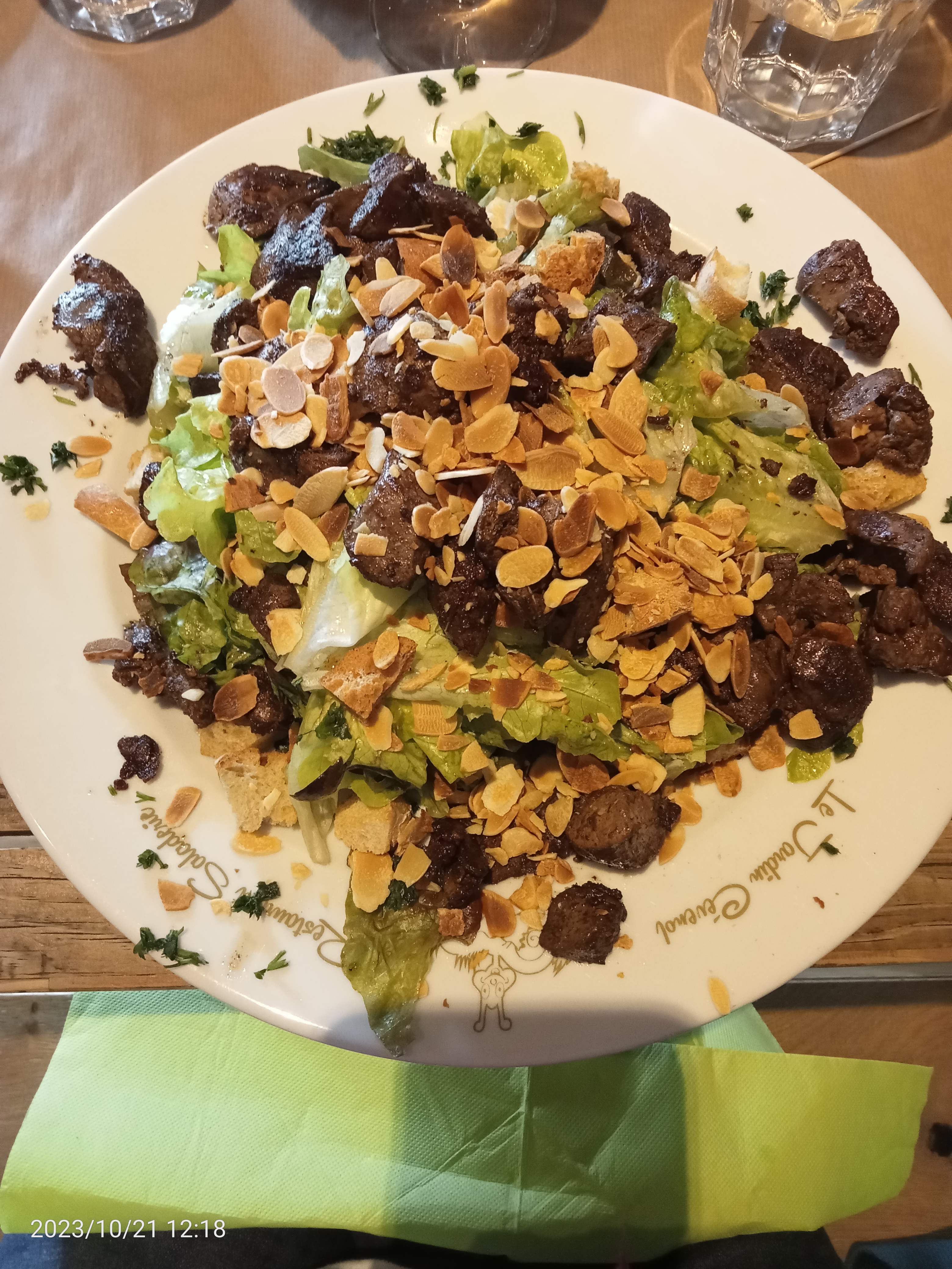 Surtout ne vous fiez pas à la devanture du restaurant poussez la porte. Tout est parfait. 👍 les salades sont copieuses et savoureuses. Nous étions 3 trois salades différentes la crétoise l’italienne et la Normande 3 cafés dont un café gourmand un pichet de cidre 50 cl et grande sanpeligrino 50 euros un prix super raisonnable pour la qualité de vrais produits bravo au chef. Nous avons savourés ce moment.