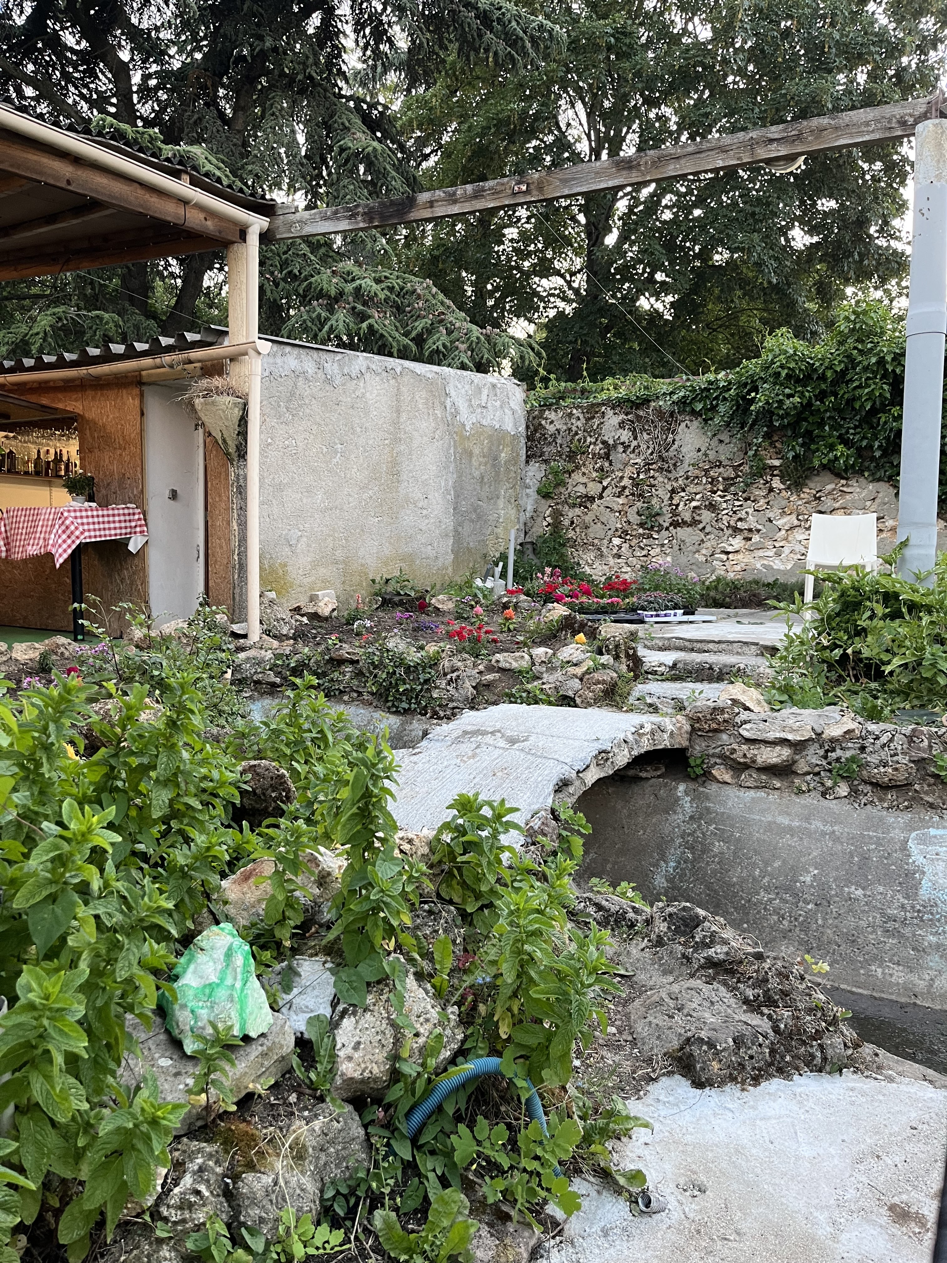 Belle surprise, le jardin couvert à l'arrière du restaurant qui permet grâce à la fontaine de manger au frais même lorsqu'il fait chaud