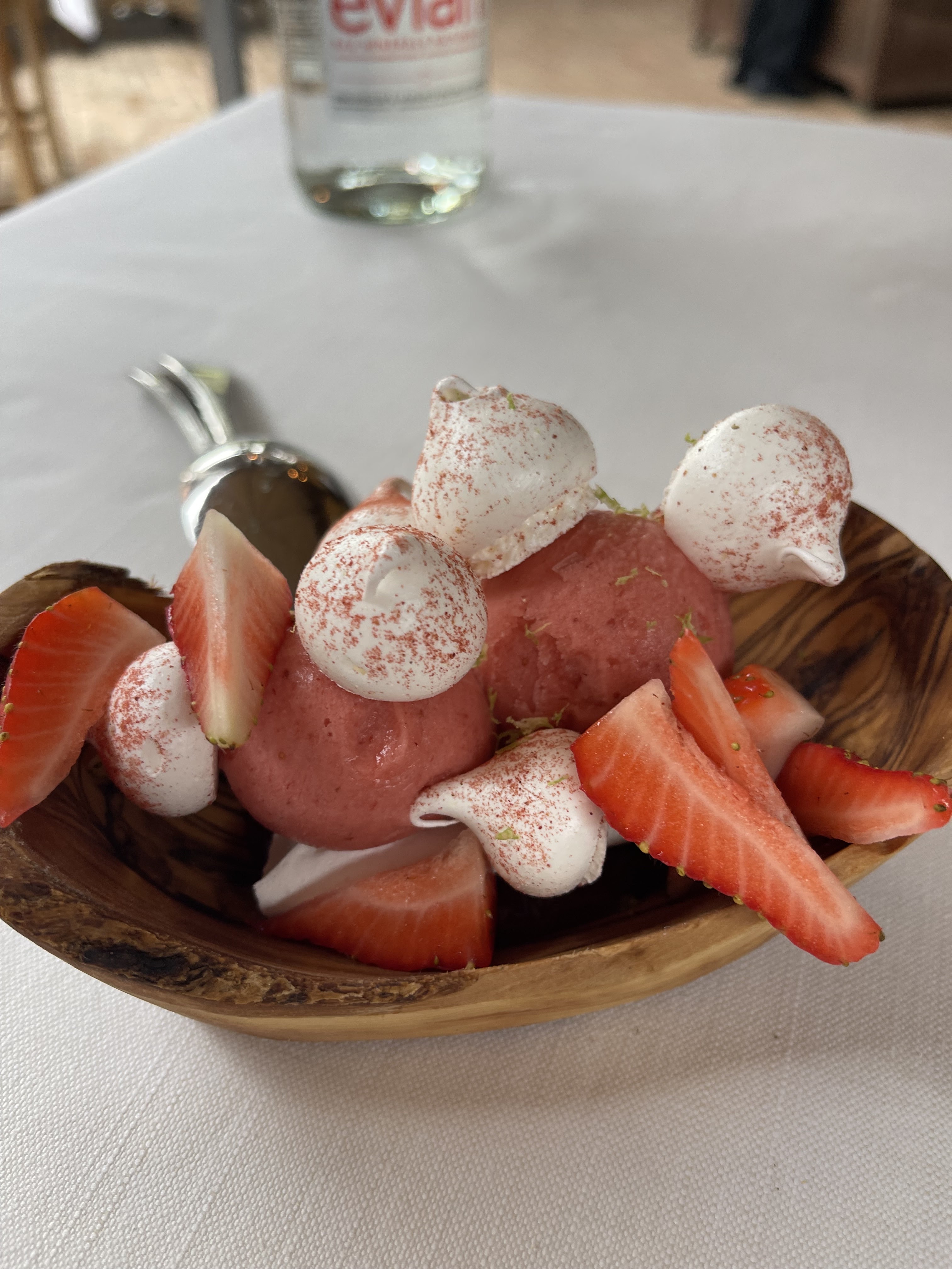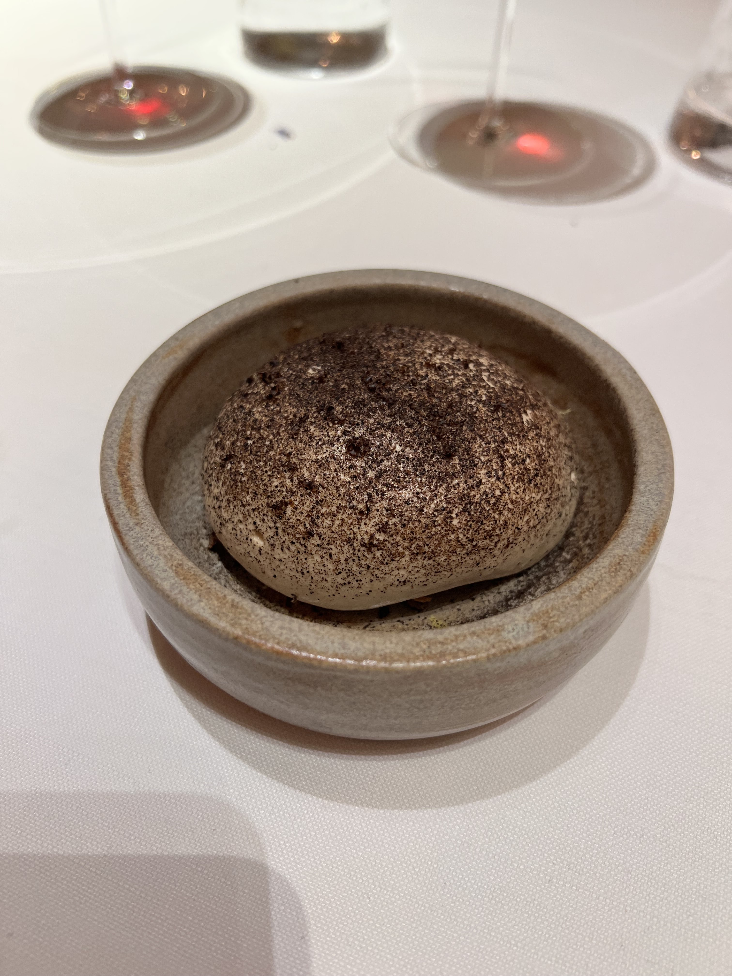 Difficile de faire mieux et à tous les niveaux. Je garde tout de même un souvenir marquant. Sur les conseils de la sommelière (accord mets et vins), qui a su trouver l'équilibre entre nos goûts et les impératifs des plats, nous nous sommes laissés tenter par ce merveilleux vin cuit français avec un plat à base de fromage de chèvre à l'apparence surprenante d'une boule-coco. J'ai rarement pris autant de plaisir à déguster un plat. Merci.