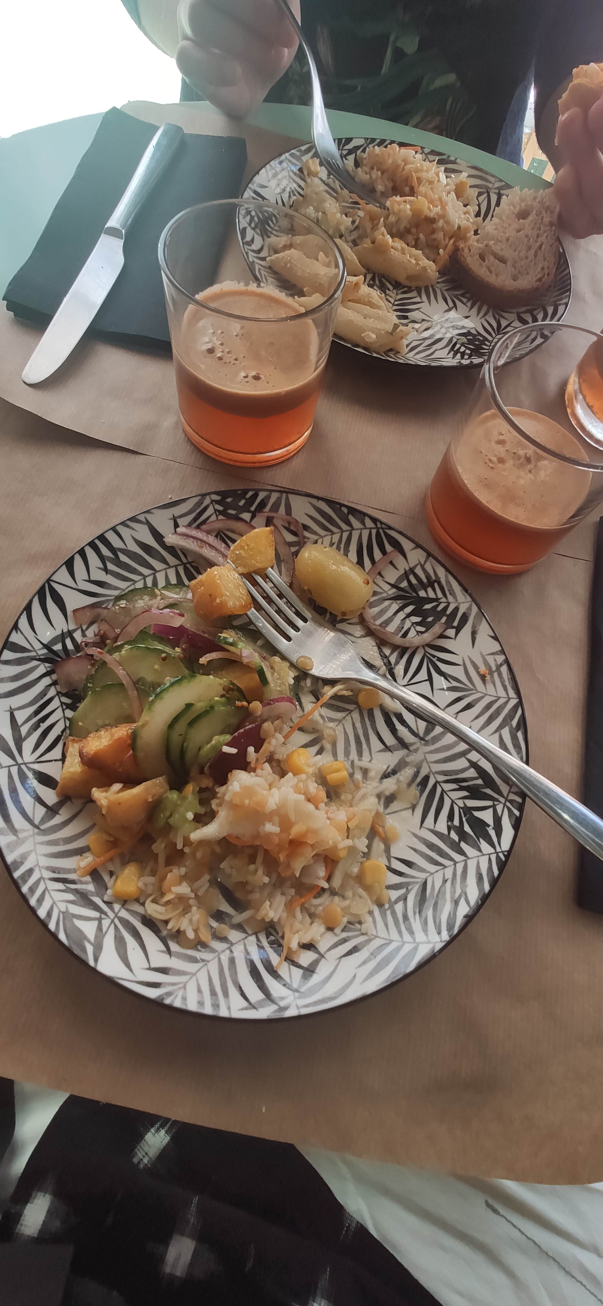 Quelque peu déçue par le concept. Problème visible d’aération (buée aux fenêtres et chaleur étouffante). L’ordre de service est un peu étonnant, il faut attendre longtemps pour avoir sa boisson chaude qui n’arrive qu’en second temps avec le plat. Enfin devoir presser soi même les fruits revient à y passer bien du temps et à devoir passer par les toilettes se laver les mains. Pour 28€ j’apprécie personnellement être servie.
