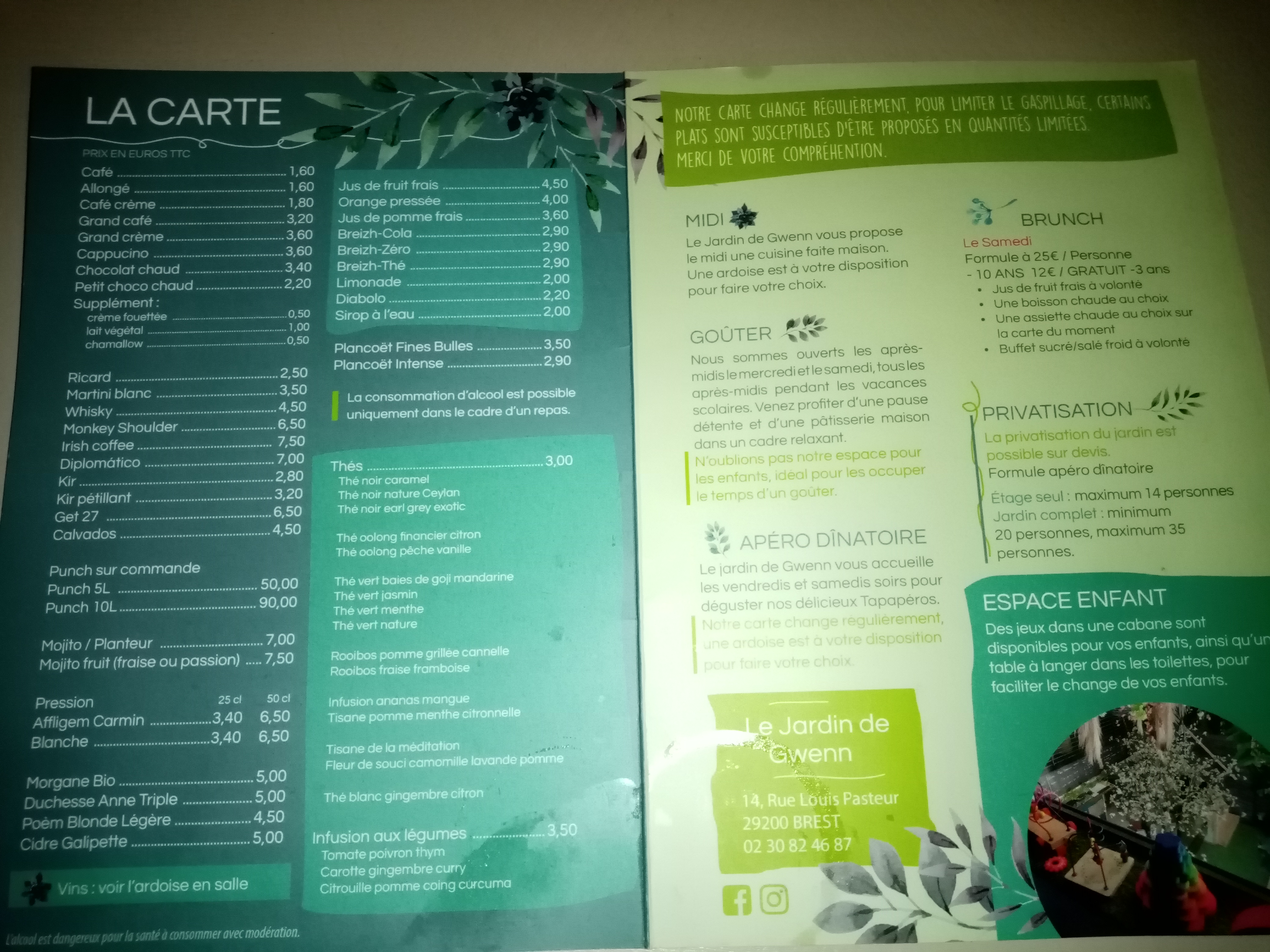 Une envie d'un brunch le dimanche matin? Sans hésiter .... Le jardin de Gwen est fait pour. Des produits frais et des propositions de plat qui change. Petit plus on réalise notre propre jus de fruits maison et a volonté ... Le top
