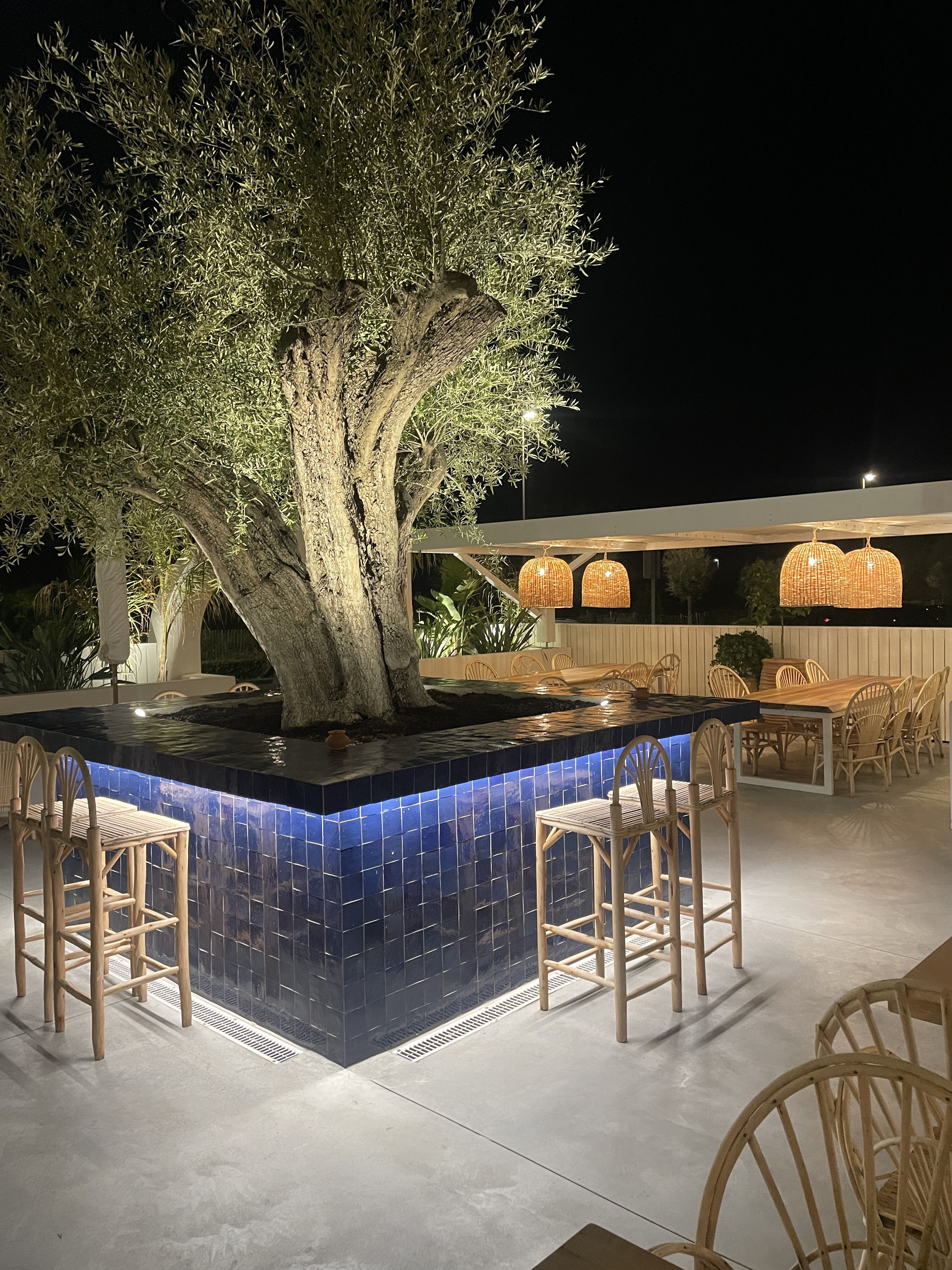Pour y être allés hier soir,nous avons découvert ce nouveau restaurant magnifique aux accents méditerranéens , avec son vieil olivier planté au milieu de la terrasse extérieure toute illuminée et son jardin florissant... La déco interieure est réussie et confortable... Nous nous sommes régalés avec un couscous excellent et très copieux. (légumes rôtis et poulet fondant) Les cocktails et desserts extra.. Le personnel est adorable et de bons conseils.. Un grand bravo aux maîtres de cet endroit féerique... Merci pour votre accueil et votre gentillesse.. Nous recommandons cette bonne adresse et n'hésiterons pas à y retourner ..