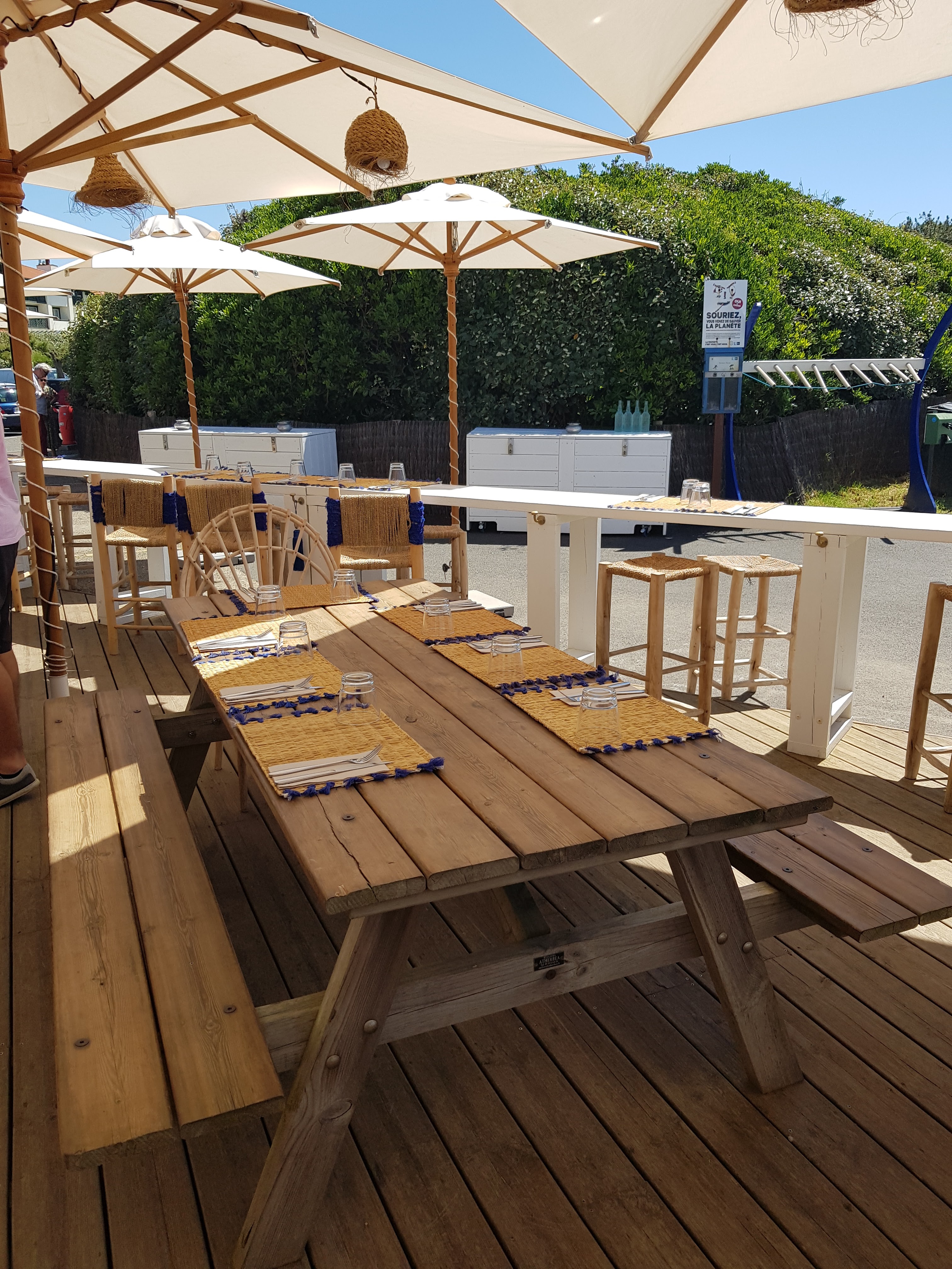 Une belle découverte ! Un cadre vraiment sympathique, calme, entouré de verdure, à 2 pas de l'océan... Pas de vue directe sur la plage mais l'endroit vaut vraiment le détour. Une carte vraiment intéressante, proposant des formules variées en petit déjeuner, brunch après midi, des plats midi, soir, des boissons... Le tout de très bonne qualité, de bons produits frais. Une déco charmante type paillote / bord de plage ! J'adore !!